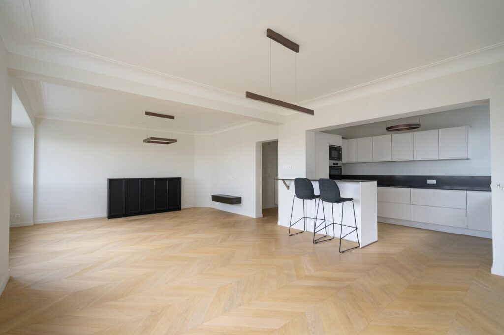 À proximité de toutes les facilités (Montgomery, Thieffry, commerces, transports, écoles, …), magnifique appartement 2-chambres entièrement rénové avec des finitions de qualité. Il offre une superficie brute de +/-108m² (+/-98m² nets). Il se compose d’un vaste séjour en parquet massif de +/-38m² avec cuisine américaine super équipée, balcon de 2m², une chambre de 12m², une […]