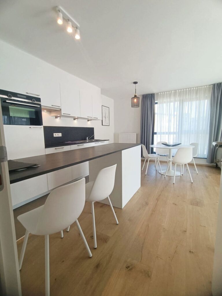 Au cœur d’Evere, à proximité de toutes les facilités (commerces, écoles, transports…,), dans un immeuble récent construit en 2019, superbe appartement 2-chambres de +/-86m² (selon PEB) entièrement meublé et équipé situé au 2ᵉ étage avec ascenseur. Il se compose d’un lumineux séjour en parquet de +/-30m² avec terrasse de 4m² et cuisine américaine full équipée, […]