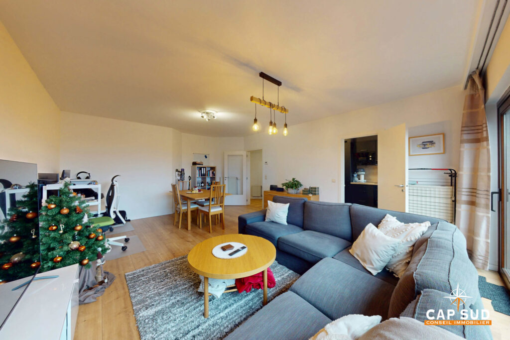 Cap Sud vous propose ce bel appartement deux chambres, idéalement situé à proximité immédiate de toutes les commodités.Il se compose d’un hall d’entrée, d’un WC séparé, d’un séjour lumineux, d’une cuisine équipée et indépendante, de deux chambres, d’une salle de bains ainsi que d’une agréable terrasse.Implanté dans un environnement verdoyant, l’appartement bénéficie d’un accès rapide […]