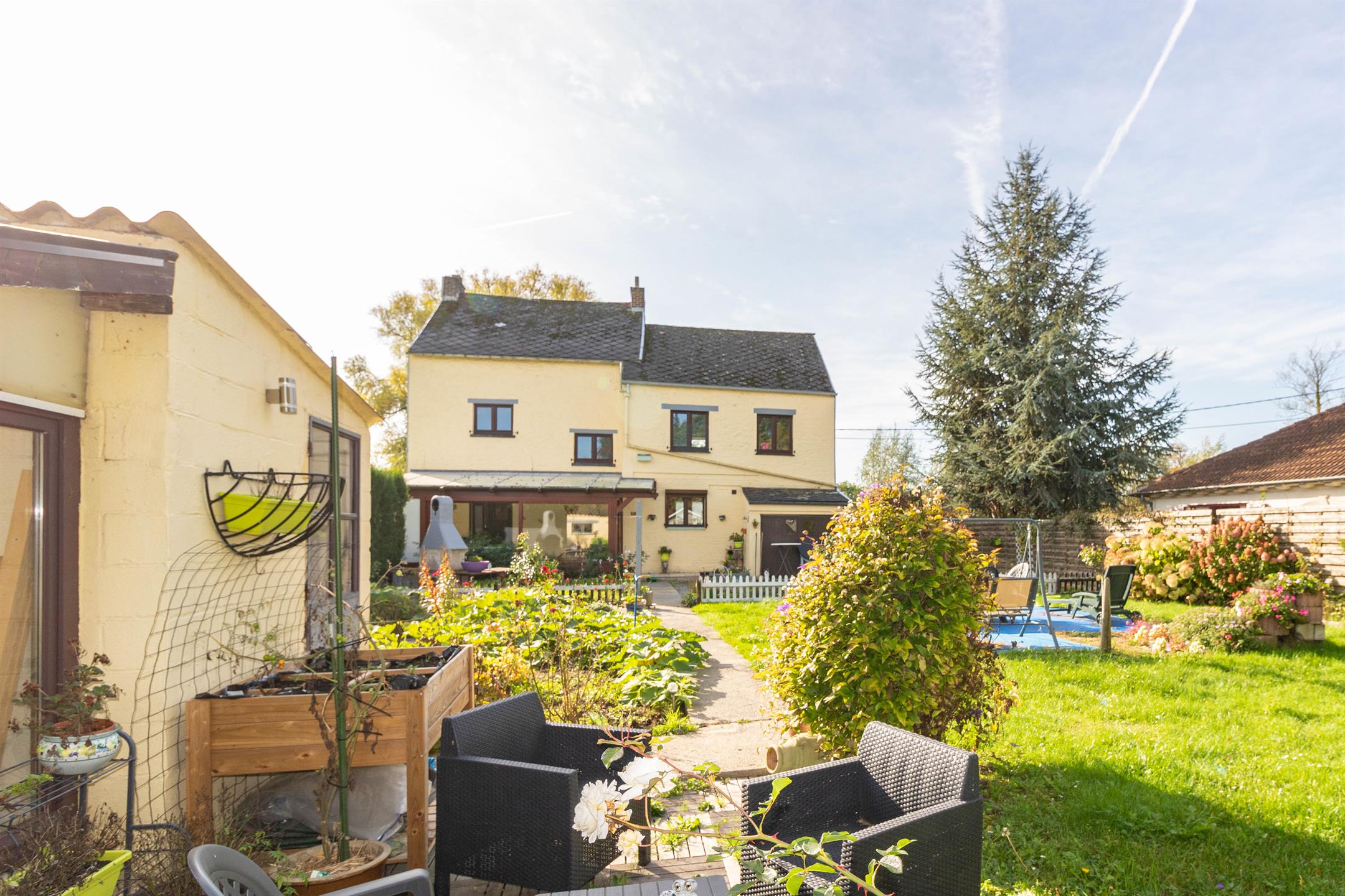 OFFRE ACCEPTEE – VISITES TERMINEES … Venez découvrir cette agréable maison dans le joli village de Maret (commune de Orp-Jauche), entre Jodoigne et Hannut, à mi-chemin entre Bruxelles et Liège ! Au rez-de-chaussée, le hall d’entrée ouvre à droite sur un grand et lumineux séjour, à gauche sur la cuisine et la salle à manger. A l’étage on trouve quatre chambres et un bureau (ou petite chambre d’enfants), et au-dessus, un grand grenier aménageable qui pourra accueillir un espace de jeux ou bien des chambres supplémentaires. La véranda donne sur un beau jardin ensoleillé, sans vis-à-vis, avec son potager et sa terrasse, et agrémenté de deux jolis cabanons. Cuisine équipée, chauffage central mazout, panneaux photovoltaïques, PEB F (444 kWh/m2.an, n° 20191029014895). Faire offre à partir de 249.000 € sous réserve d’acceptation de la propriétaire. Plus d’infos au 0474 16 11 15 ou par email. Vidéo: https://www.facebook.com/727457577586091/videos/750359345464060/