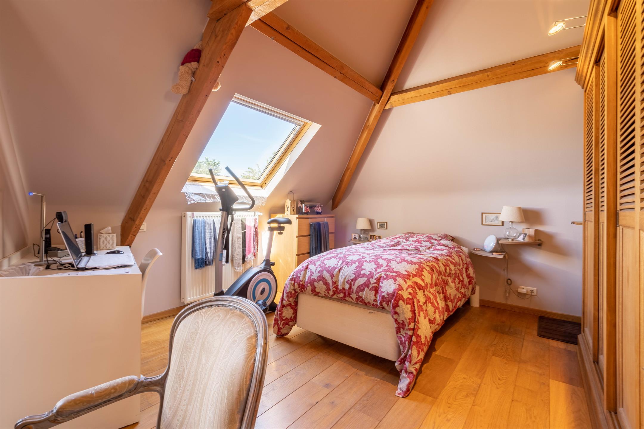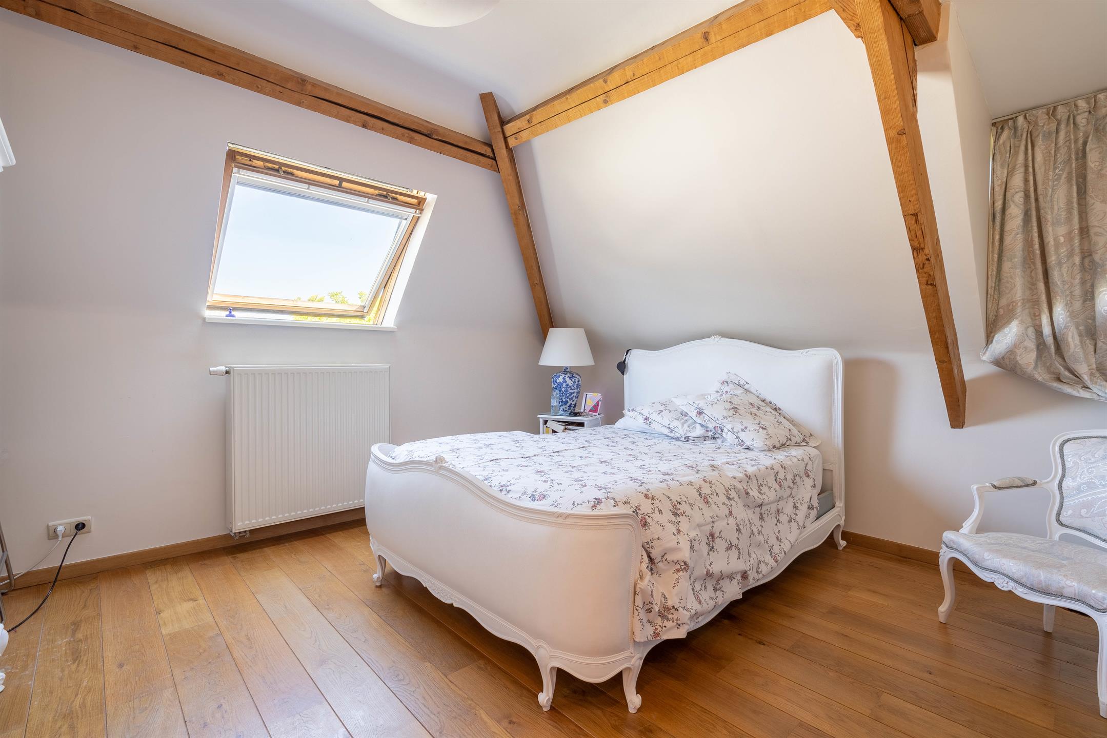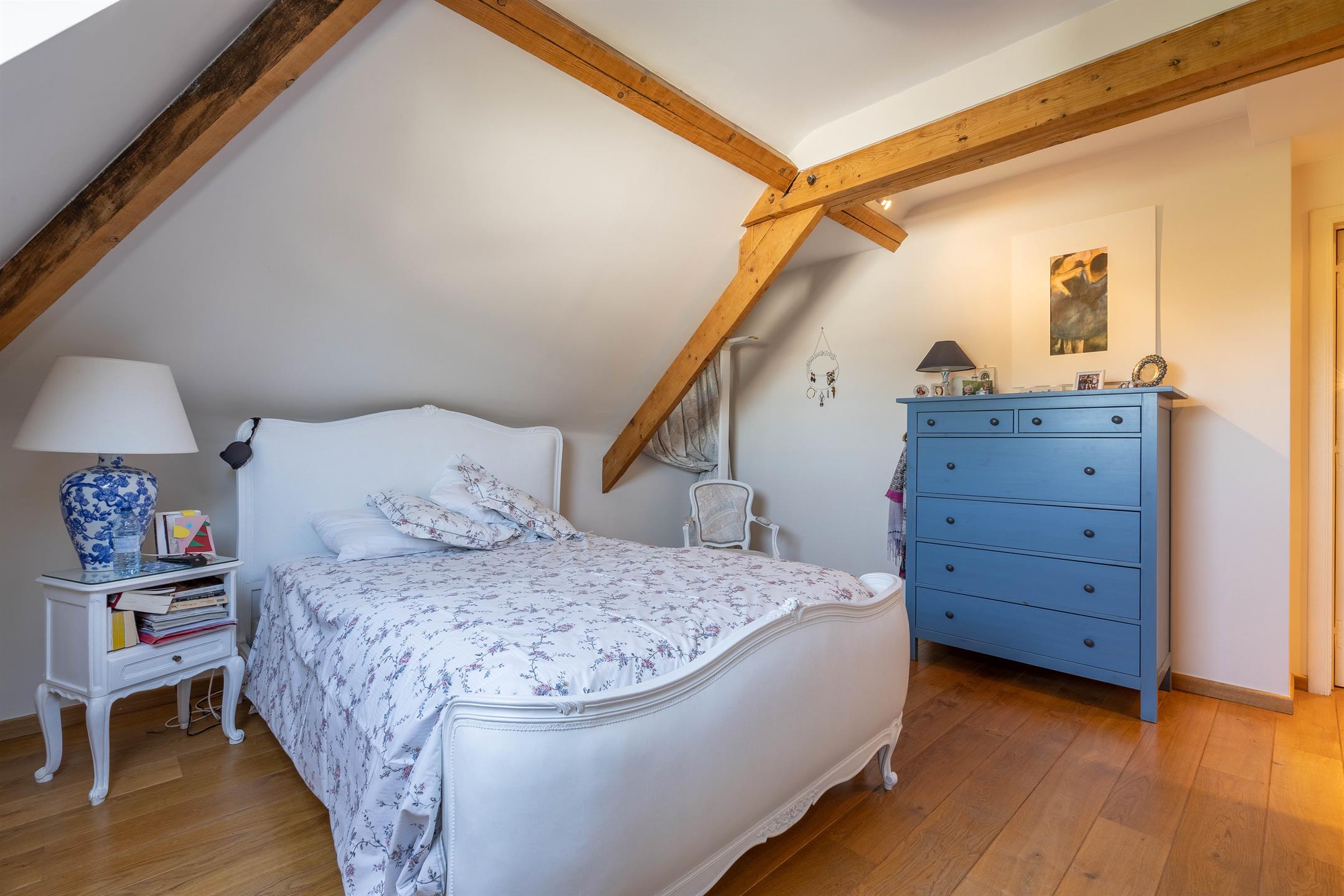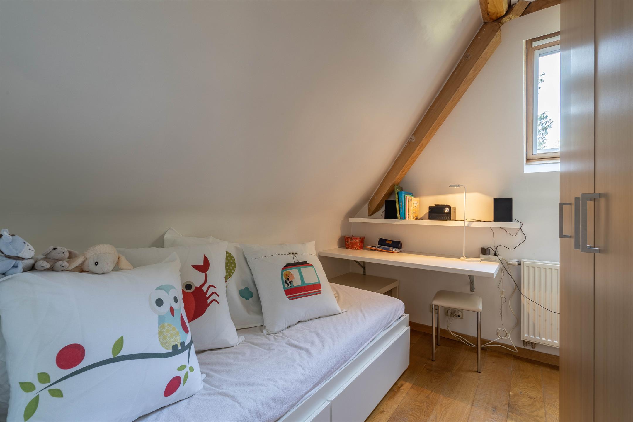 A l’étage, un hall de nuit desservant 3 chambres, une chambre de +- 16m2, une chambre de +- 16m2 avec salle de douche attenante, une chambre de +- 13m2 avec mezzanine de +- 13m2 et placard intégré, une salle de bains (bain, douche, 2 lavabos), un wc séparé.