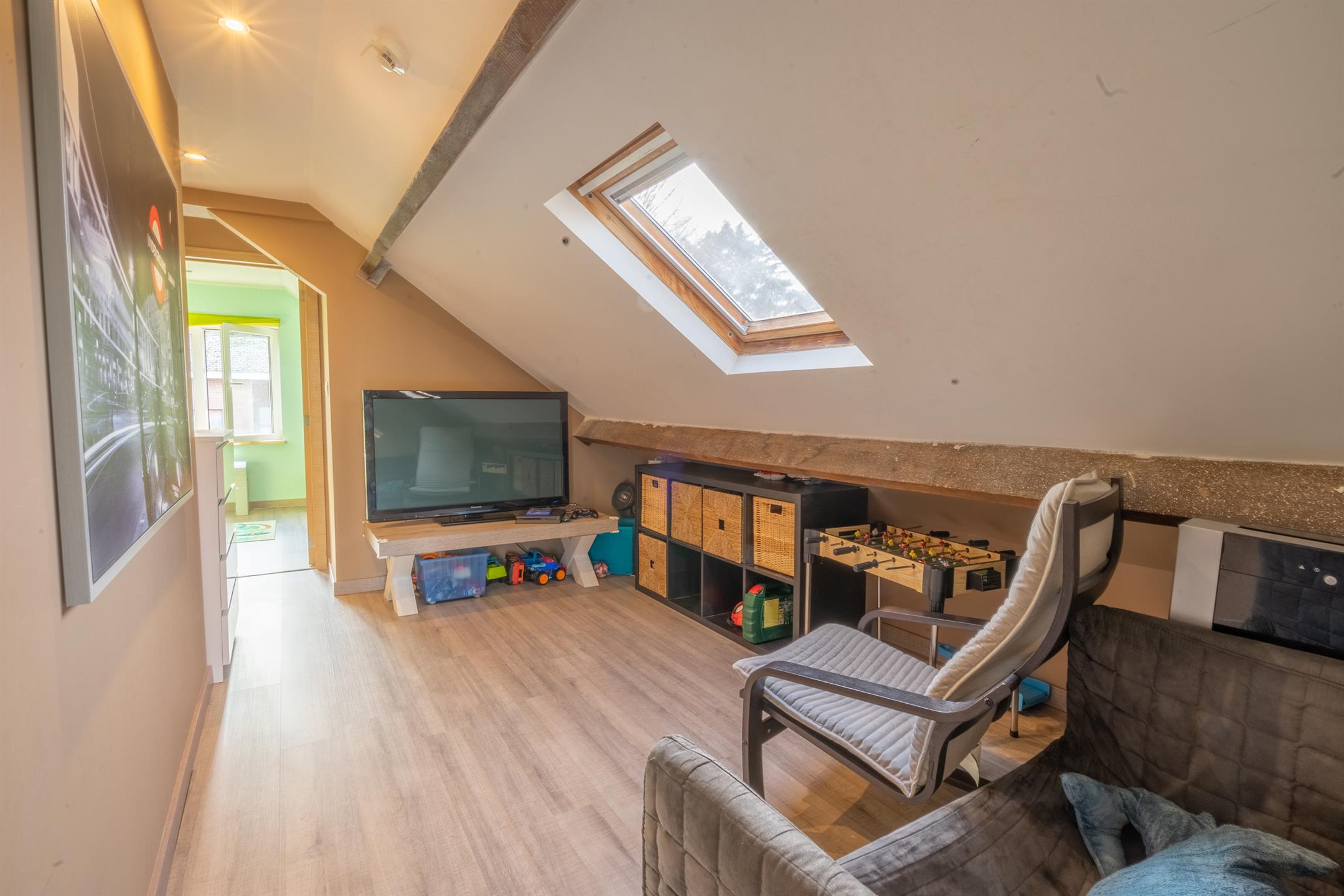SOUS OPTION Au cœur d’un quartier résidentiel et à 15 minutes de Bruxelles, Cap sud vous propose cette magnifique maison 3 chambres rénovée en 2016 se situant sur un terrain de ± 8ares. Elle offre une superficie habitable de ± 166m² avec avec un petit jardin avant et un grand jardin arrière disposant d’un poulailler et d’arbres fruitiers. Le rez-de-chaussée se compose d’un séjour de ± 30m² avec feu ouvert, d’une salle à manger de ± 15m², d’une cuisine américaine de ± 12m², d’une chambre de ± 13m², d’un hall d’entrée, d’un WC/buanderie et d’un local technique. Au 1er étage se trouvent deux chambres de ± 20m², une salle de bain de ± 10m² avec toilette et d’un hall de huit/salle de jeux de ± 12m². 3 emplacements de parkings extérieurs devant la maison. Divers : Chaudière gaz condensation, adoucisseur d’eau, double vitrage avec volets (dont certains électriques), toiture rénovée il y a +/- 15 ans, alarme, … PEB D. Infos & visites : CAP SUD Etterbeek: 02/733.48.00 – www.cap-sud.com