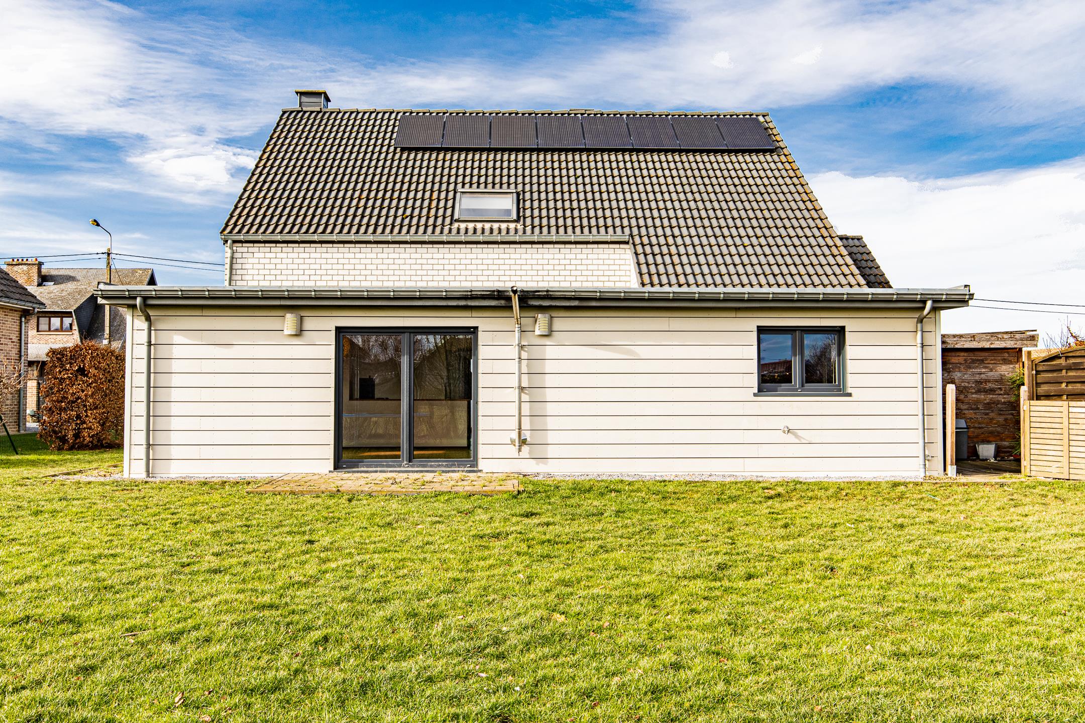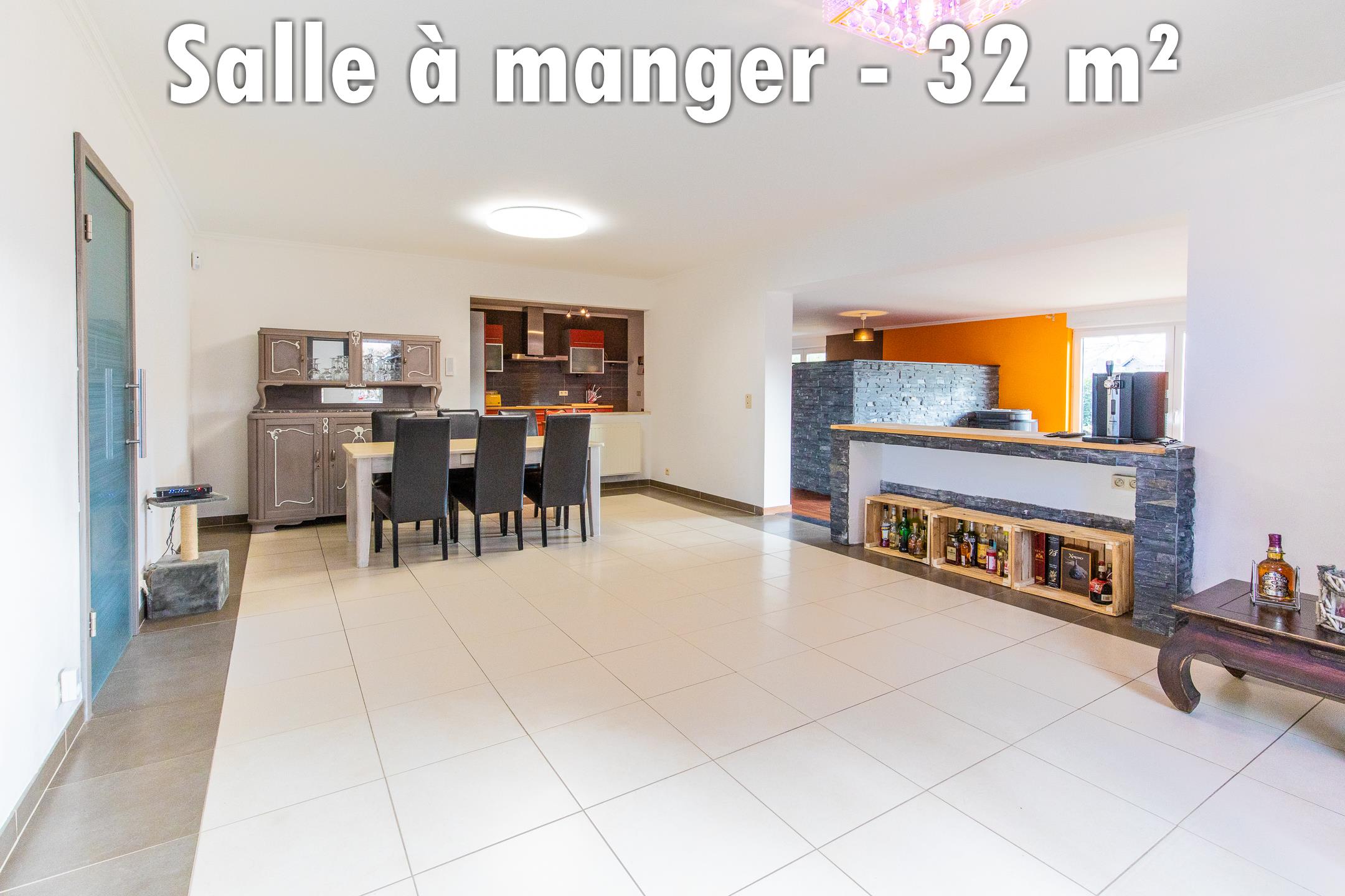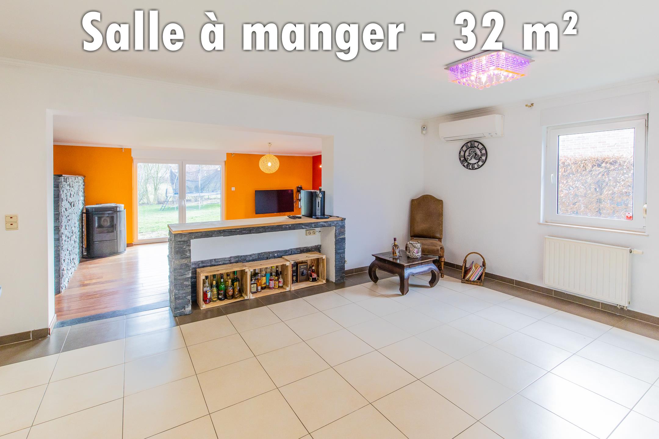 Avec 5 chambres et 2 salles de bain, cette maison 4 façades est idéale pour une famille nombreuse (ou une profession libérale : bureau au rdc près de l’entrée + places de parking). Elle est très agréable à vivre grâce à un vaste séjour, donnant sur un beau jardin arboré et fleuri à la belle saison. La maison date de 2004 et une annexe a été ajoutée en 2017. Son équipement la rend à la fois confortable et économe en termes d’énergies : panneaux photovoltaïques (installés en 2017), pompe à chaleur, air conditionné, radiateurs plasma, poêle à pellets, citerne d’eau de pluie, adoucisseur d’eau, système d’alarme, détecteurs incendie, volets électriques, … Composition du rez-de-chaussée : hall d’entrée avec wc indépendant, bureau ou chambre (11m²), grand séjour (58 m²), cuisine (19 m²), salle de bain (6 m²), buanderie (15 m²), garage (15 m² + grenier de rangement). Composition du 1er étage : 4 chambres (14, 14, 14 et 11 m²), salle de bain (12 m²), espace dressing (5 m²). Le village de Viemme, à Faimes, est idéalement situé entre Liège et Bruxelles, à 5 minutes de l’autoroute E42, 10 minutes de la E40 et proche de Waremme, Hannut et Huy. Dans les environs immédiats se trouvent des écoles, restaurants, petits et grands commerces, produits de la ferme, clubs de sport, plaines de jeux, etc. Faire offre à partir de 349.000 €. Infos et visites au 019/511.550 ou [email protected]
