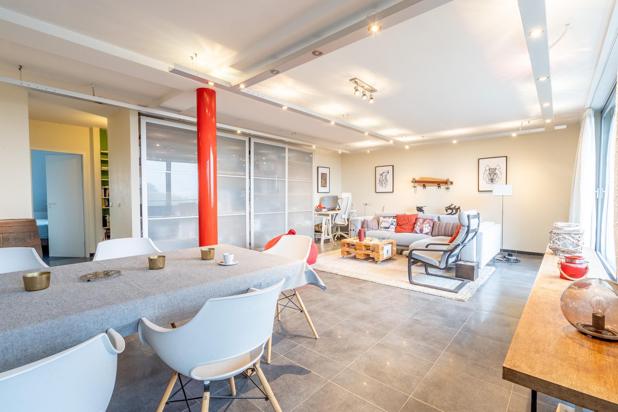 Braine l’Alleud CAP SUD : Nous vous proposons un magnifique appartement de 2005, proche des commerces, des écoles, de la gare et des axes routiers. Il se compose d’un spacieux hall d’entrée donnant sur un lumineux séjour/salle à manger avec une cuisine ouverte super-équipée pour une superficie totale de 57m2 donnant sur une terrasse de 7m2 (est), un WC séparé avec lave-mains, un espace vestiaire, 2 chambres de 11 m2 et 19m2, un dressing et une salle de bains. Buanderie. Chauffage GAZ. Châssis DV Bois. Cave. Charges de 150€/mois pour les communs et pour provision de l’eau. L’appartement est loué au prix de 900euros/mois. En supplément obligatoire pour 25.000 euros : un garage fermé. Très belles finitions. PEB C.