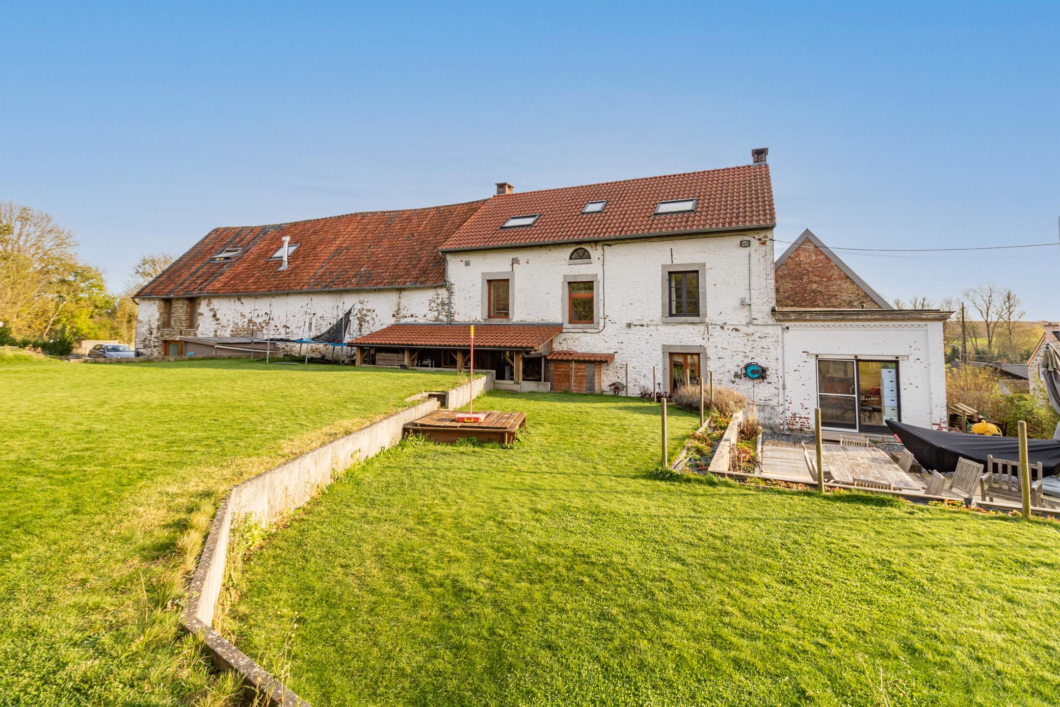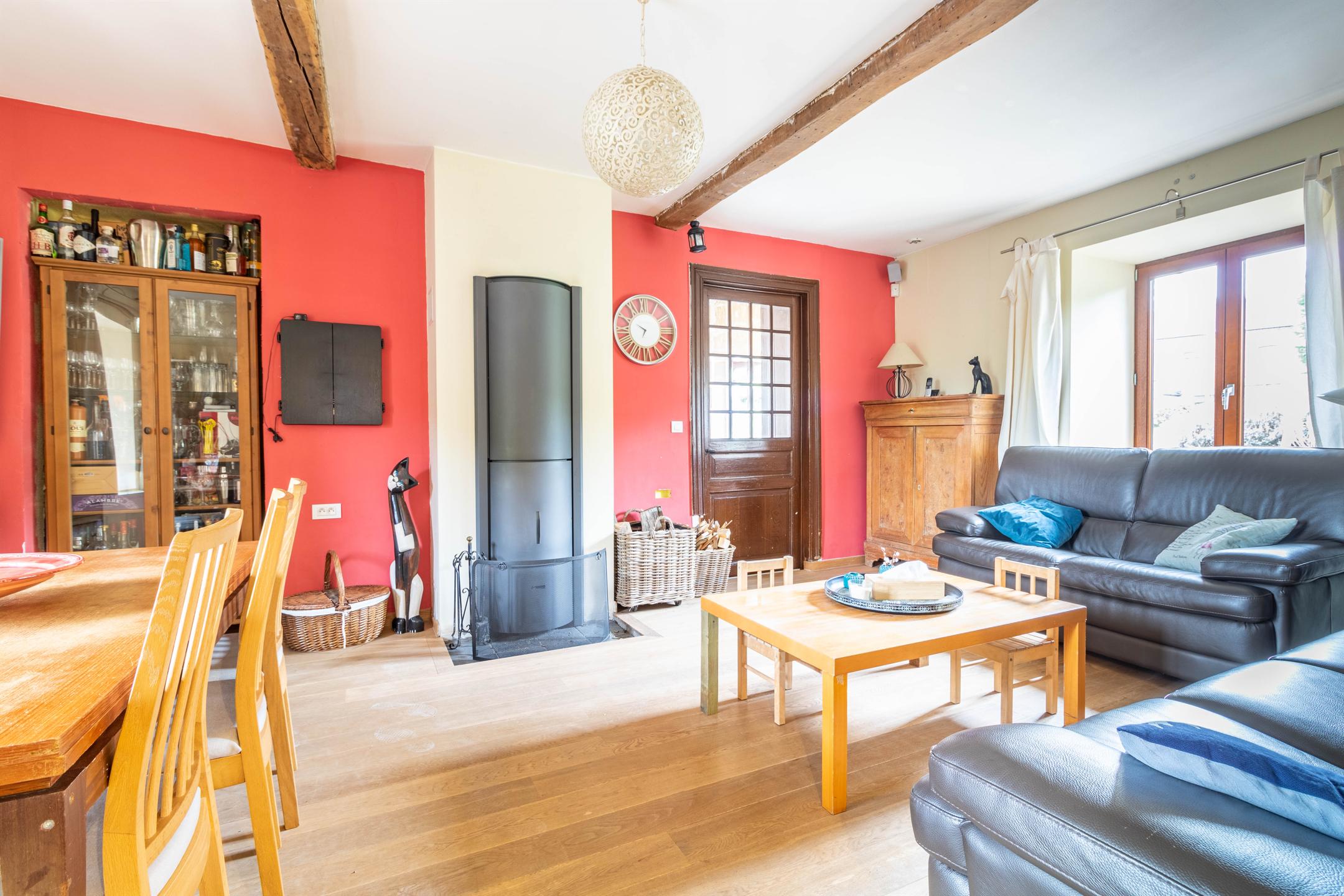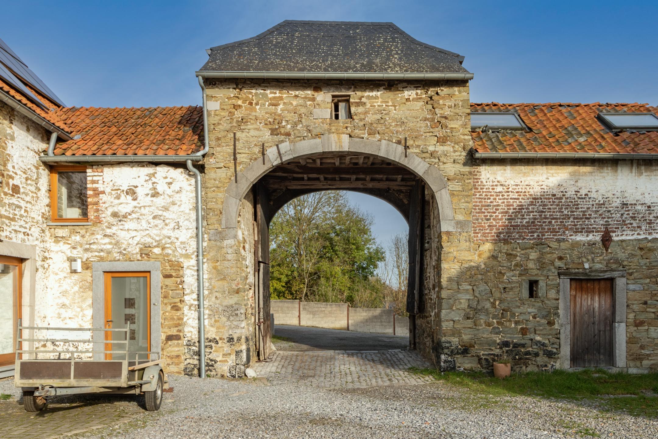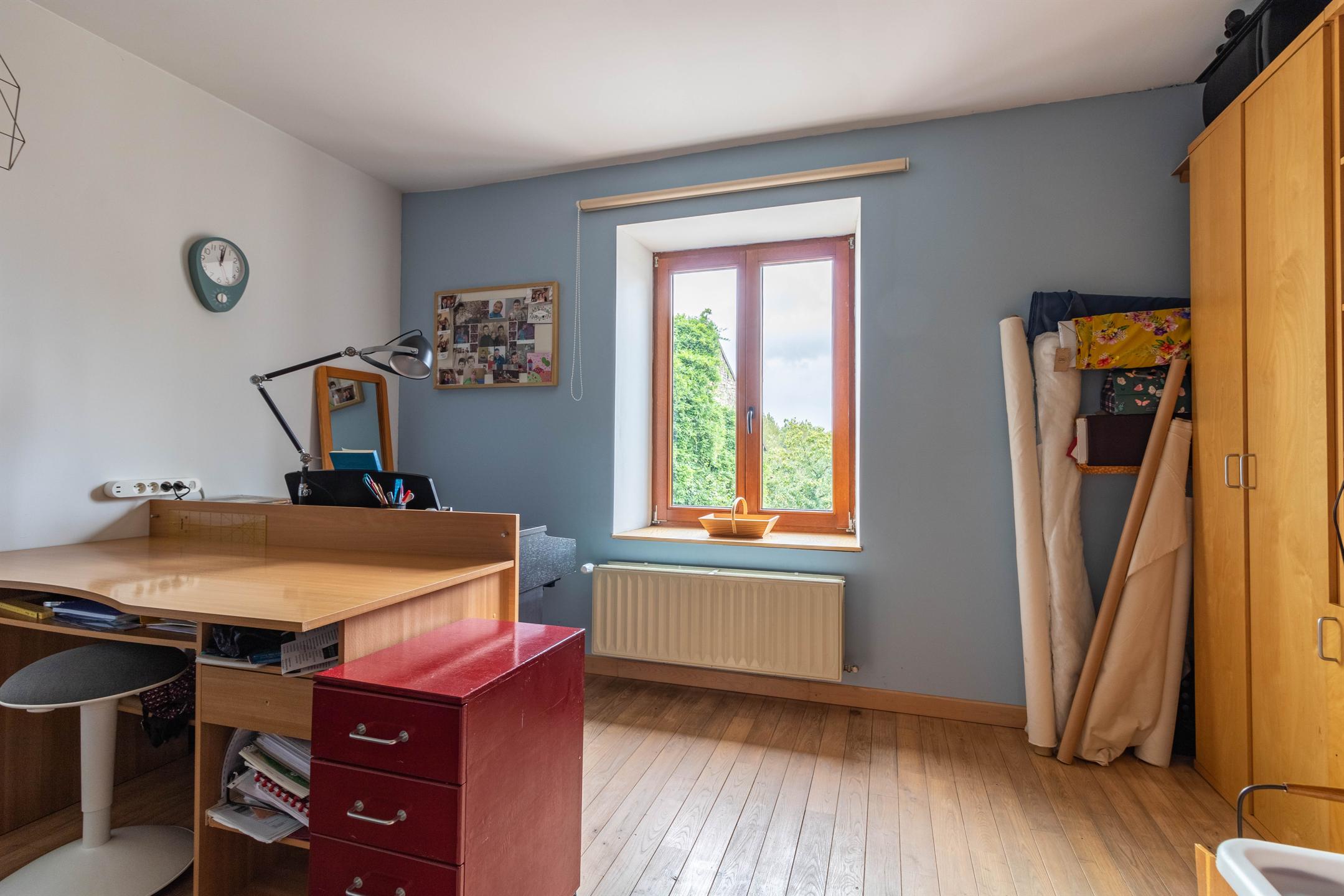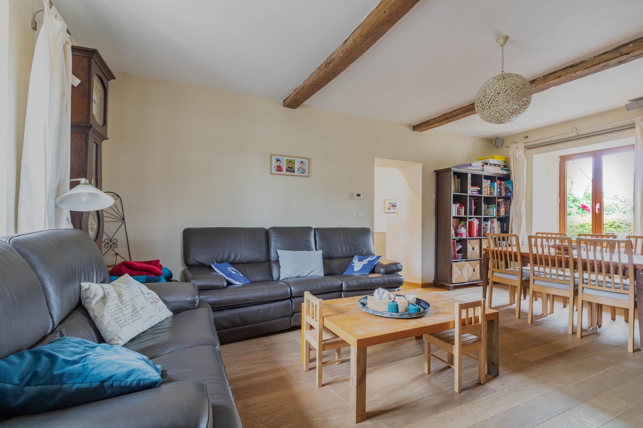Très belle maison rénovée et aménagée avec goût, dans l’aile d’un corps de ferme en carré inscrit au patrimoine de la région wallonne, et idéalement située en campagne hesbignonne dans le petit village de Vieux-Waleffe, entre Bruxelles, Liège et Namur, à proximité de l’E42 et de l’E40. Au bout d’un chemin sans issue se dresse un somptueux porche en pierres de pays qui ouvre sur la cour de l’ancienne ferme. La maison se situe sur la droite. Elle comprend un hall d’entrée qui distribue, à gauche, sur un beau séjour avec un parquet en chêne et un poêle à bois, et à droite sur une grande cuisine équipée et une buanderie. Derrière le séjour, un grand atelier baigné de lumière, faisant pour le moment office de salle à manger, pourra accueillir divers projets : profession libérale, salle de réception, etc. Au premier étage, on trouve une chambre parentale avec dressing, un coin bureau, une salle d’eau avec douche à l’italienne et une seconde chambre. On appréciera le parquet en châtaignier et les portes en chêne. Au deuxième étage, trois autres chambres et une deuxième salle de bains avec douche et baignoire, et au sous-sol, une grande cave voûtée, en trois parties. A l’extérieur, le jardin privatif d’environ 500 m2 est agrémenté d’une grande terrasse et d’un appentis, et permet un accès direct à la rue. En pratique : chauffage central mazout (chaudière récente), citerne à eau de pluie de 10.000 l, 2 toilettes séparées aux entresols, installation électrique récente (en partie domotique), bonne isolation ! Enfin, cerise sur le gâteau, la grange attenante sur la droite de la maison, qui abrite pour le moment la chaufferie et un espace atelier, offre encore – avec une superficie de l’ordre de 50 m2 au sol sur 3 niveaux – un beau potentiel de rénovation et de multiples possibilités : extension de l’habitation principale, second logement séparé, espace professionnel, etc. Calme, charme et authenticité sont au rendez-vous !! Infos et visites : 019 51 15 50 ou [email protected]