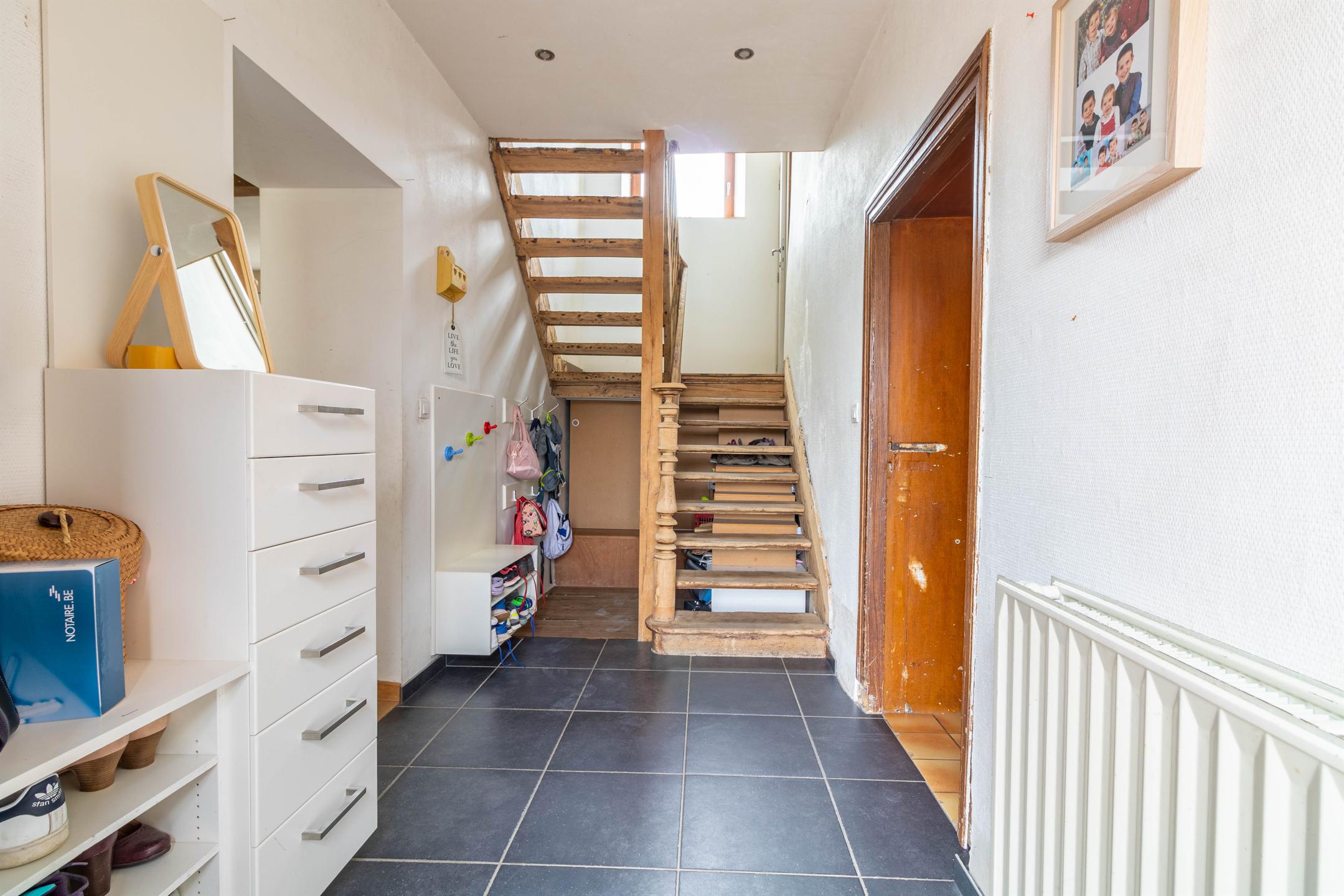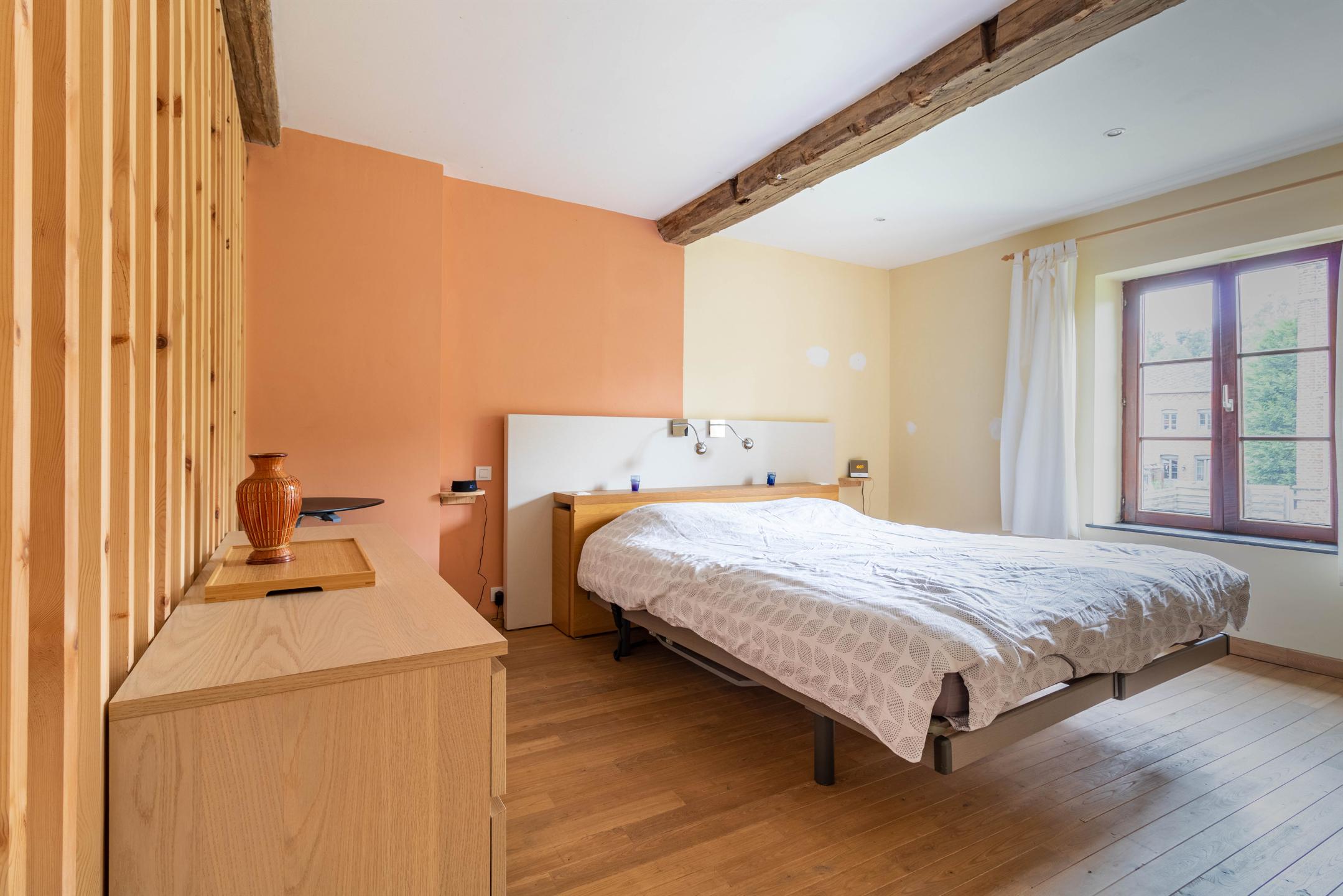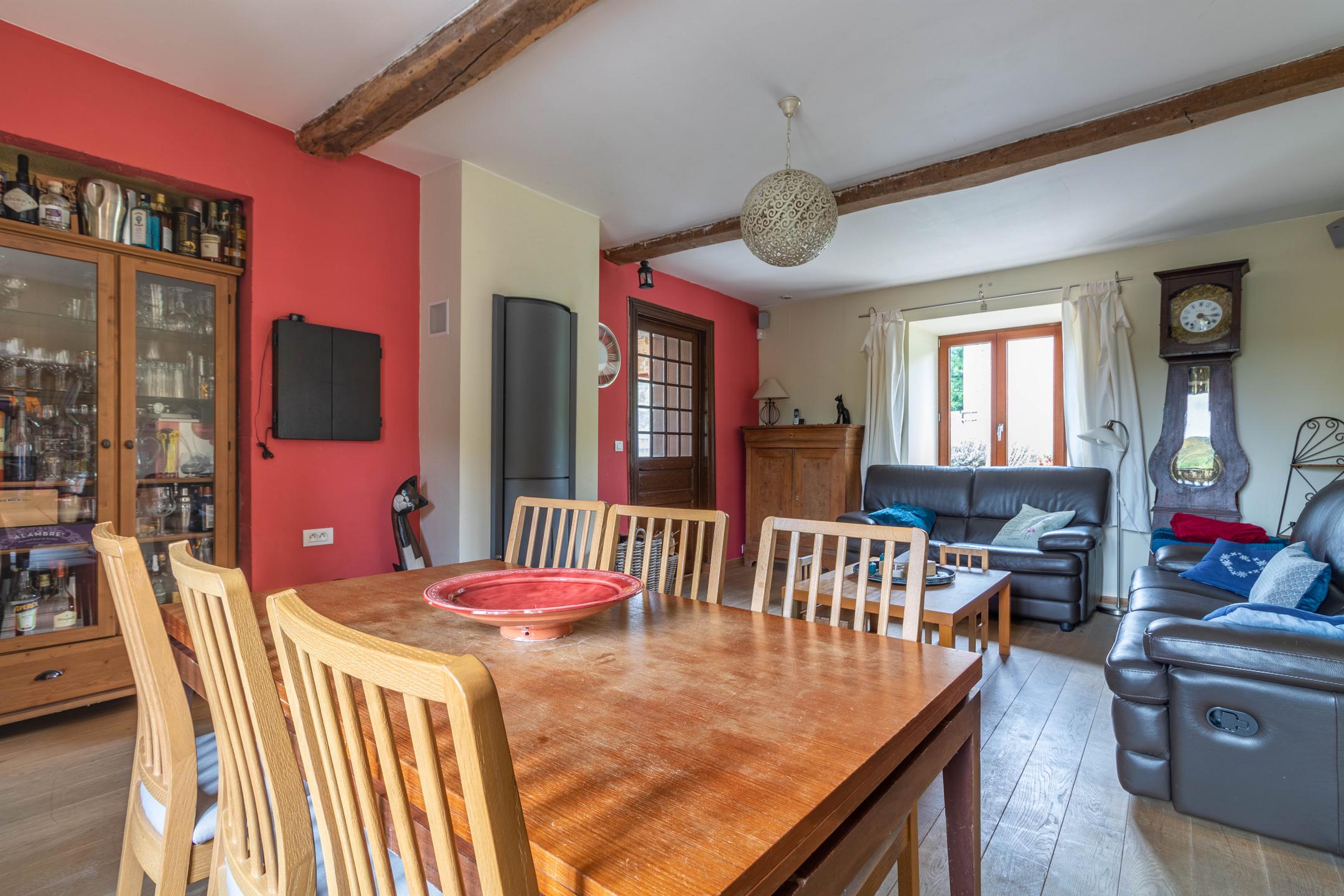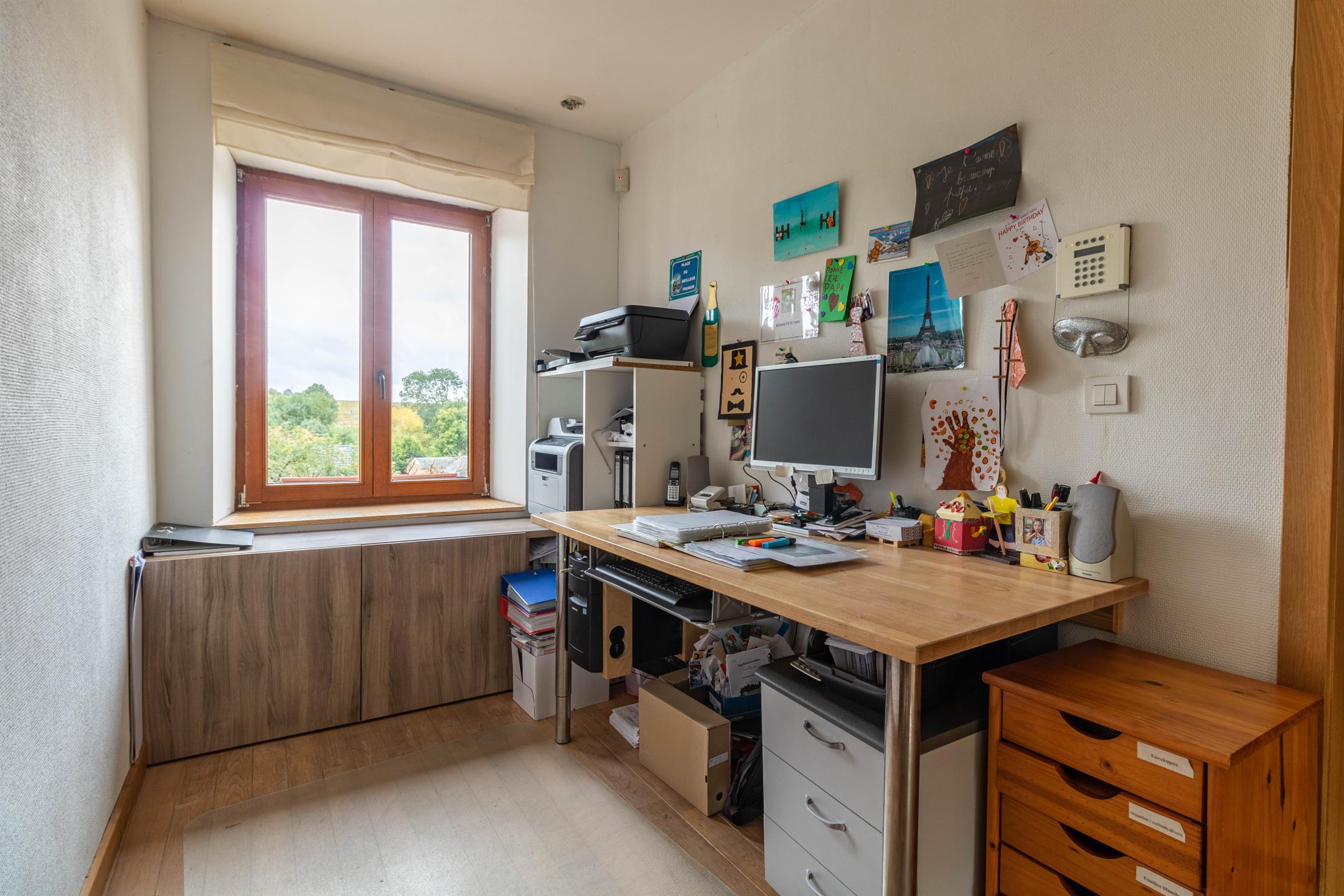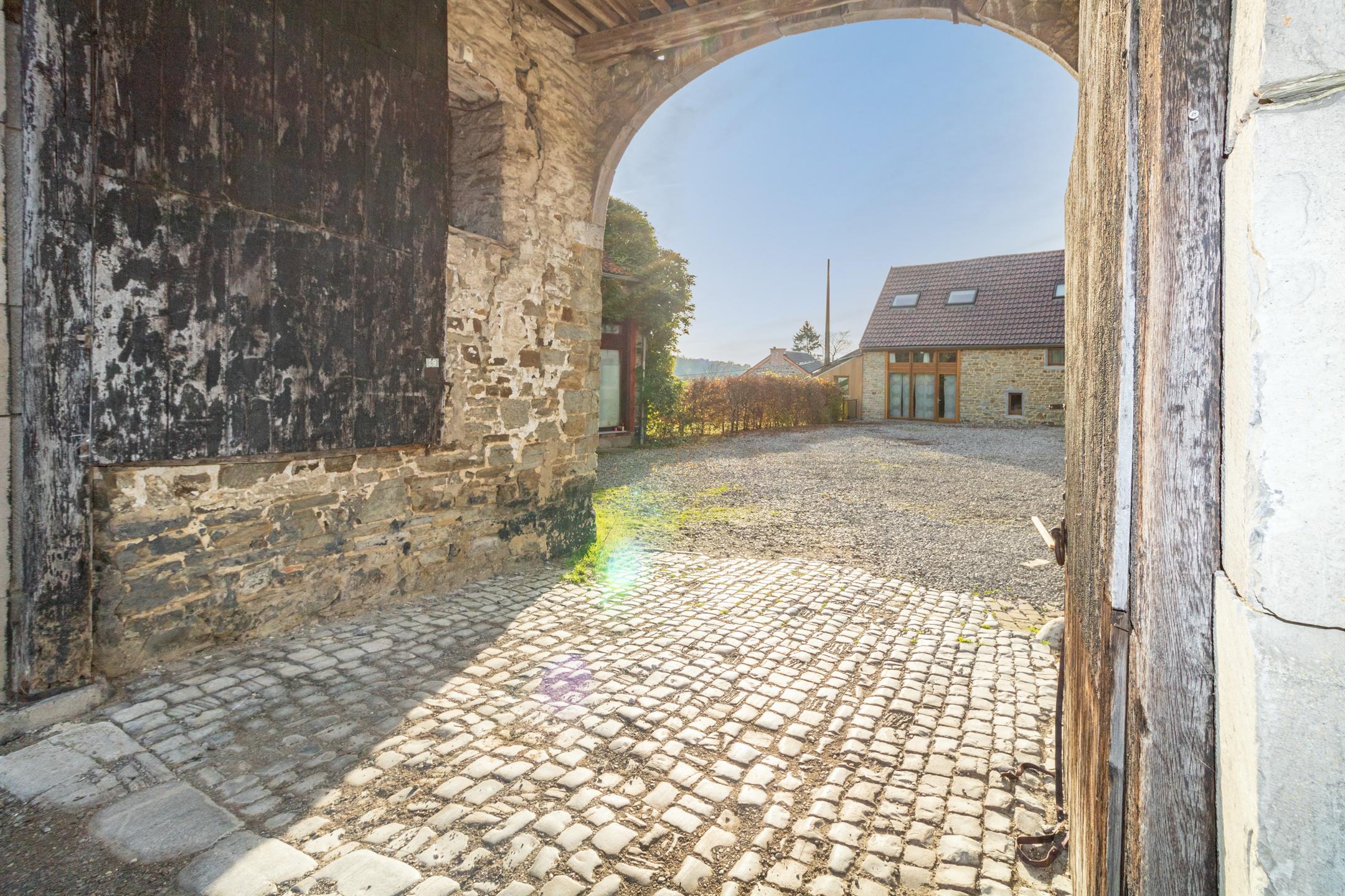 Très belle maison rénovée et aménagée avec goût, dans l’aile d’un corps de ferme en carré inscrit au patrimoine de la région wallonne, et idéalement située en campagne hesbignonne dans le petit village de Vieux-Waleffe, entre Bruxelles, Liège et Namur, à proximité de l’E42 et de l’E40. Au bout d’un chemin sans issue se dresse un somptueux porche en pierres de pays qui ouvre sur la cour de l’ancienne ferme. La maison se situe sur la droite. Elle comprend un hall d’entrée qui distribue, à gauche, sur un beau séjour avec un parquet en chêne et un poêle à bois, et à droite sur une grande cuisine équipée et une buanderie. Derrière le séjour, un grand atelier baigné de lumière, faisant pour le moment office de salle à manger, pourra accueillir divers projets : profession libérale, salle de réception, etc. Au premier étage, on trouve une chambre parentale avec dressing, un coin bureau, une salle d’eau avec douche à l’italienne et une seconde chambre. On appréciera le parquet en châtaignier et les portes en chêne. Au deuxième étage, trois autres chambres et une deuxième salle de bains avec douche et baignoire, et au sous-sol, une grande cave voûtée, en trois parties. A l’extérieur, le jardin privatif d’environ 500 m2 est agrémenté d’une grande terrasse et d’un appentis, et permet un accès direct à la rue. En pratique : chauffage central mazout (chaudière récente), citerne à eau de pluie de 10.000 l, 2 toilettes séparées aux entresols, installation électrique récente (en partie domotique), bonne isolation ! Enfin, cerise sur le gâteau, la grange attenante sur la droite de la maison, qui abrite pour le moment la chaufferie et un espace atelier, offre encore – avec une superficie de l’ordre de 50 m2 au sol sur 3 niveaux – un beau potentiel de rénovation et de multiples possibilités : extension de l’habitation principale, second logement séparé, espace professionnel, etc. Calme, charme et authenticité sont au rendez-vous !! Infos et visites : 019 51 15 50 ou [email protected]