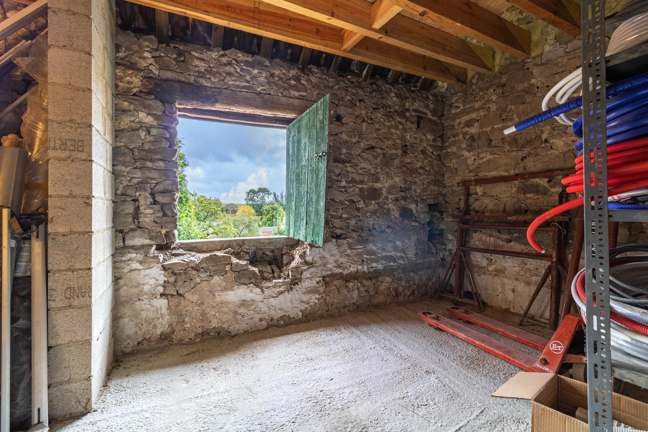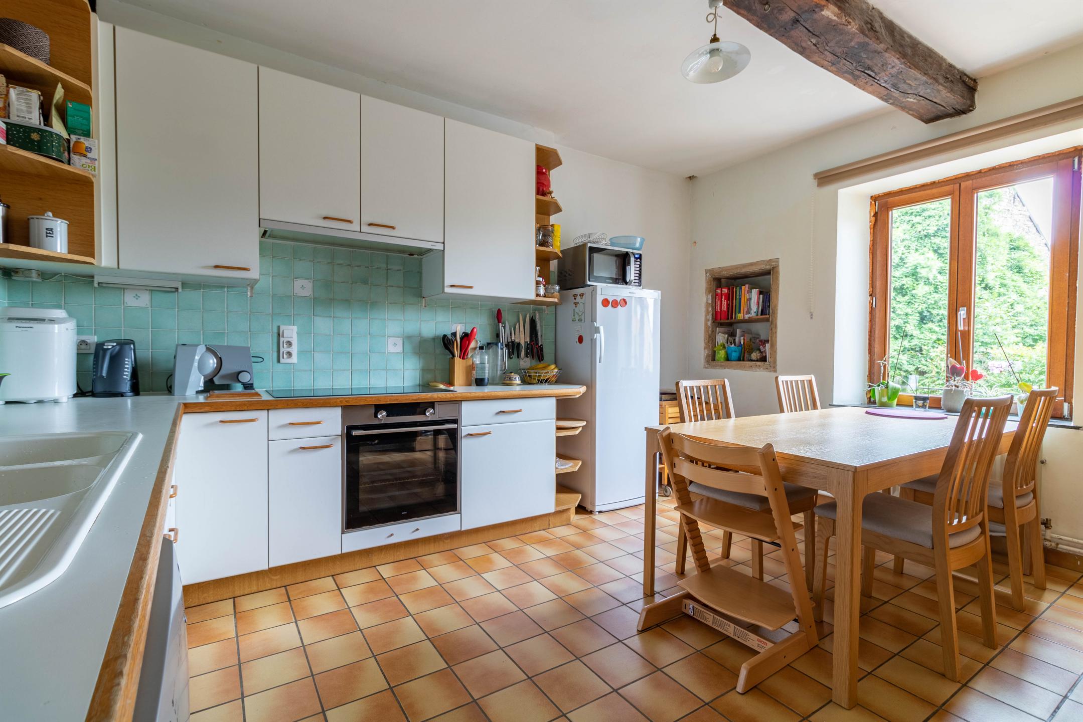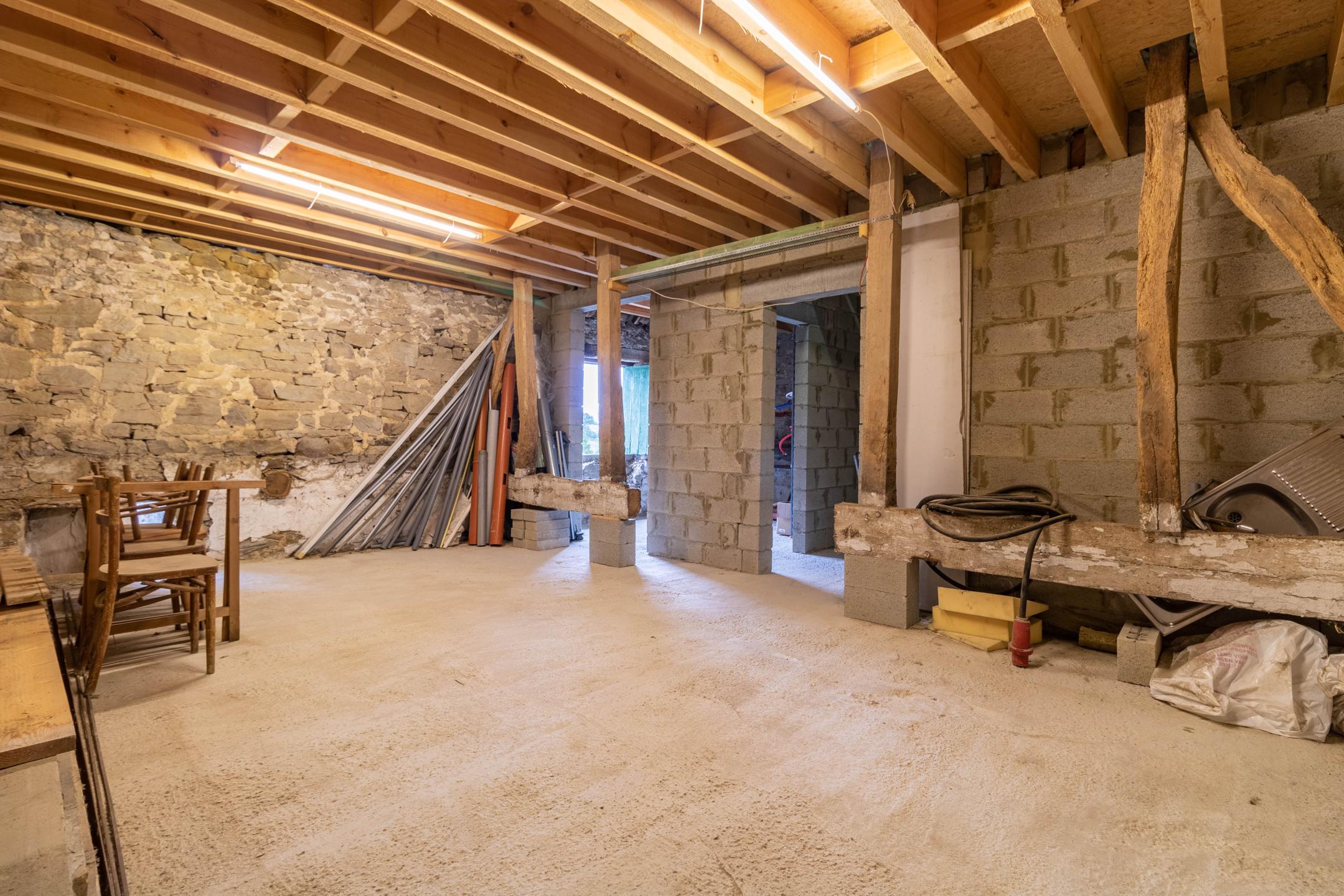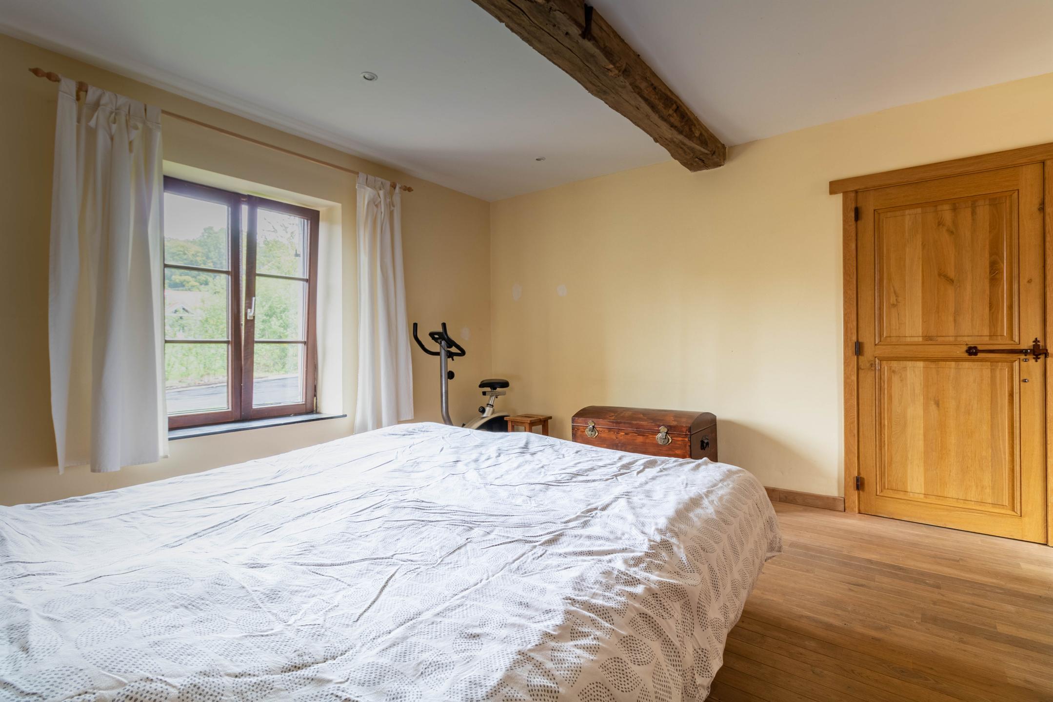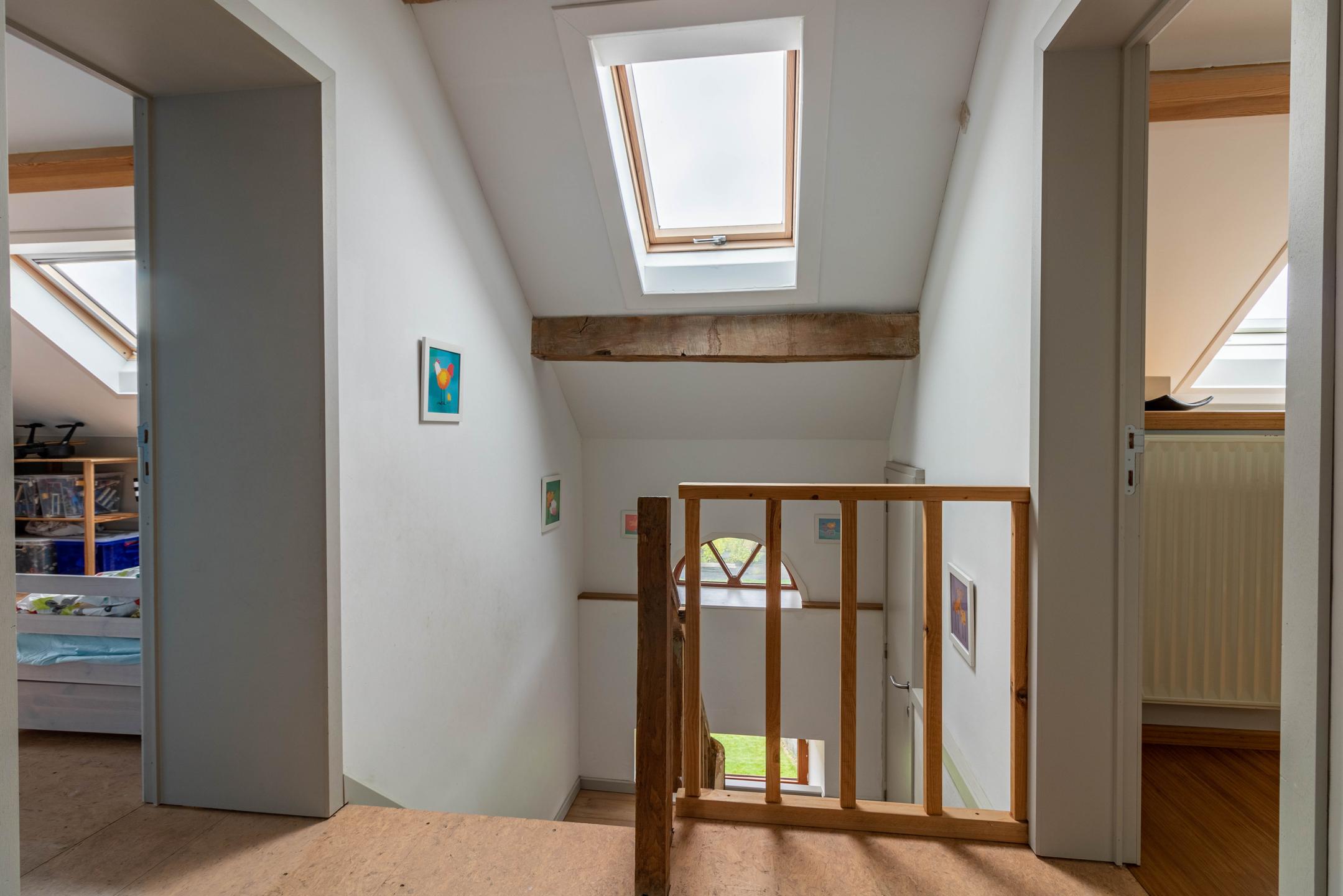 Très belle maison rénovée et aménagée avec goût, dans l’aile d’un corps de ferme en carré inscrit au patrimoine de la région wallonne, et idéalement située en campagne hesbignonne dans le petit village de Vieux-Waleffe, entre Bruxelles, Liège et Namur, à proximité de l’E42 et de l’E40. Au bout d’un chemin sans issue se dresse un somptueux porche en pierres de pays qui ouvre sur la cour de l’ancienne ferme. La maison se situe sur la droite. Elle comprend un hall d’entrée qui distribue, à gauche, sur un beau séjour avec un parquet en chêne et un poêle à bois, et à droite sur une grande cuisine équipée et une buanderie. Derrière le séjour, un grand atelier baigné de lumière, faisant pour le moment office de salle à manger, pourra accueillir divers projets : profession libérale, salle de réception, etc. Au premier étage, on trouve une chambre parentale avec dressing, un coin bureau, une salle d’eau avec douche à l’italienne et une seconde chambre. On appréciera le parquet en châtaignier et les portes en chêne. Au deuxième étage, trois autres chambres et une deuxième salle de bains avec douche et baignoire, et au sous-sol, une grande cave voûtée, en trois parties. A l’extérieur, le jardin privatif d’environ 500 m2 est agrémenté d’une grande terrasse et d’un appentis, et permet un accès direct à la rue. En pratique : chauffage central mazout (chaudière récente), citerne à eau de pluie de 10.000 l, 2 toilettes séparées aux entresols, installation électrique récente (en partie domotique), bonne isolation ! Enfin, cerise sur le gâteau, la grange attenante sur la droite de la maison, qui abrite pour le moment la chaufferie et un espace atelier, offre encore – avec une superficie de l’ordre de 50 m2 au sol sur 3 niveaux – un beau potentiel de rénovation et de multiples possibilités : extension de l’habitation principale, second logement séparé, espace professionnel, etc. Calme, charme et authenticité sont au rendez-vous !! Infos et visites : 019 51 15 50 ou [email protected]