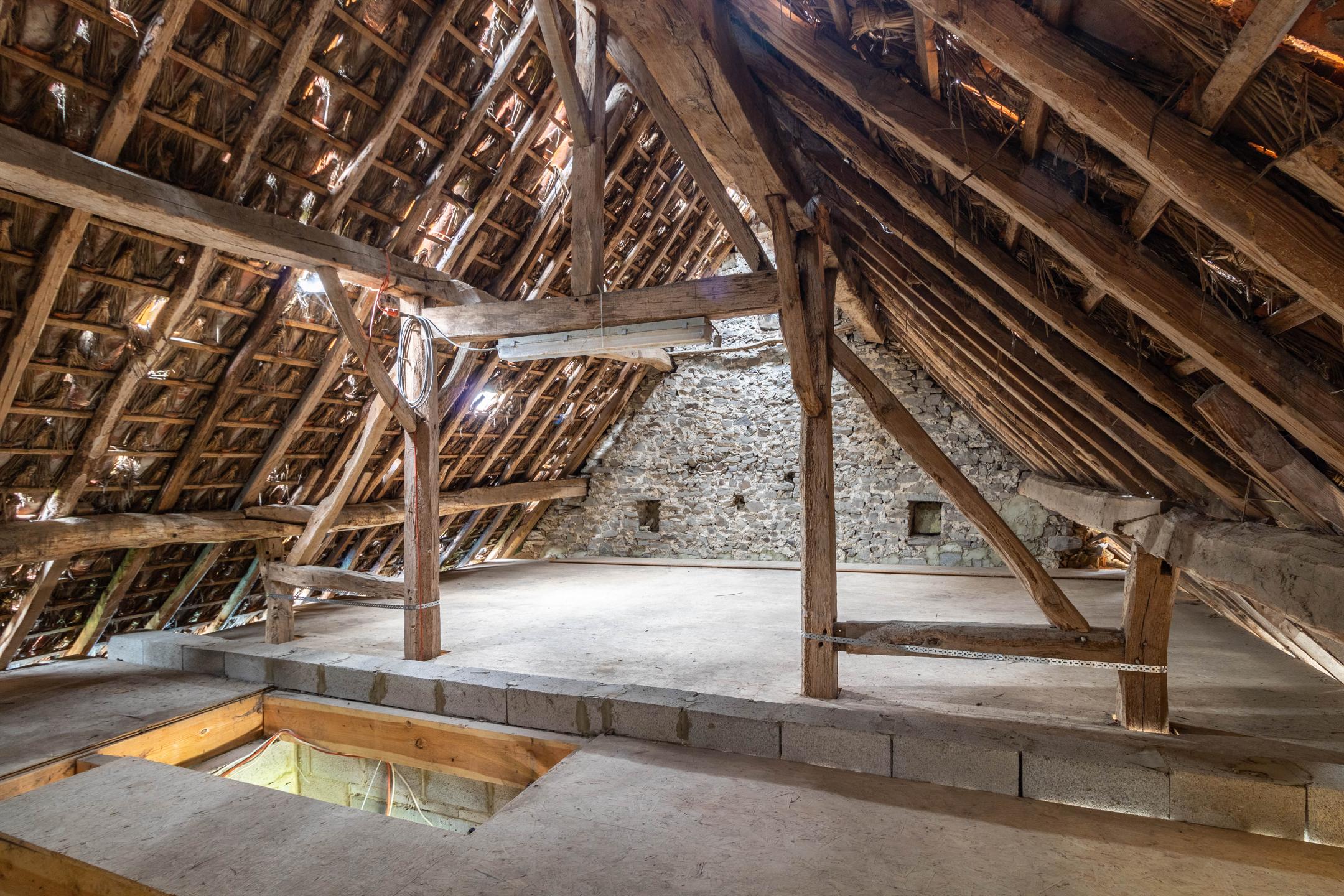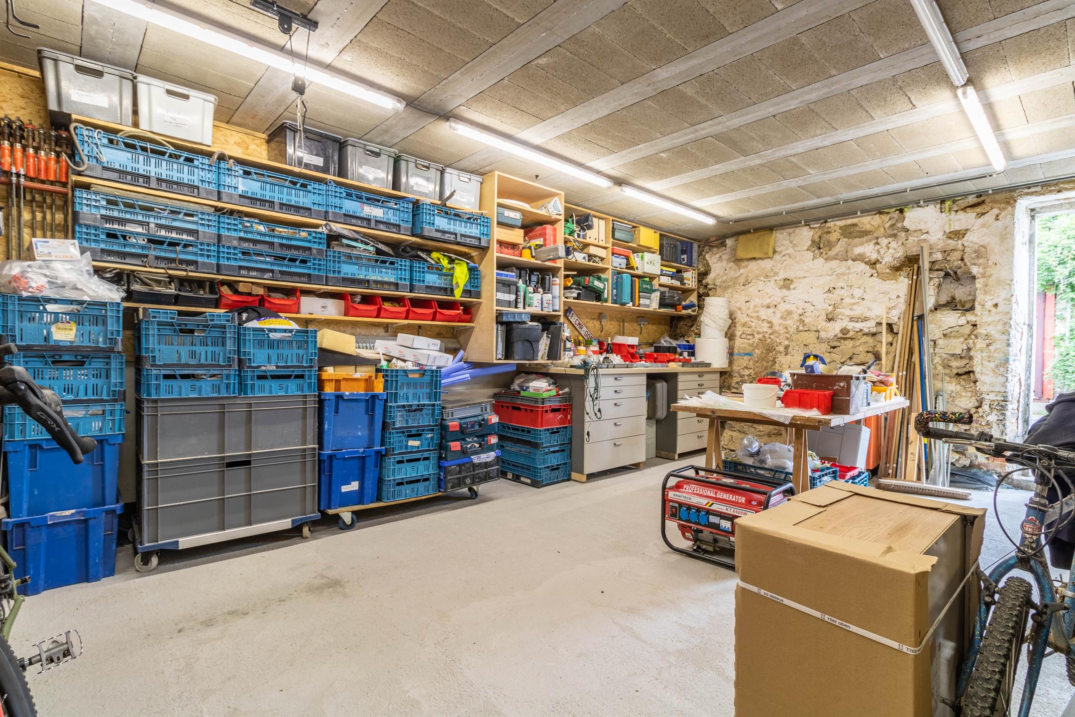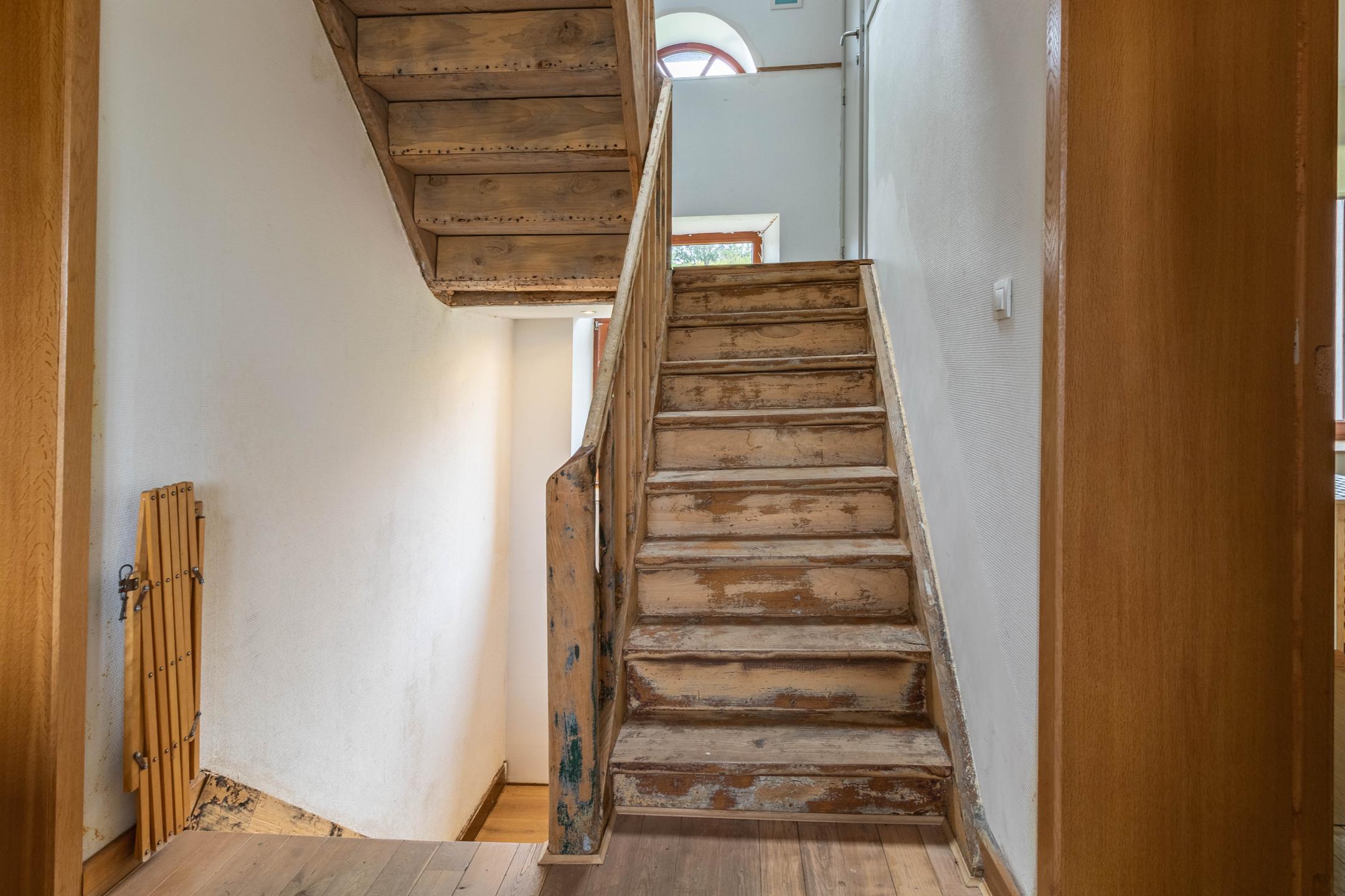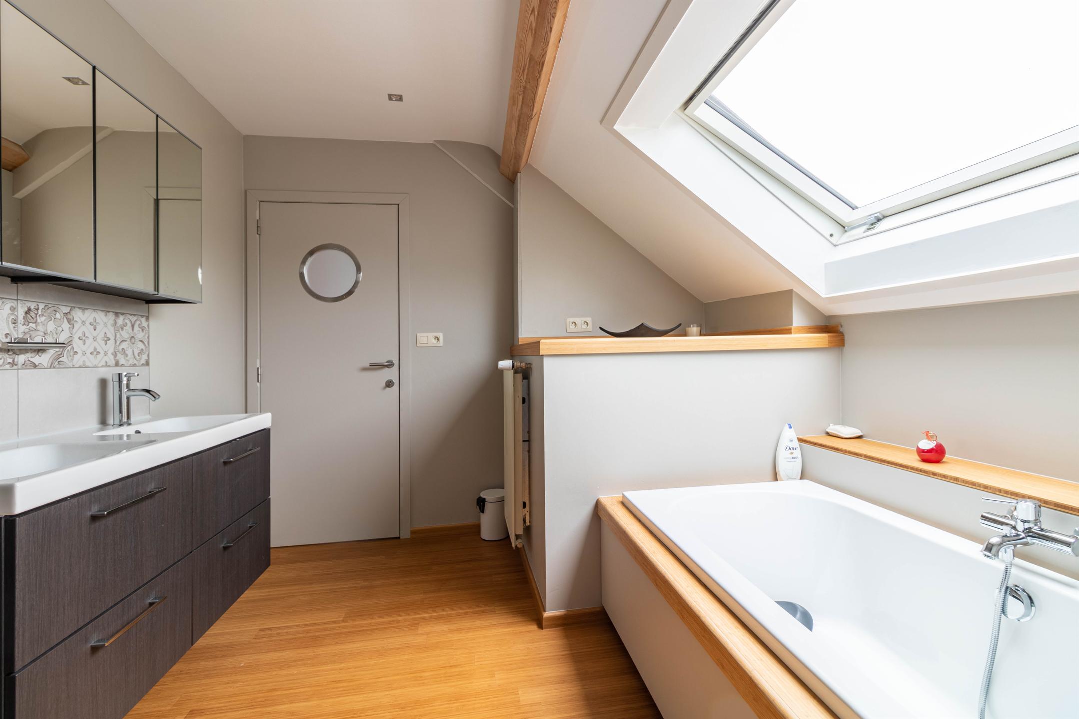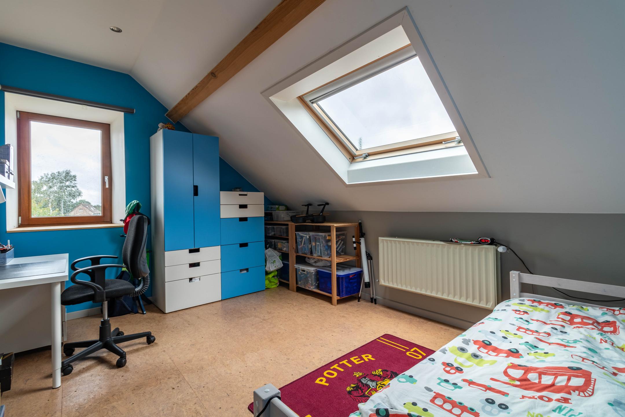 Très belle maison rénovée et aménagée avec goût, dans l’aile d’un corps de ferme en carré inscrit au patrimoine de la région wallonne, et idéalement située en campagne hesbignonne dans le petit village de Vieux-Waleffe, entre Bruxelles, Liège et Namur, à proximité de l’E42 et de l’E40. Au bout d’un chemin sans issue se dresse un somptueux porche en pierres de pays qui ouvre sur la cour de l’ancienne ferme. La maison se situe sur la droite. Elle comprend un hall d’entrée qui distribue, à gauche, sur un beau séjour avec un parquet en chêne et un poêle à bois, et à droite sur une grande cuisine équipée et une buanderie. Derrière le séjour, un grand atelier baigné de lumière, faisant pour le moment office de salle à manger, pourra accueillir divers projets : profession libérale, salle de réception, etc. Au premier étage, on trouve une chambre parentale avec dressing, un coin bureau, une salle d’eau avec douche à l’italienne et une seconde chambre. On appréciera le parquet en châtaignier et les portes en chêne. Au deuxième étage, trois autres chambres et une deuxième salle de bains avec douche et baignoire, et au sous-sol, une grande cave voûtée, en trois parties. A l’extérieur, le jardin privatif d’environ 500 m2 est agrémenté d’une grande terrasse et d’un appentis, et permet un accès direct à la rue. En pratique : chauffage central mazout (chaudière récente), citerne à eau de pluie de 10.000 l, 2 toilettes séparées aux entresols, installation électrique récente (en partie domotique), bonne isolation ! Enfin, cerise sur le gâteau, la grange attenante sur la droite de la maison, qui abrite pour le moment la chaufferie et un espace atelier, offre encore – avec une superficie de l’ordre de 50 m2 au sol sur 3 niveaux – un beau potentiel de rénovation et de multiples possibilités : extension de l’habitation principale, second logement séparé, espace professionnel, etc. Calme, charme et authenticité sont au rendez-vous !! Infos et visites : 019 51 15 50 ou [email protected]