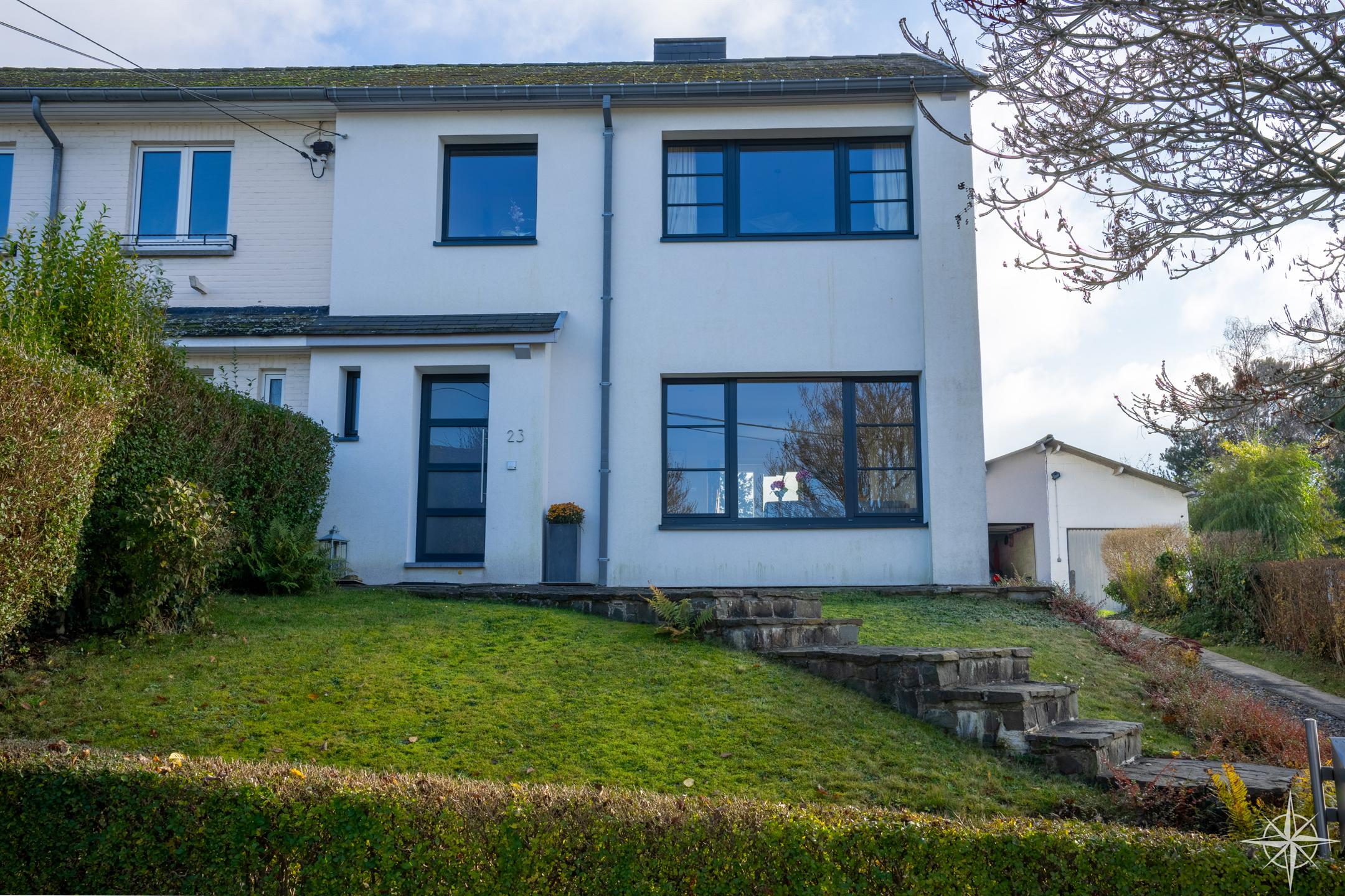Cap Sud Namur vous propose une maison 2 chambres avec garage et jardin située dans un quartier calme du village de Saint-Marc, à mi-chemin entre le centre ville de Namur et la E411. Composition du rez-de-chaussée : un hall d’entrée, un wc, un salon, une salle à manger et une cuisine équipée. Au 1er étage : une salle de douche avec wc, 2 chambres et un bureau. La maison dispose également d’un garage, d’une cave et d’un grenier, ainsi que d’un jardin plat et orienté Sud. Peb C, toute l’isolation des façades a été faite, chauffage central au gaz (chaudière à condensation), électricité conforme, châssis en PVC avec double vitrage récent, présence d’une marquise pour le soleil. Possibilité de réduction des droits d’enregistrement si les conditions sont respectées.