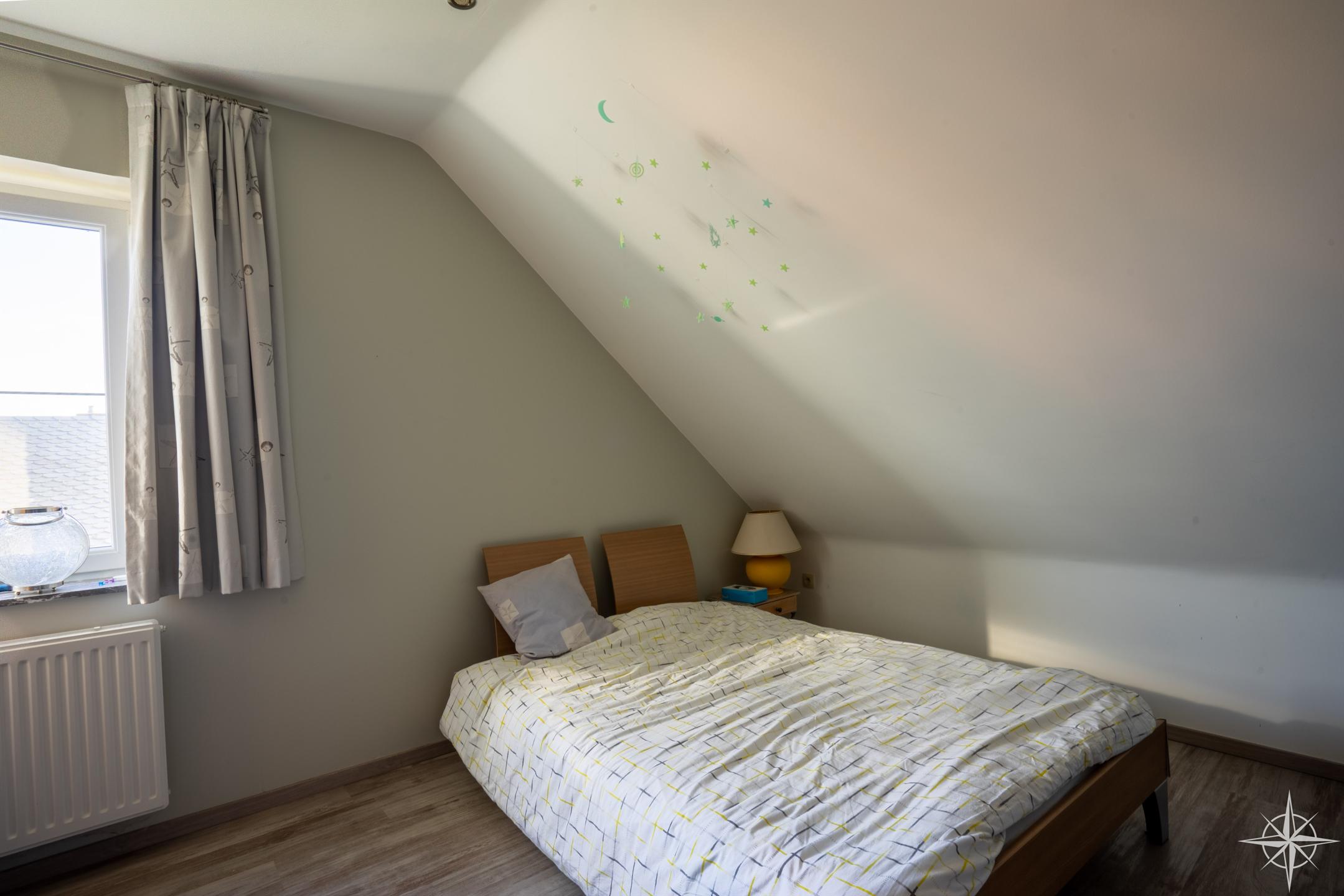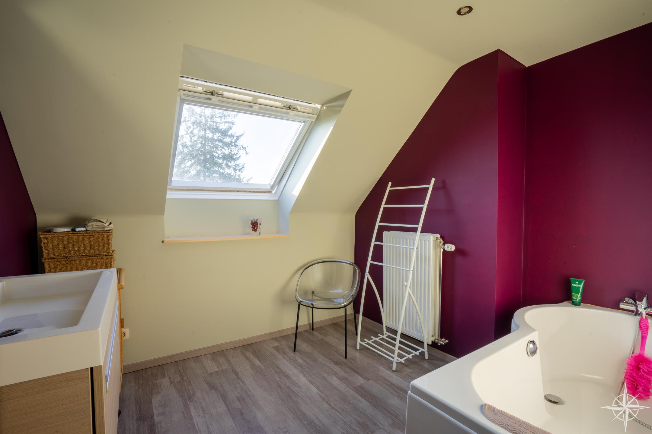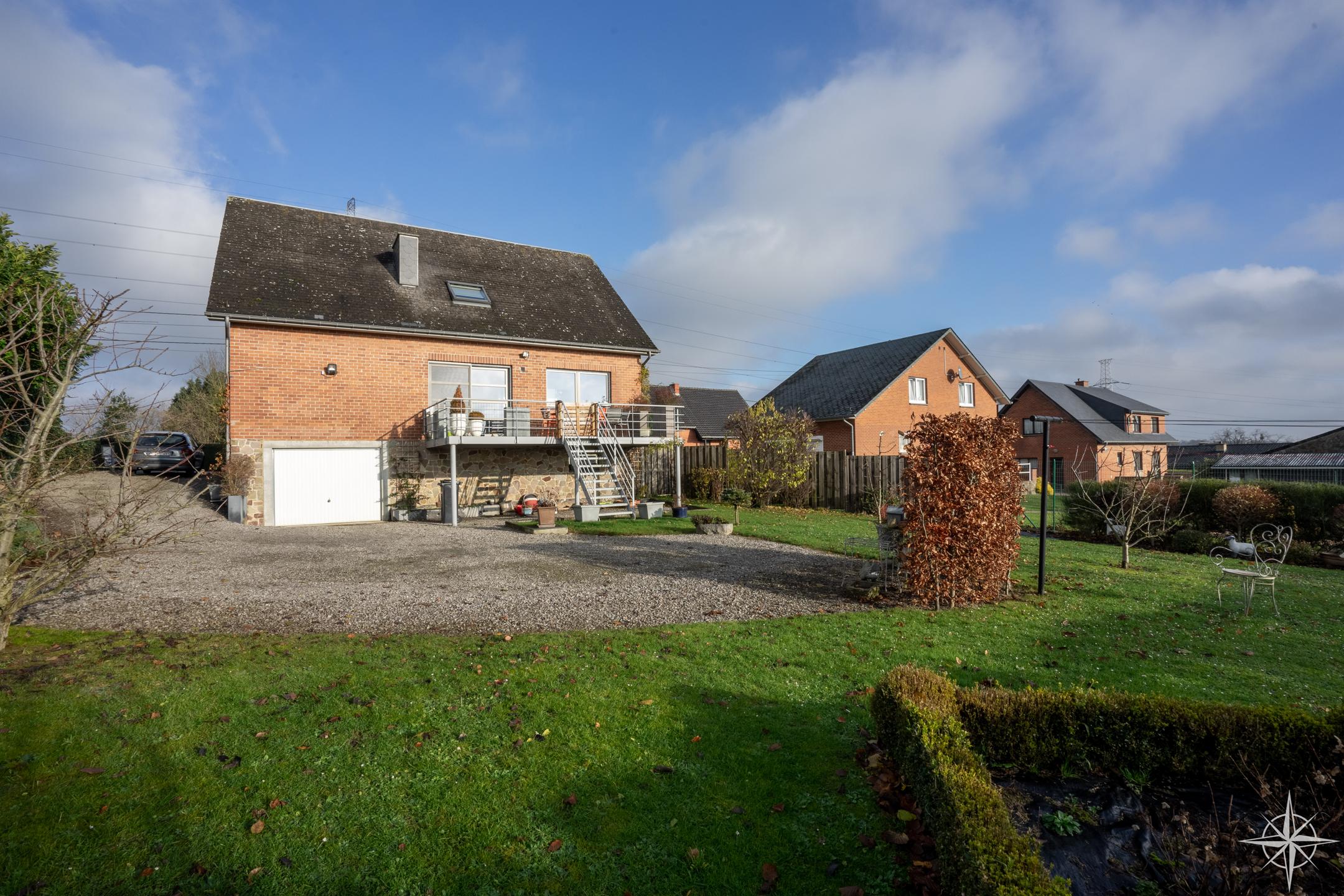 Composition du rez: hall d’entrée, salon, salle-à-manger, cuisine équipée avec coin à manger, chambre/bureau, salle de douche et wc. Etage: hall de nuit, 3 chambres dont une avec dressing , salle-de-bain et wc séparé. Le jardin est plat, arboré et orienté sud. La maison bénéficie également d’une terrasse, de caves sous toute la superficie et d’un garage avec porte électrique. Elle est équipée d’un chauffage central au mazout, de châssis en pvc avec double vitrage et d’une citerne à eau de pluie.