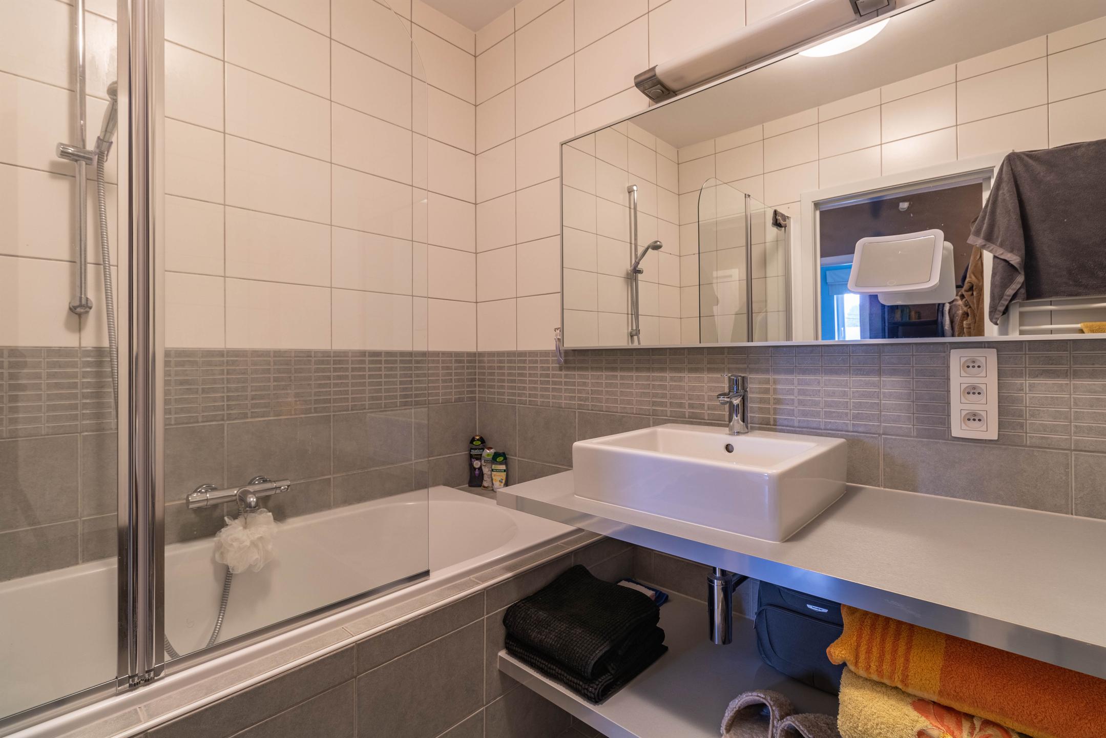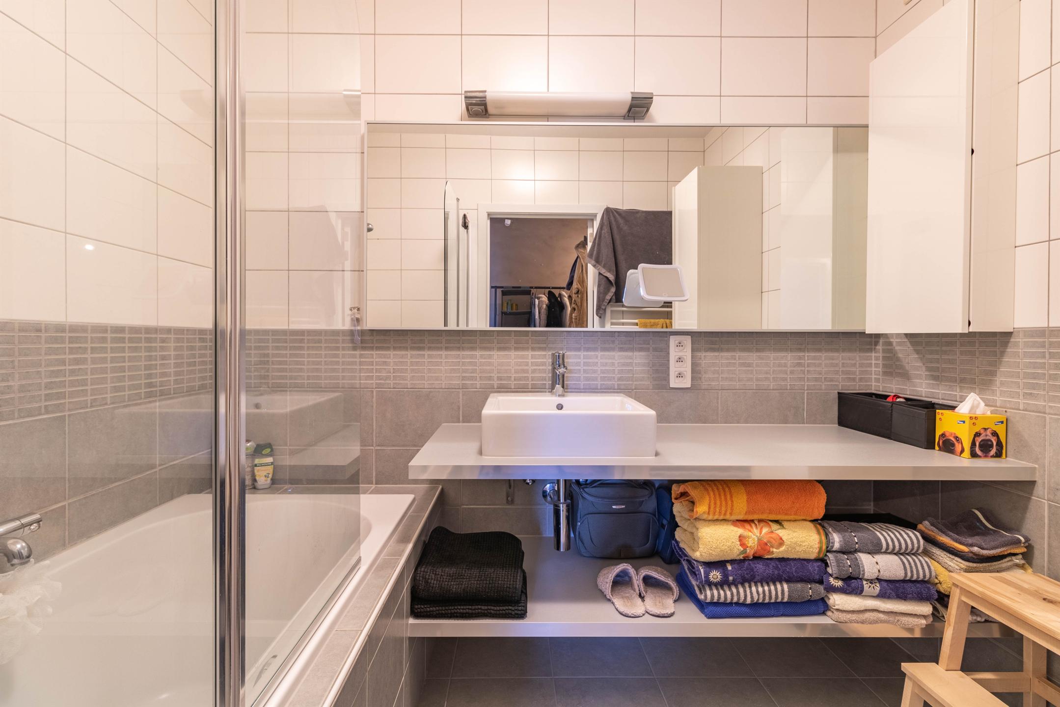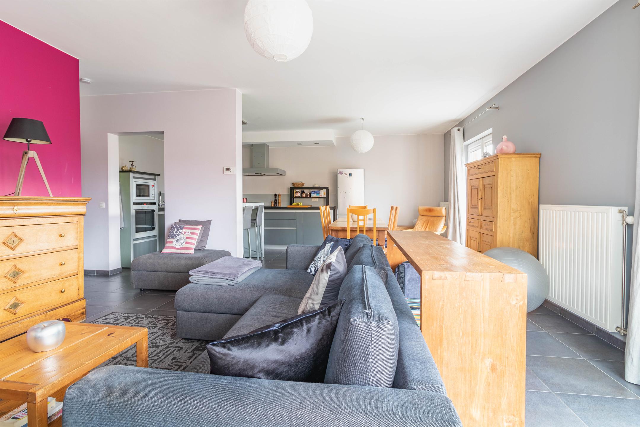 Très bel appartement, situé au calme en retrait de la rue – tout en étant à proximité immédiate du centre de Waremme et de toutes ses facilités (écoles, commerces, gare, etc.) – au premier étage d’une petite résidence de construction récente (2009) et de très bon standing. Le hall d’entrée dessert à droite: deux belles chambres de 10 et 12 m2; à gauche: une toilette séparée, une salle de bains, moderne et confortable, et une buanderie; et en face: un grand espace de vie très lumineux de plus de 40 m2, avec une magnifique cuisine ouverte, entièrement équipée, et donnant sur une agréable petite terrasse exposée sud-ouest et sans vis-à-vis direct. Très fonctionnel, l’appartement dispose en outre de beaux espaces de rangement dans le hall et la chambre principale. Une cave et deux emplacements de parking extérieurs complètent l’ensemble. Chauffage individuel au gaz (chaudière à condensation), PEB B. Offre rare sur le marché ! Remettre offre sous réserve d’acceptation des propriétaires. Infos et visites : 019 51 15 50 ou [email protected]