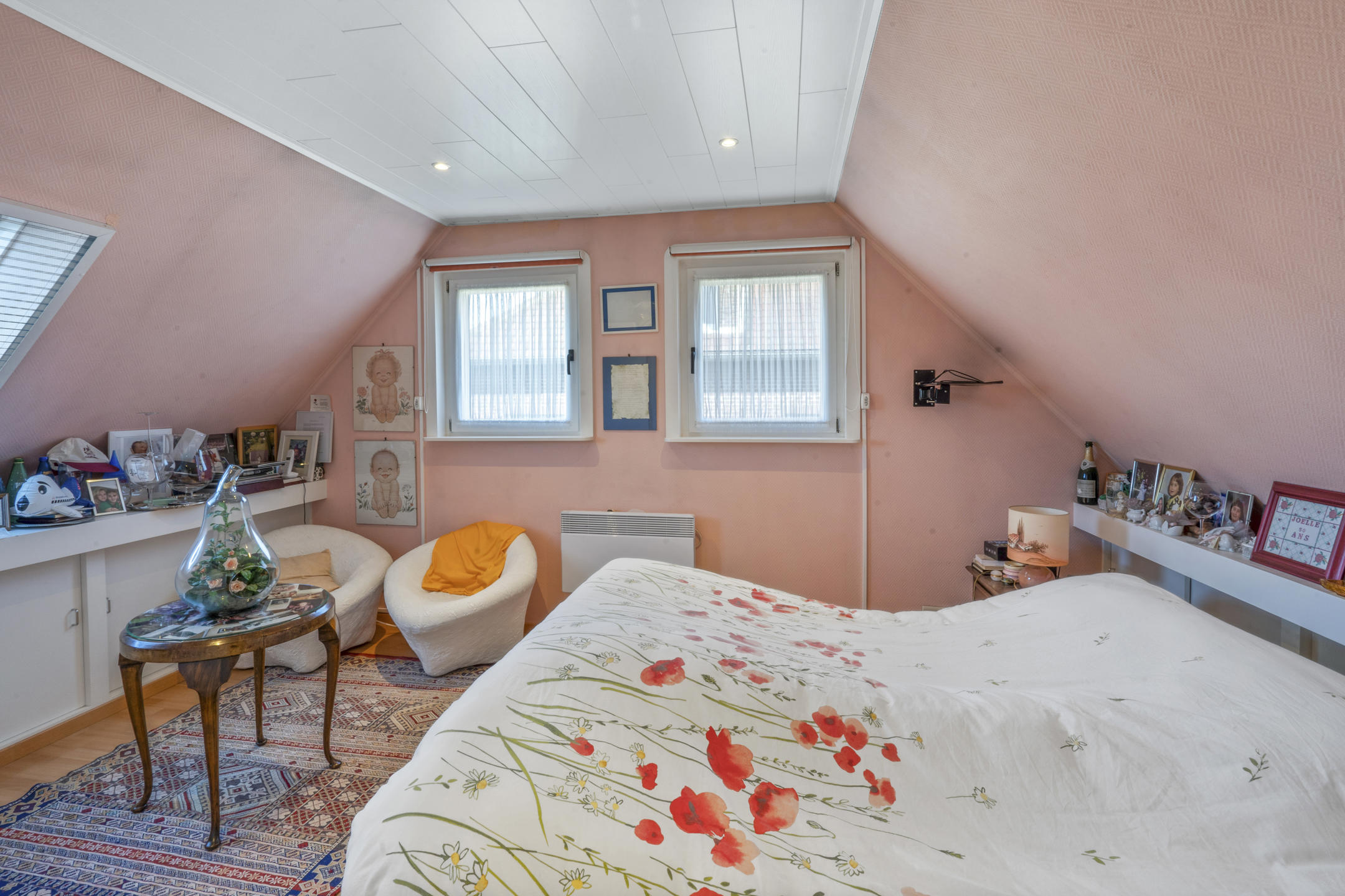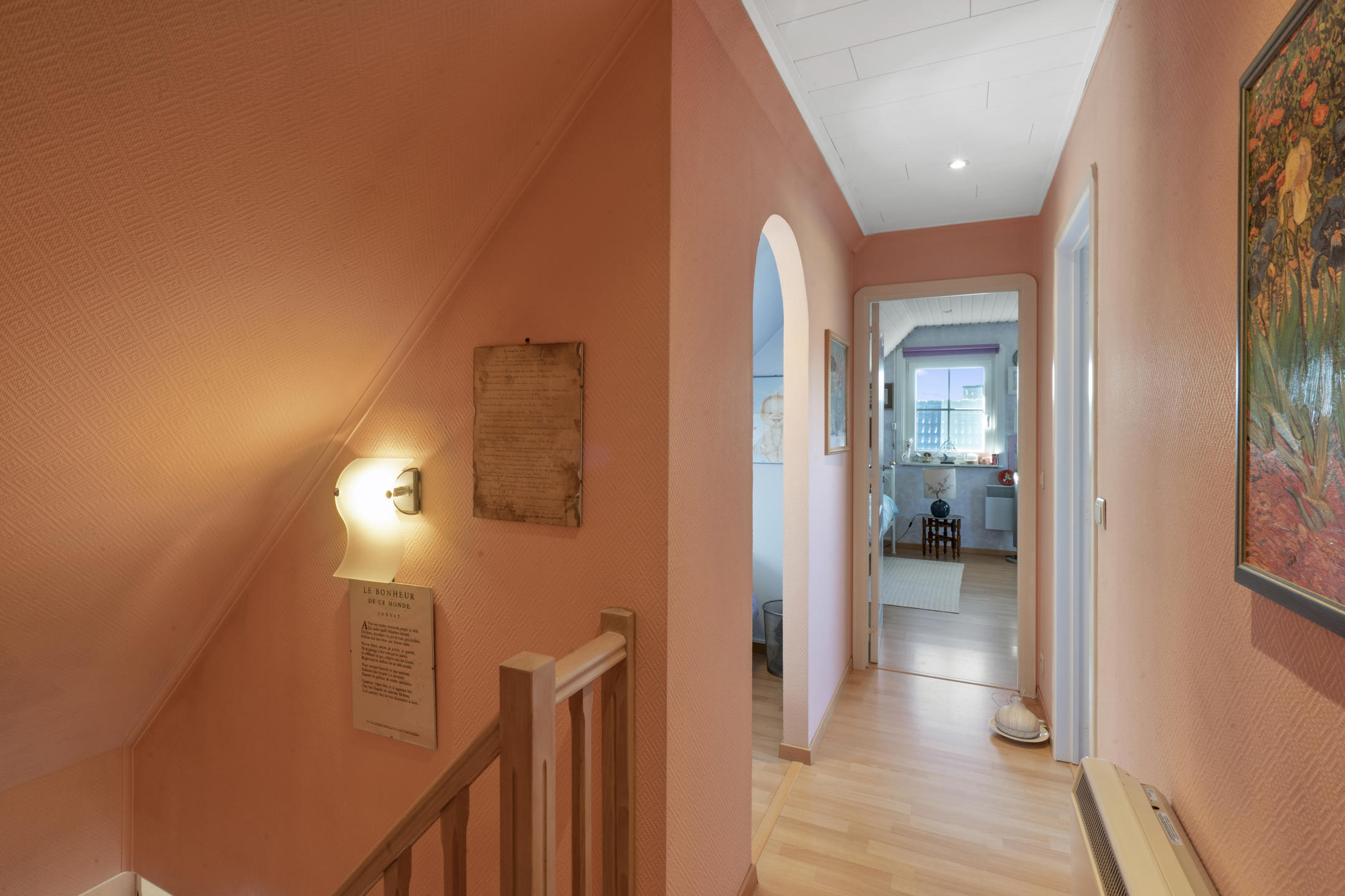 L’étage dessert 2 chambres lumineuses, un espace bureau et la salle de bain.