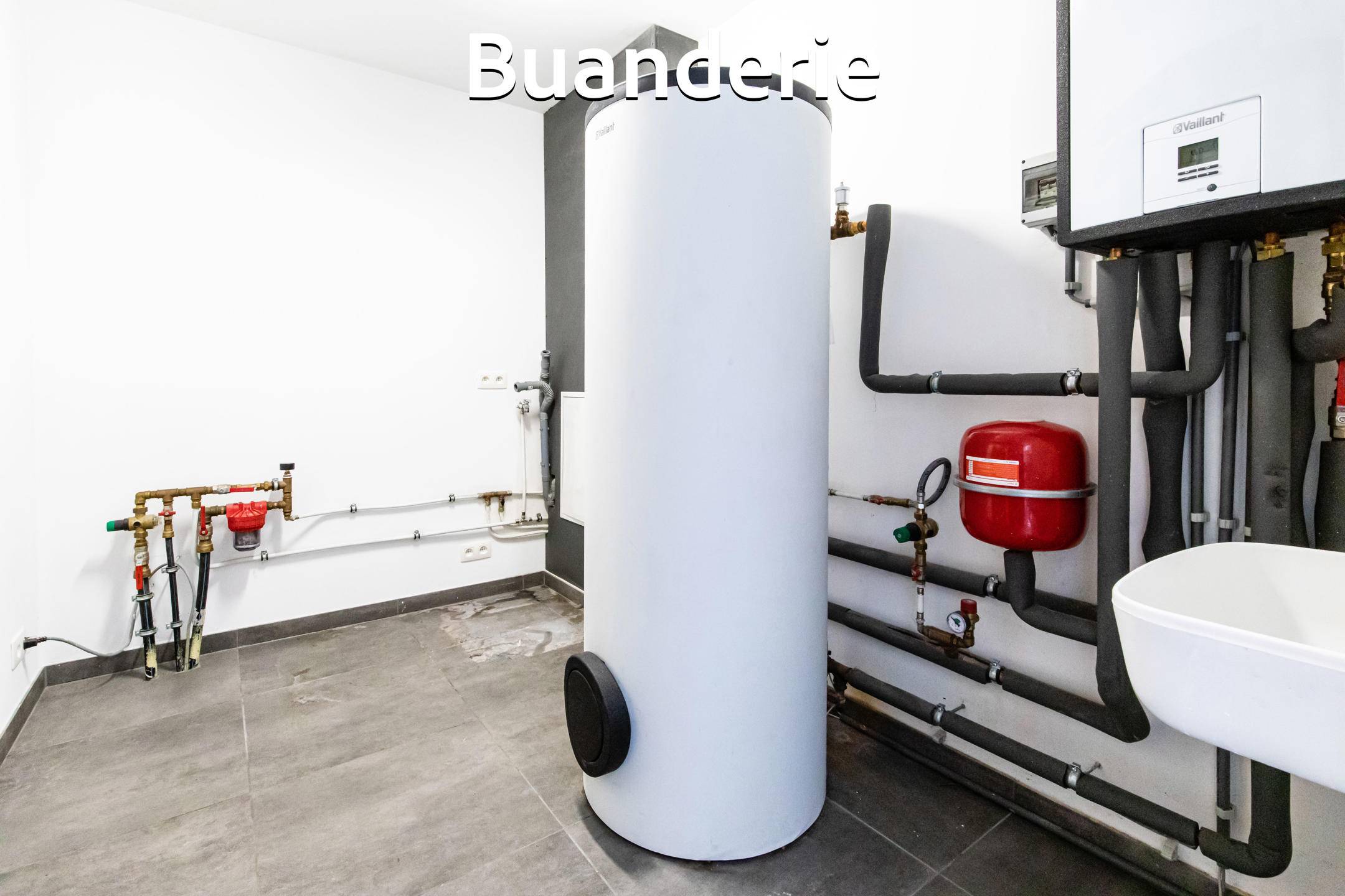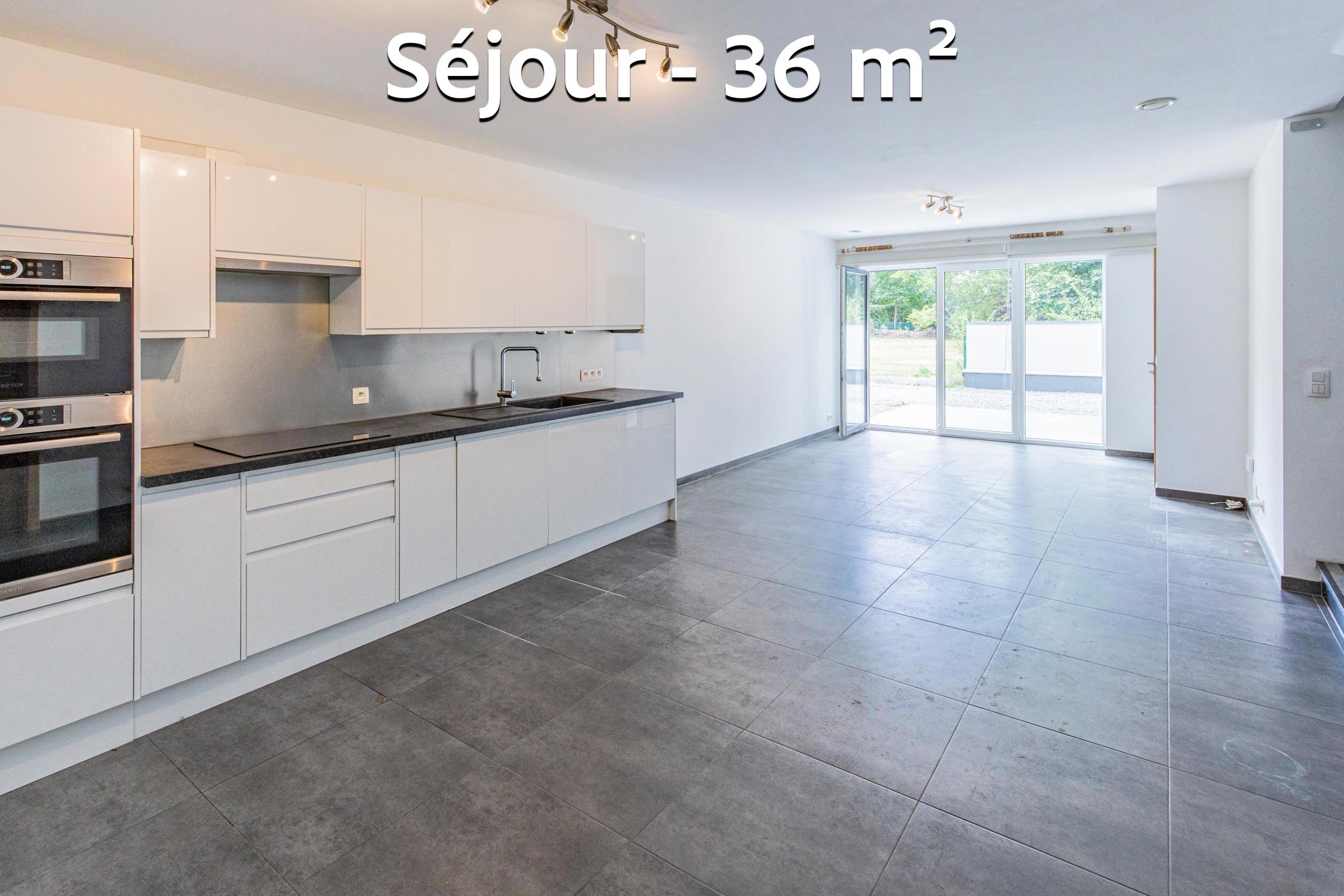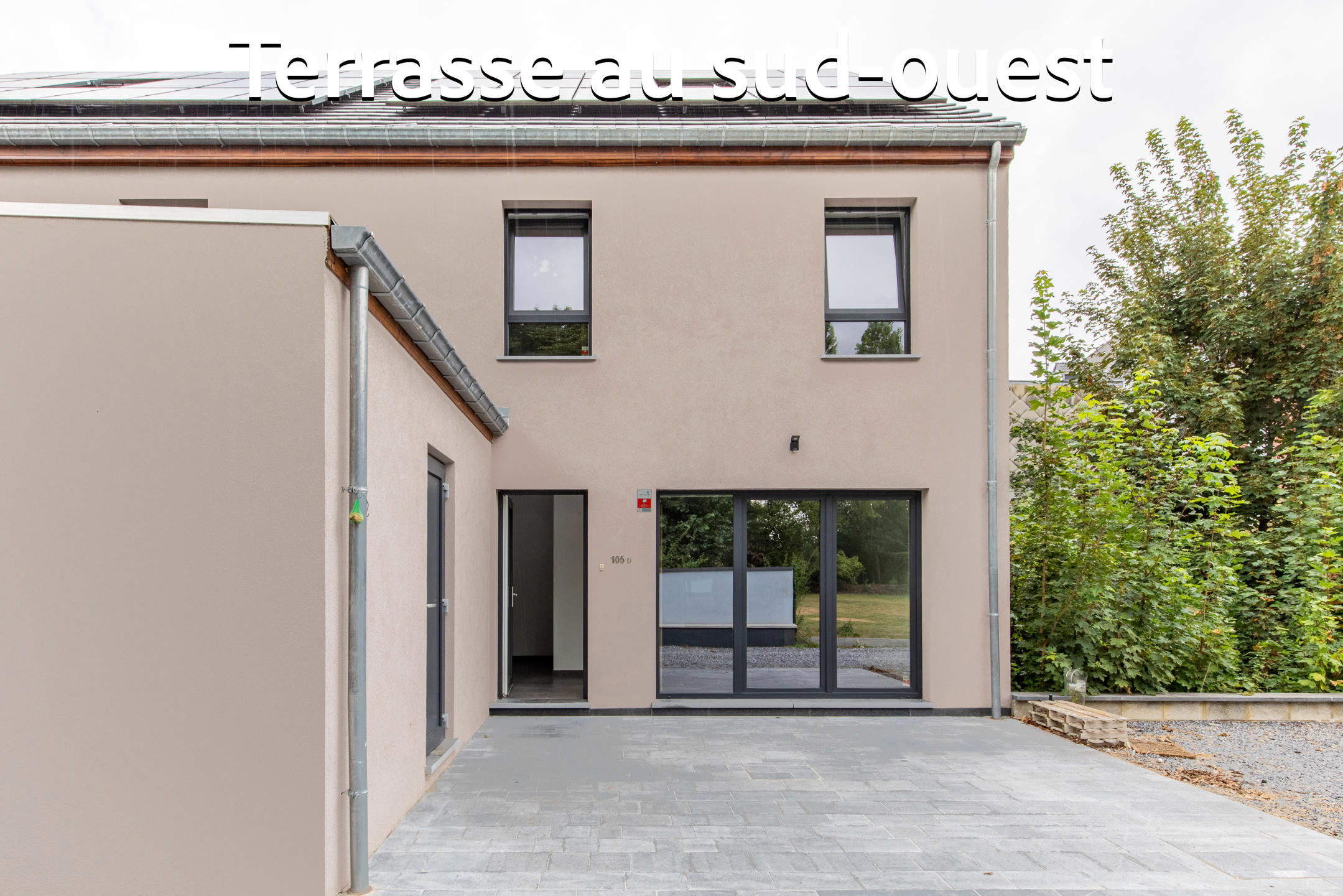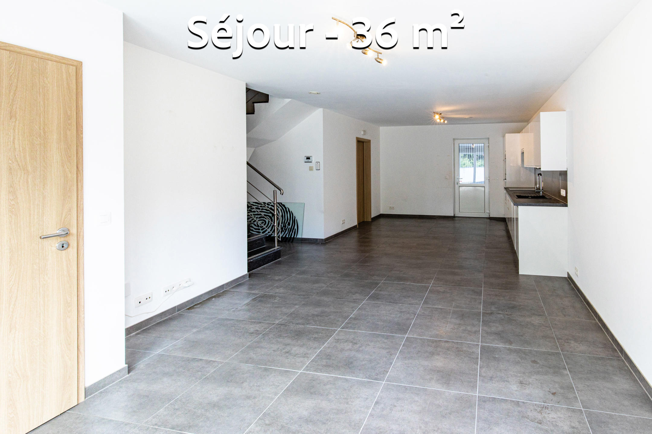 Cette maison basse énergie (A+) bénéficie d’un emplacement exceptionnel : en plein cœur de Hannut, dans un lieu calme, à l’arrière de la rue Albert 1er ! Vous profitez ainsi de tous les avantages du centre-ville (commerces, écoles, transports en commun, activités sportives et culturelles, etc.) sans les nuisances sonores. Ce lotissement de 4 maisons dispose d’une aire de parking privée et d’un jardin commun de 750 m². Construite en 2016-2017, la maison dispose d’un équipement tout confort : cuisine super équipée, pompe à chaleur, chauffage au sol (au rdc), panneaux photovoltaïques, châssis PVC double vitrage, citerne d’eau de pluie (5 000 litres), … Ces équipements, ainsi que l’excellente performance énergétique du bâtiment (A+) permettent de diminuer considérablement le montant de vos factures d’eau, d’électricité et de chauffage. Composition du rdc : hall d’entrée, wc, grand séjour intégrant la cuisine (36 m²), buanderie. 1er étage : 3 chambres (12, 12 et 11 m²), salle de bain avec baignoire et douche à l’italienne (7m²), wc séparé. 2ème étage : 1 chambre (22 m²) avec douche à l’italienne. A l’extérieur, une cour arrière (19 m²) et une remise (6 m²) permettent un rangement aisé et sécurisé (de vos vélos, par exemple). La terrasse est idéalement orientée au sud-ouest. Le RaVel est accessible via un passage privé. Loyer mensuel de 1 050 €. Aucune charge commune ou forfaitaire. Libre dès le 15 juin 2022. Infos et visites au 019 / 511 550 ou [email protected]