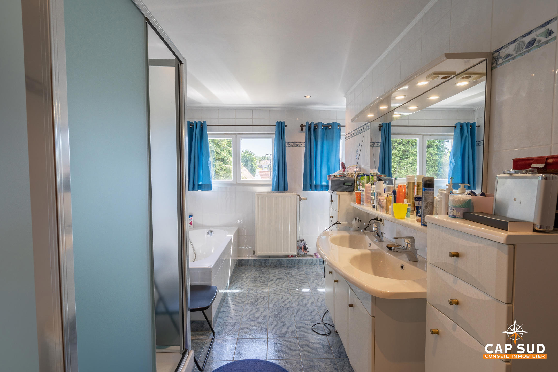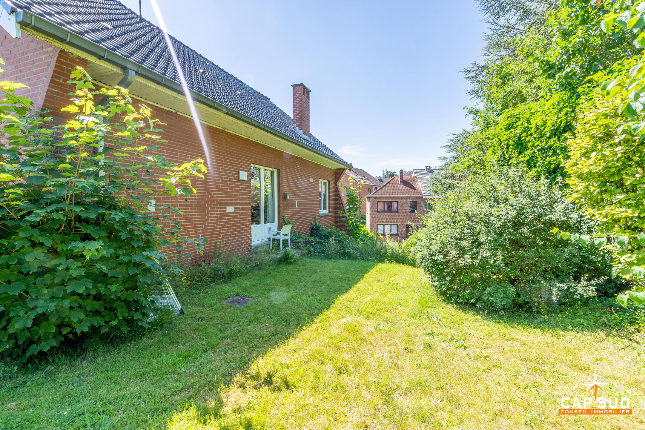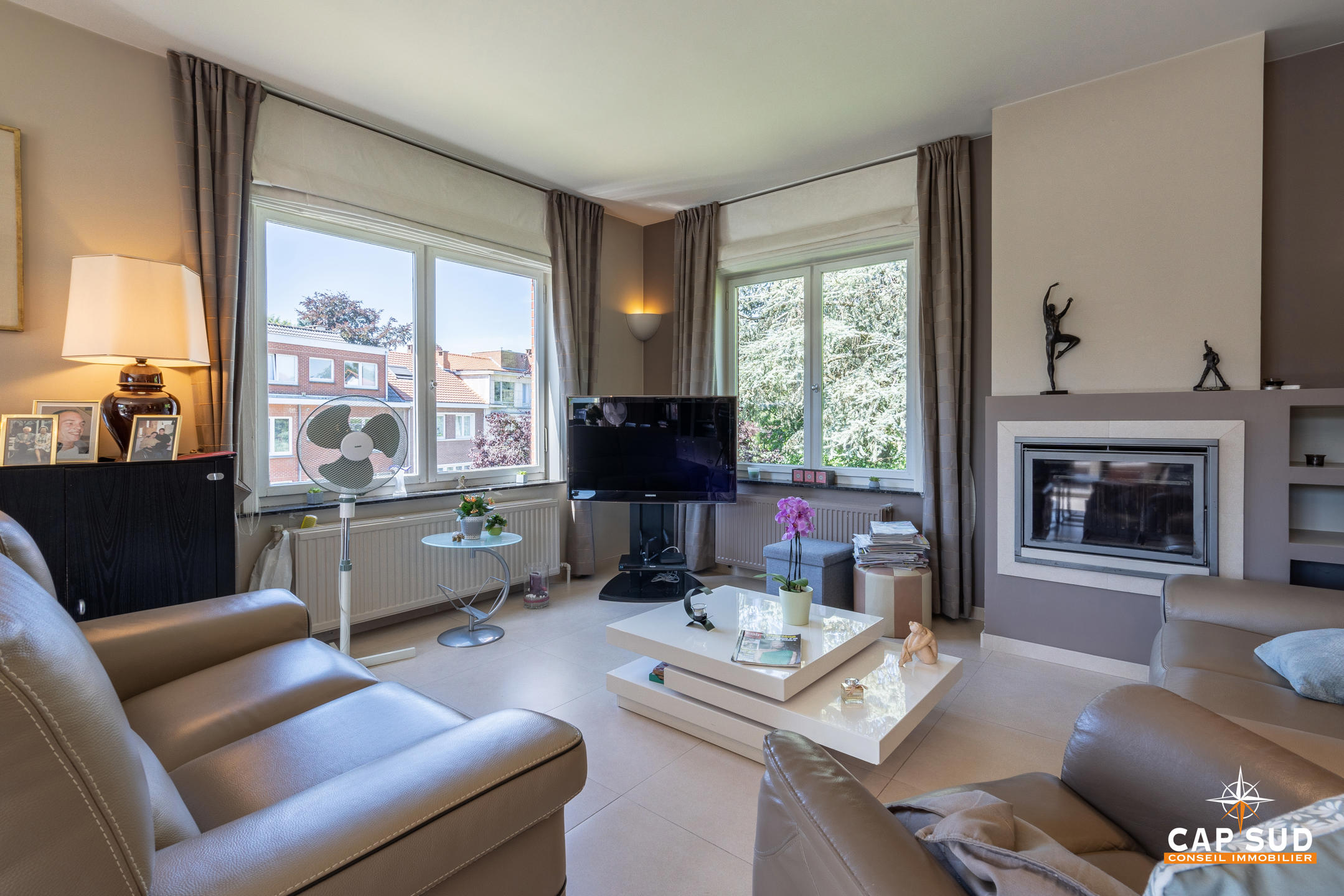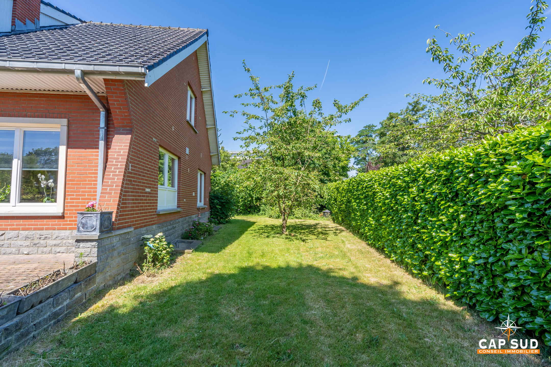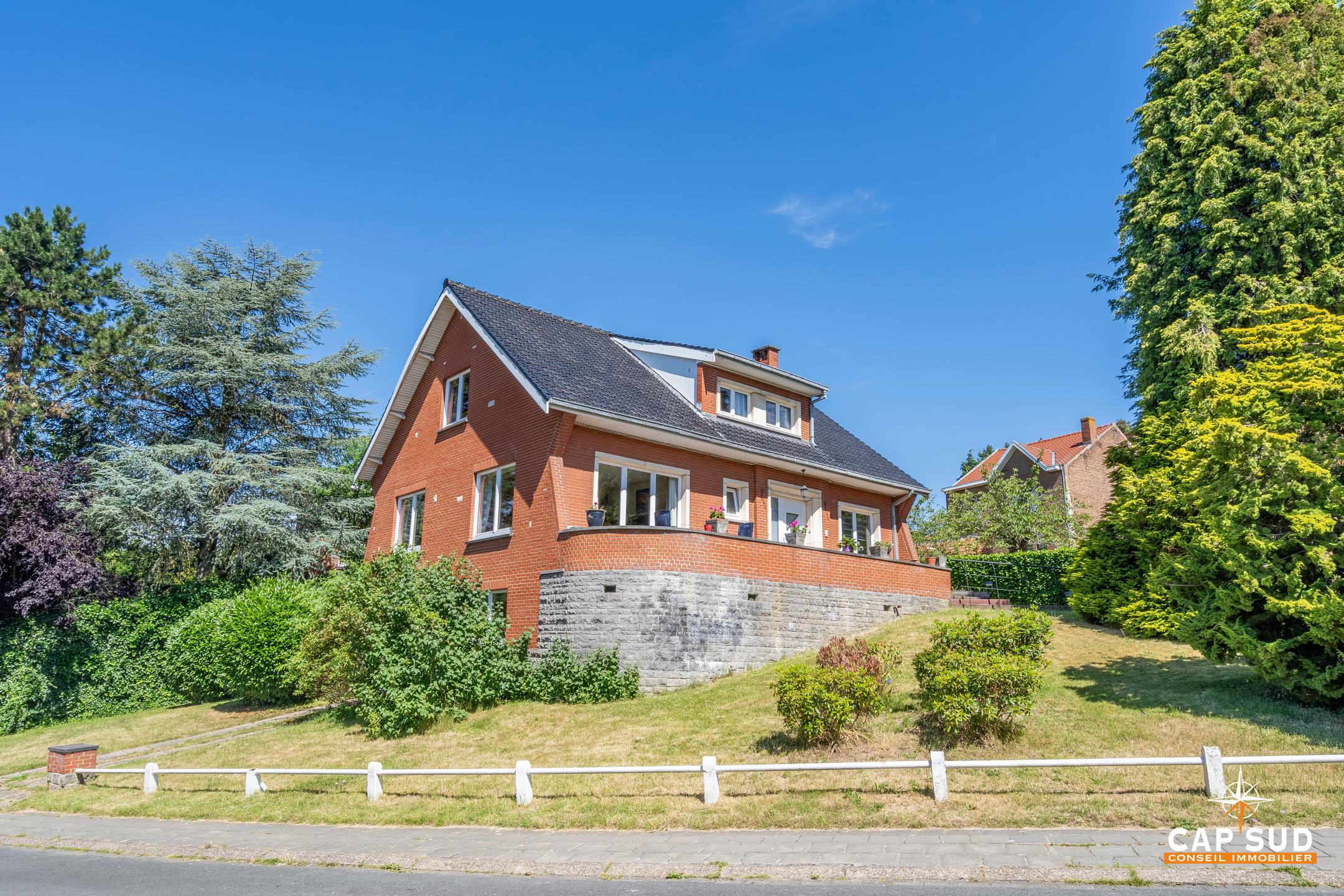 Waterloo – Dans le quartier du Chenois, à proximité de toutes facilités (gare, écoles, commerces) et dans un quartier aéré et verdoyant, CAP SUD vous propose cette jolie villa de 244m2 sise sur un terrain de 5,08ares. Au rez, vous trouverez un vaste hall d’entrée menant à un living très lumineux de 45m2 avec feu ouvert (k7), une cuisine « Dovy » super équipée neuve, un bureau ou chambre de 15m2. Au 1er, deux grandes chambres de 16 et 17m2 avec une salle de bains complète de 10m2. Grenier de rangement sous pente de 17m2. Au sous-sol, une chambre ou pièce polyvalente de 17m2, une grande buanderie/cave de 28m2 ainsi qu’un garage de 25m2. Belle terrasse orientée Sud. Le villa se situe légèrement en hauteur par rapport à la rue et bénéfice donc d’une lumière naturelle non négligeable en offrant une vue dégagée sur les environs! A découvrir rapidement…