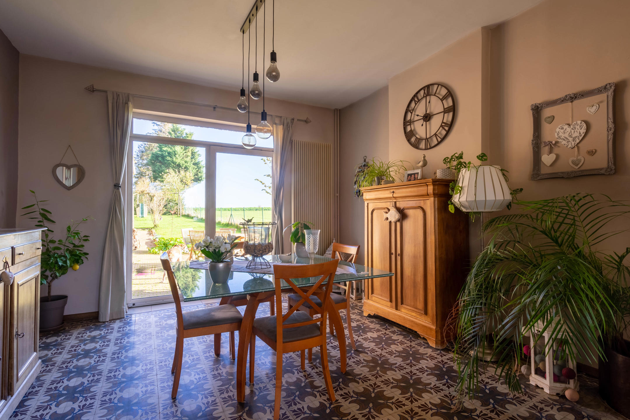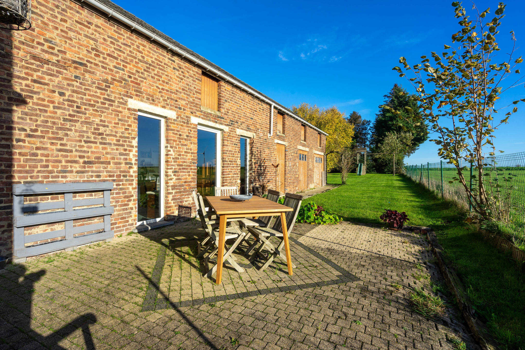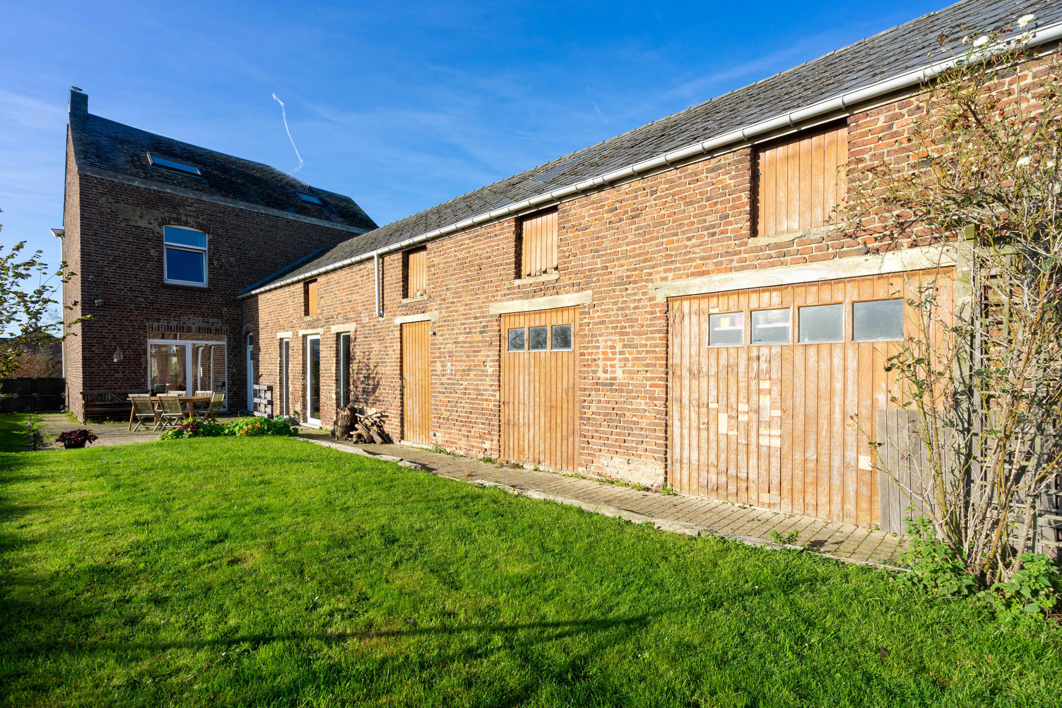 A l’extérieur le bien dispose d’une terrasse, d’un jardin clôturé et sans vis-à-vis de 7 ares.
