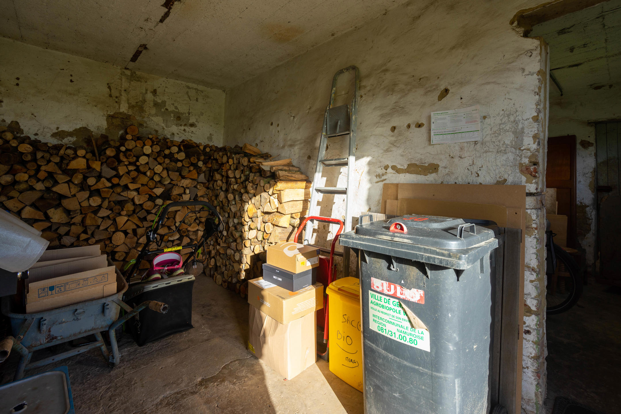 Composition du rez: hall d’entrée, séjour avec poêle à bois, salle à manger, cuisine équipée, un grand bureau, buanderie et WC. Donnant accès à une annexe, servant actuellement de remise.