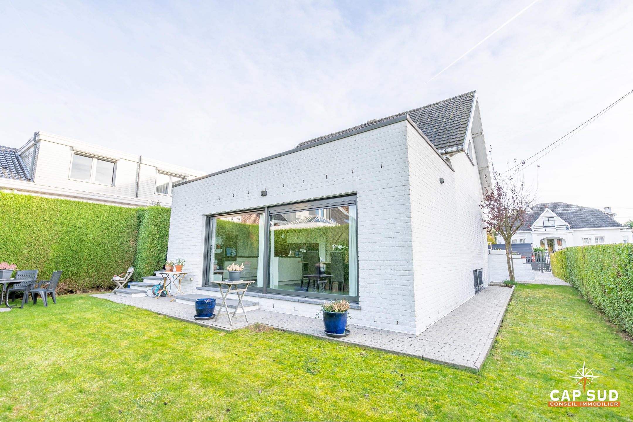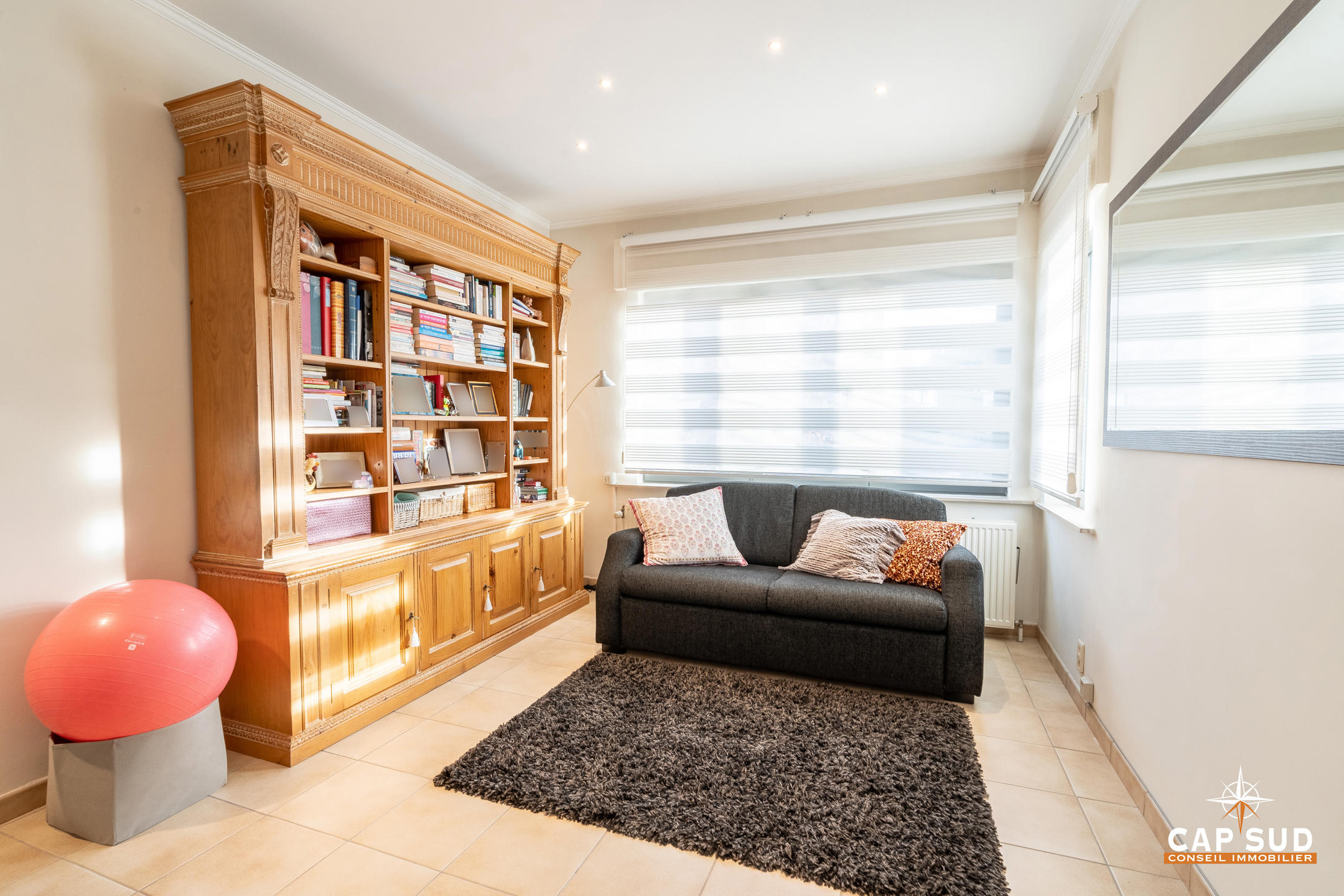 Waterloo – Quartier St Anne, à proximité de toutes facilités (transports, commerces, écoles et grands axes), CAP SUD vous présente cette jolie villa entièrement rénovée de 198m2 sise sur 4,18ares. Au rez, vous trouverez un hall d’entrée avec vestiaire menant au living composé d’un salon de 25m2 et de sa salle à manger de 13m2, une cuisine ouverte entièrement équipée de 12m2, une chambre de 14m2 et un bureau de 7m2. Au 1er, le hall de nuit dessert une chambre de 17m2, une salle de bains complète et un bureau (ou chambre bébé) de 6m2. Accès également à un grenier de rangement. Cette villa bénéficie de 2 terrasses Sud et Est pour un total de 33m2. Toute la villa est sous caves, buanderie et grand garage de 33m2. Porte de garage automatique, volets électriques au rez, portail automatique, luminaires extérieurs, boiler de 150l, visiophone, chaudière Junkers récente (2017), châssis aluminium thermolaqué DV de 2014, toiture végétale…vous l’aurez compris, elle a tout pour vous plaire ! A découvrir rapidement…
