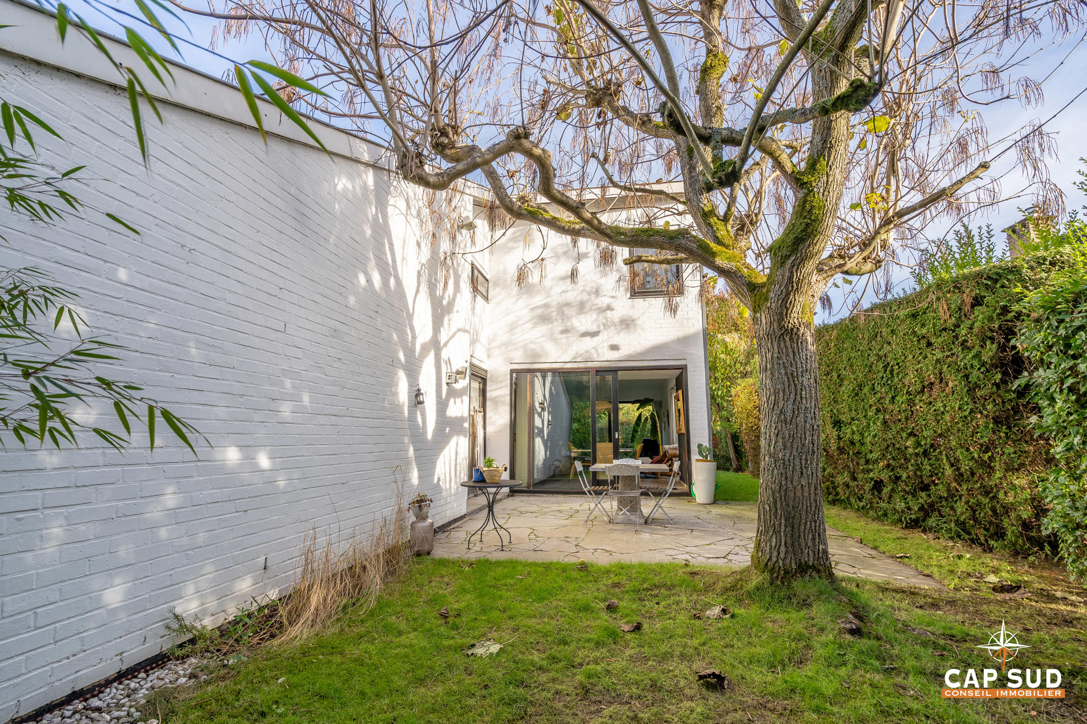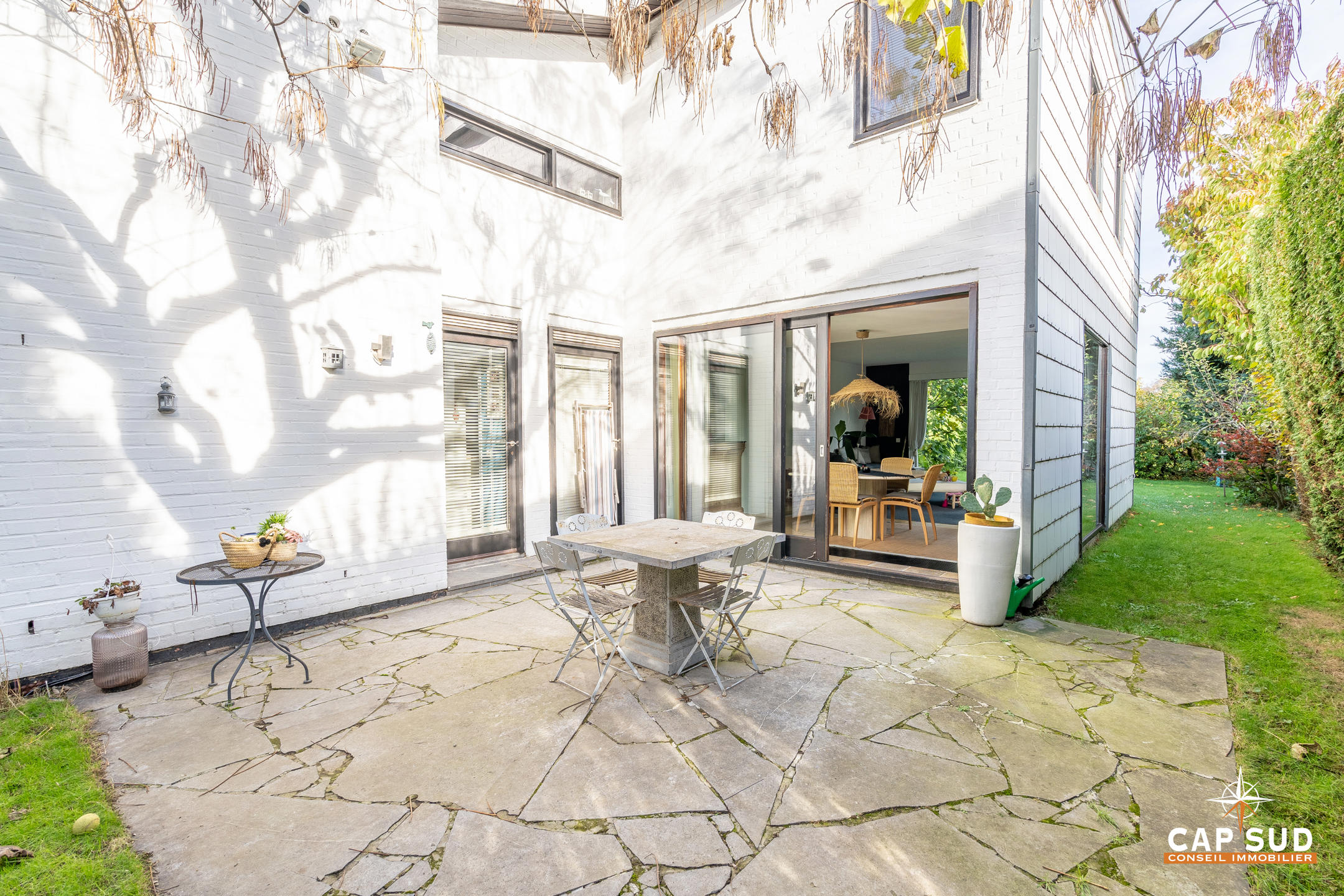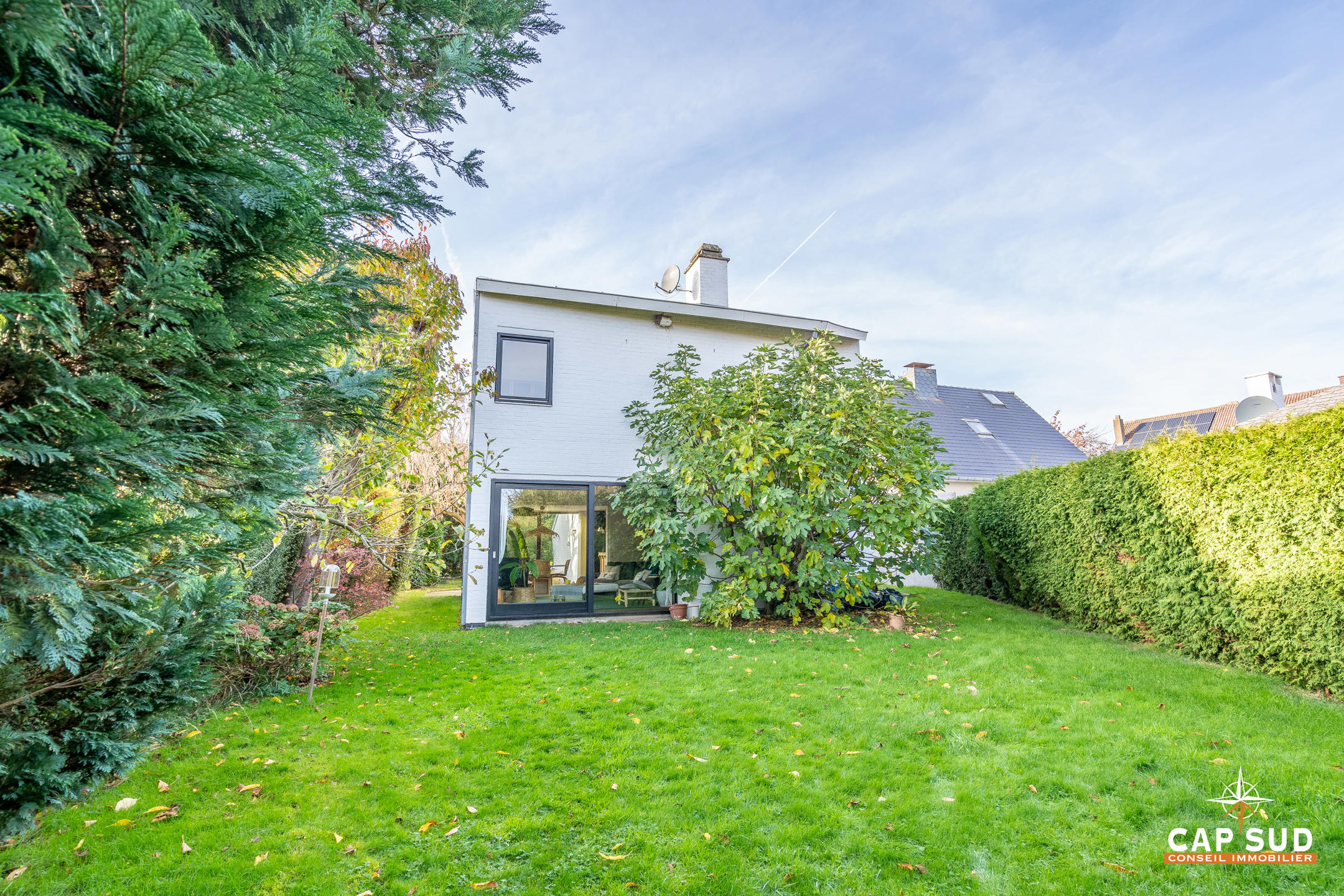 Waterloo – Quartier Centre, dans un clos calme et arboré, CAP SUD vous présente cette villa d’architecte de 196m2 sise sur un terrain sans vis-à-vis de 5,11ares. Au rez, vous trouverez un vaste hall d’entrée de 16m2 avec local WC, un lumineux living de 32m2 avec FO donnant d’une part sur le jardin et d’autre part sur une terrasse de 16m2 Sud, une cuisine équipée de 10m2 et un bureau (ou pièce polyvalente) de 10m2. Au 1er, le hall de nuit dessert 3 belles chambres de 9, 13 et 21m2, une buanderie ainsi qu’une salle de bains complète rénovée. Au 2ème, une salle de jeux ou chambre d’appoint de 16m2 et un grenier de rangement viendront compléter ce bien. Nouvelle chaudière Riello 2022, FO, nouveau boiler, bi-horaire, citerne d’eau de pluie…Vous serez séduits par ce petit coin de verdure à l’abri des regards ! A découvrir rapidement…