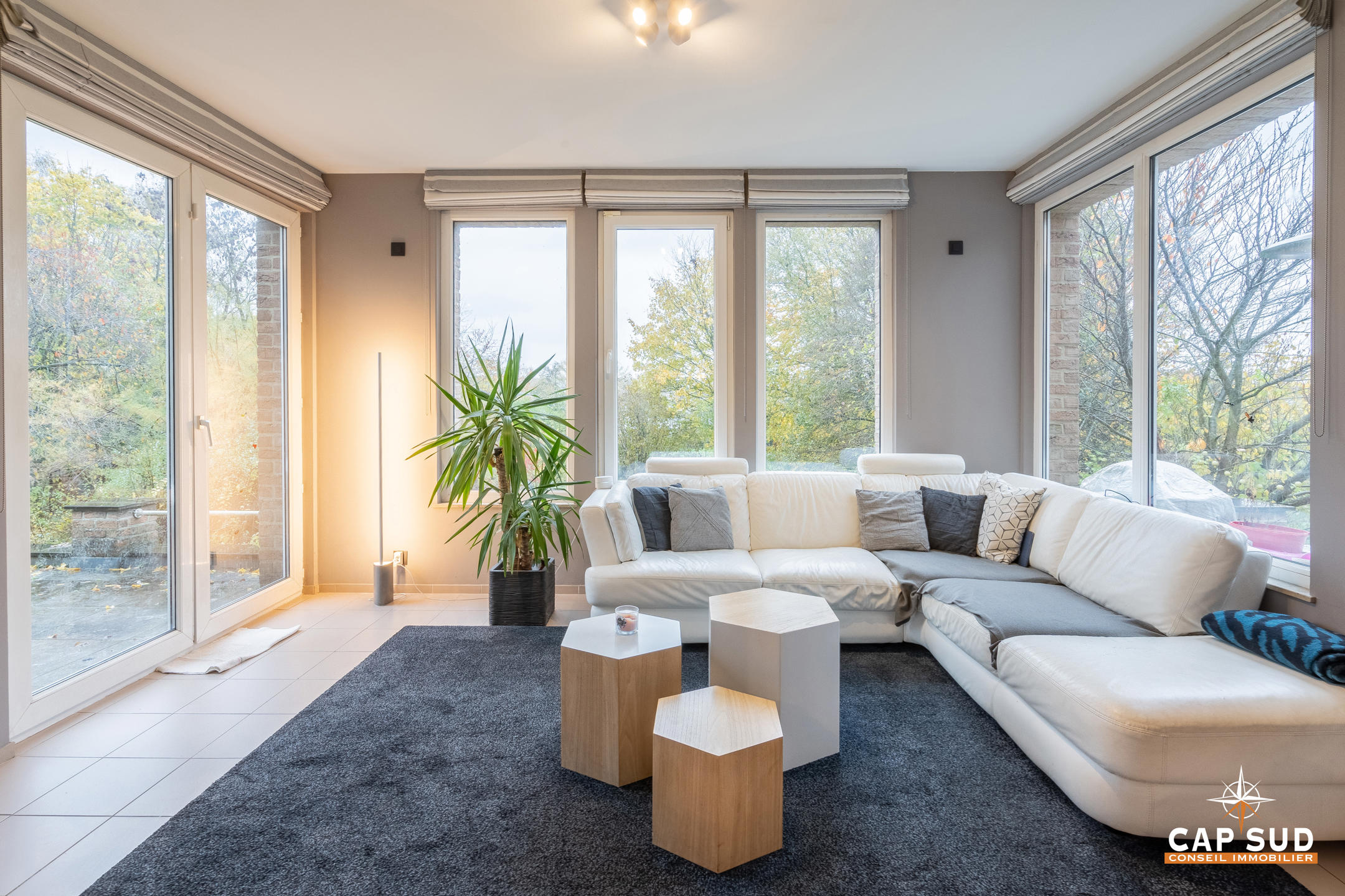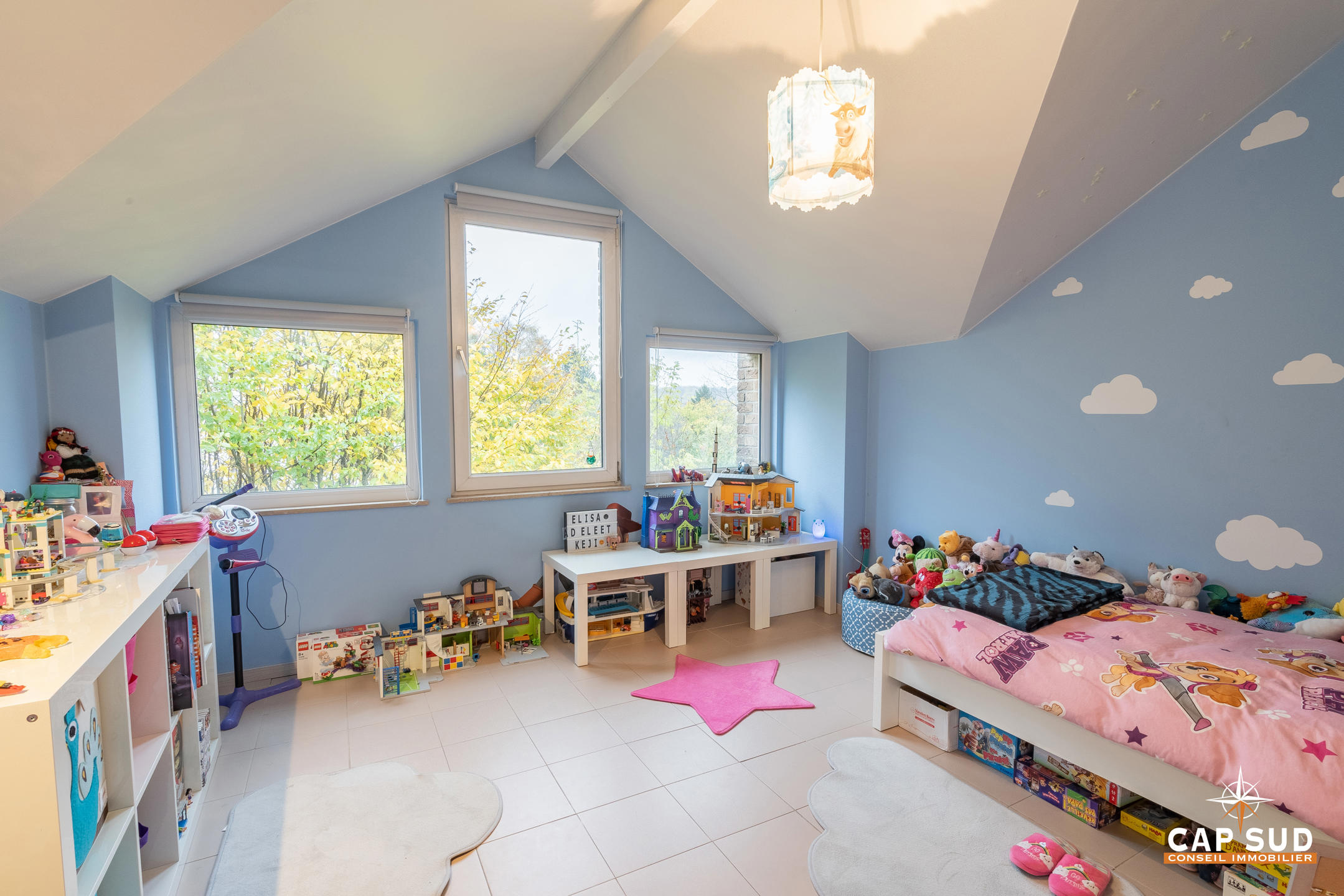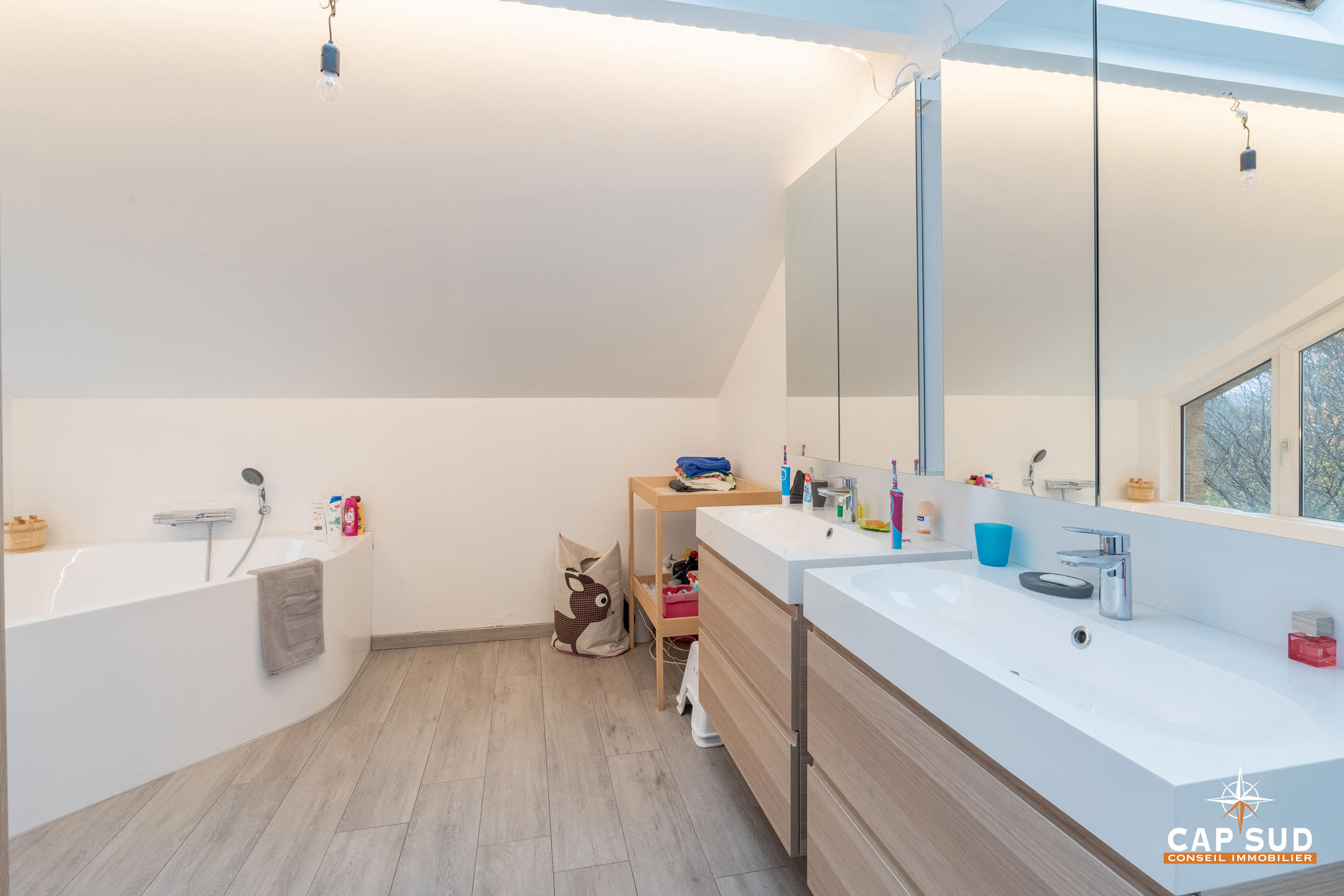 Wauthier-Braine, lumineuse villa de 225m2 habitables ( +-300m2 bruts), salon et SAM avec FO STUV, salon d’hiver, cuisine super-équipée avec coin à déjeuner, 5 chambres, 1 SDB, 1 SDD, 3 WC, buanderie, débarras, 2 garages, pièce pour cinéma, sport ou 6ème chambre, cave, vide ventilé, 2 espaces de rangement sous la maison de 20m2 chacun. Beau jardin arboré, 3 terrasses, chauffage gaz au sol(chaudière 2016), double vitrage PVC, cabane de jardin. RC: 2.022€, libre en fonction du propriétaire, PEB C 204kWh/m2/an réf: 20161124008134