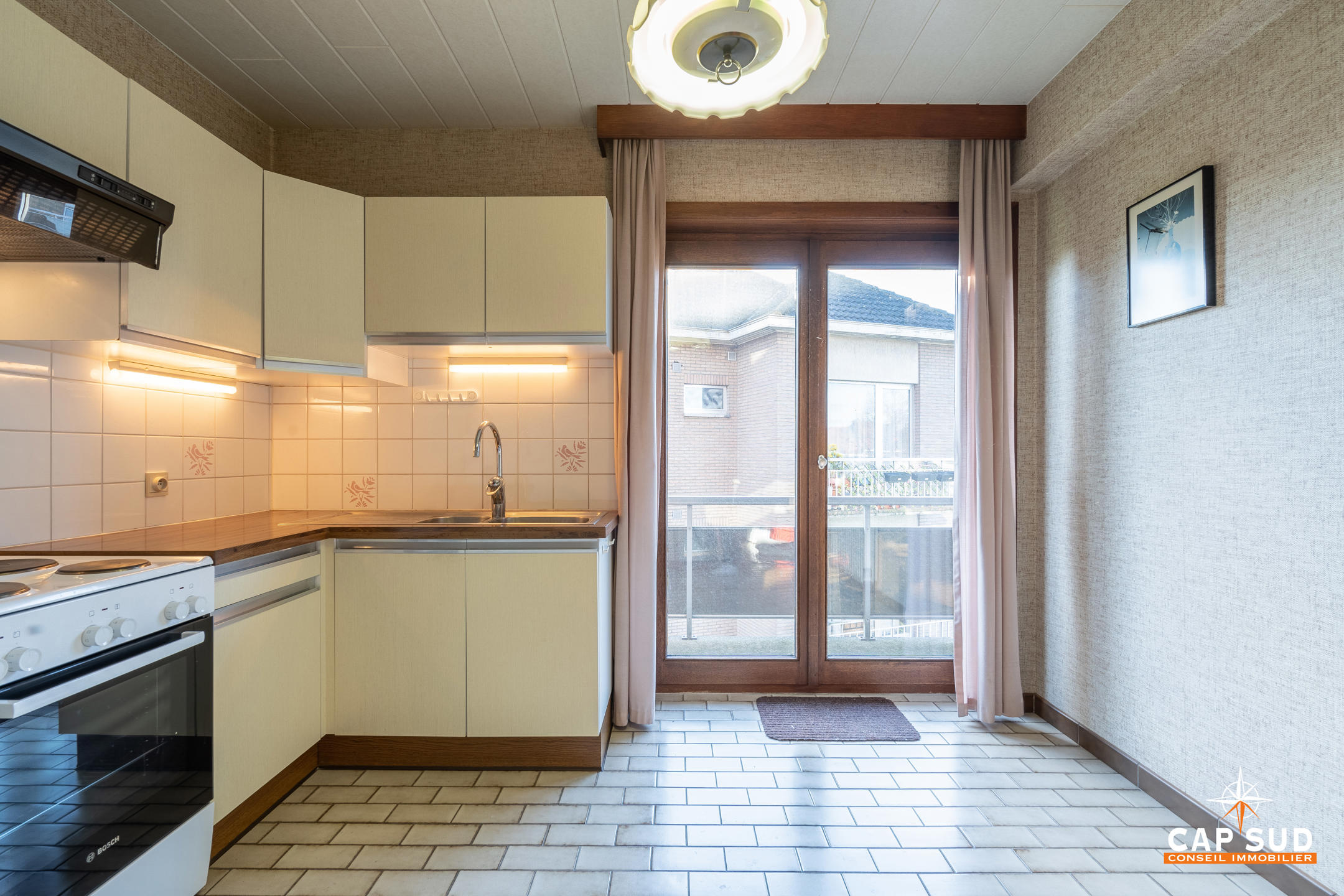 La vente de l’appartement comprend un garage fermé en sous-sol ainsi qu’une cave. PEB en cours