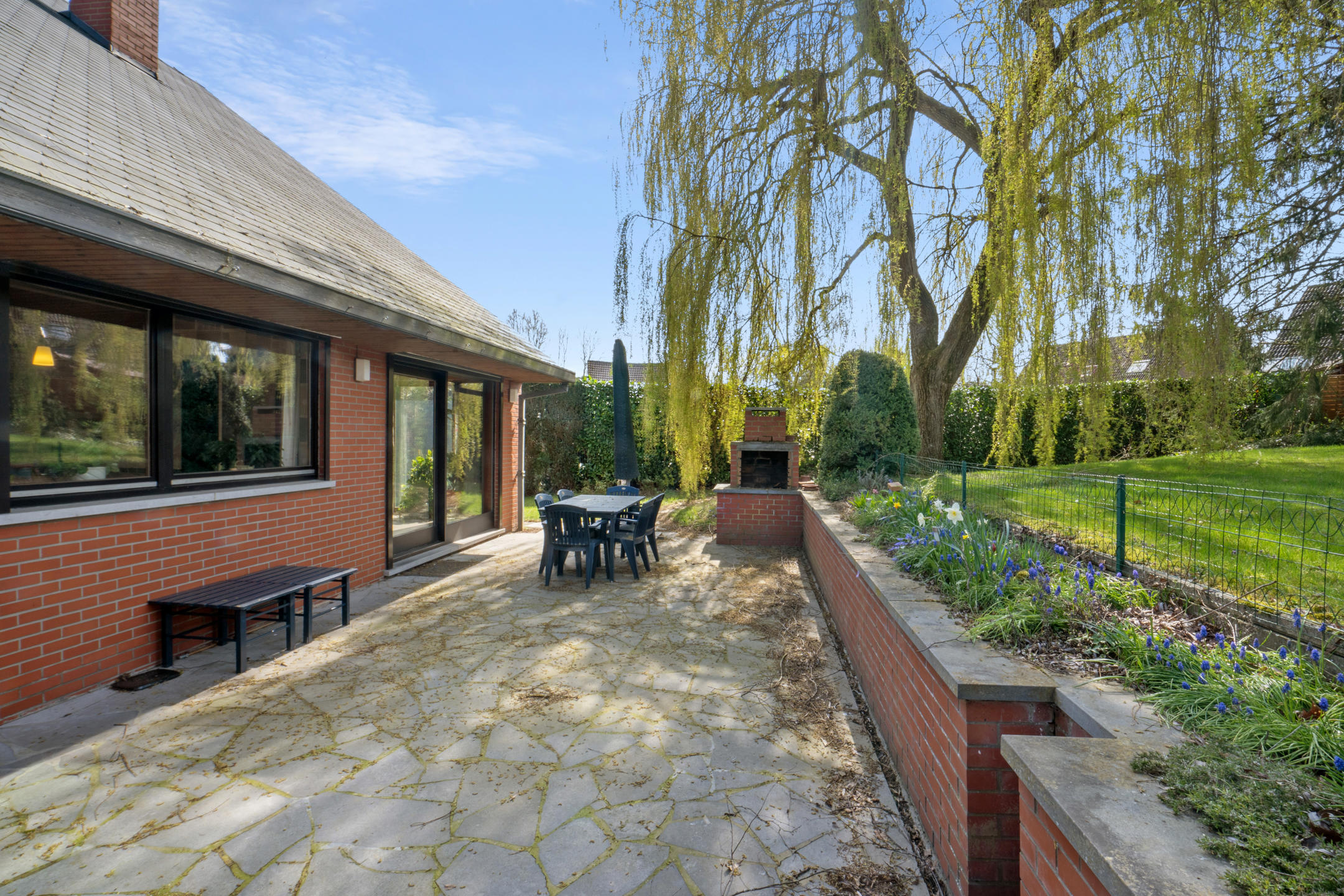 Elle se compose d’un hall d’entrée, d’un WC, d’un beau séjour avec feu ouvert, d’une salle à manger, d’une cuisine équipée avec coin repas, de trois chambres (possibilité 5 chambres + bureau) et d’une salle de bain avec WC.