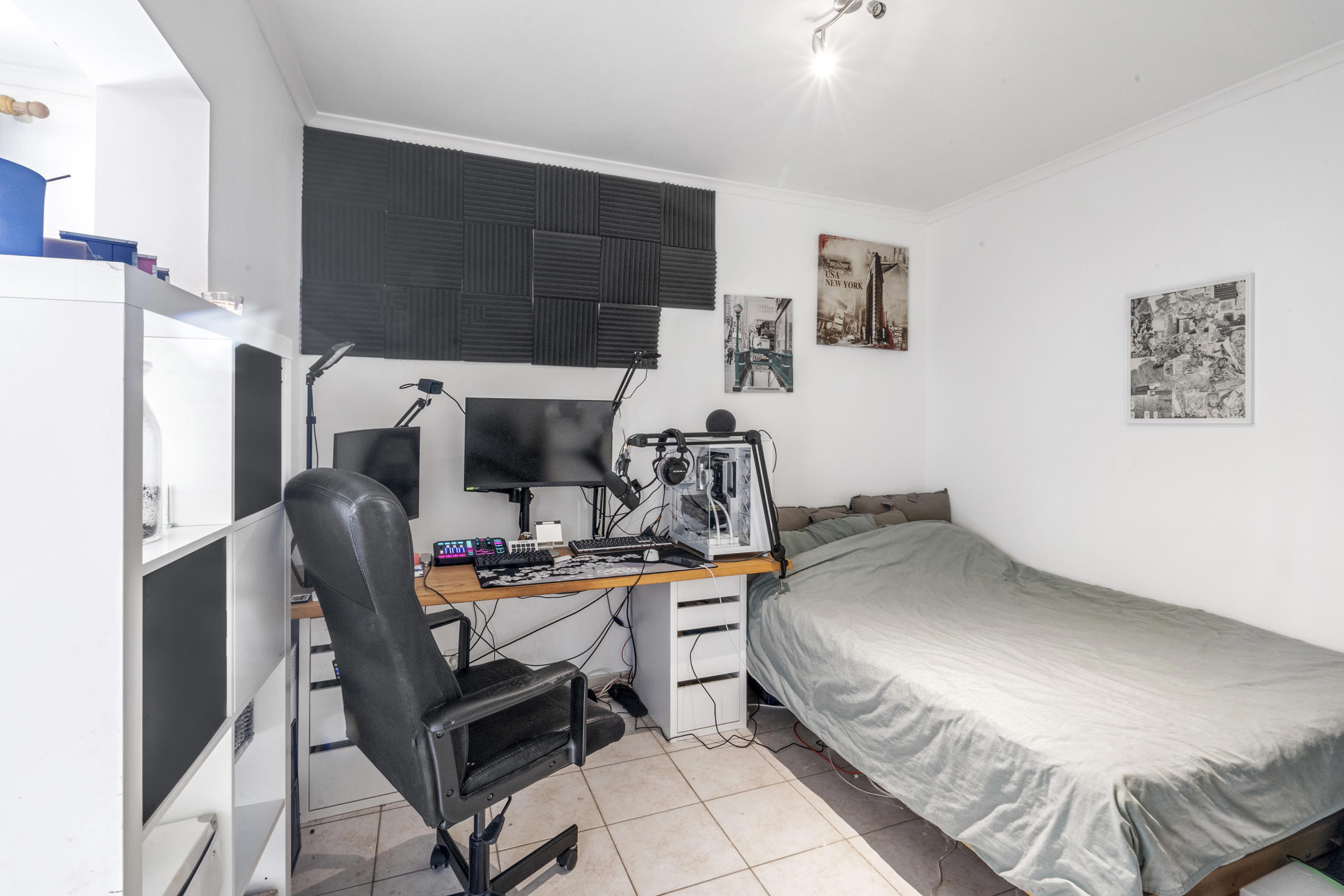 Il se compose d’un salon avec cuisine équipée ouverte, d’un espace chambre, d’une salle de bains et d’un débarras idéal pour y installer une machine à laver.