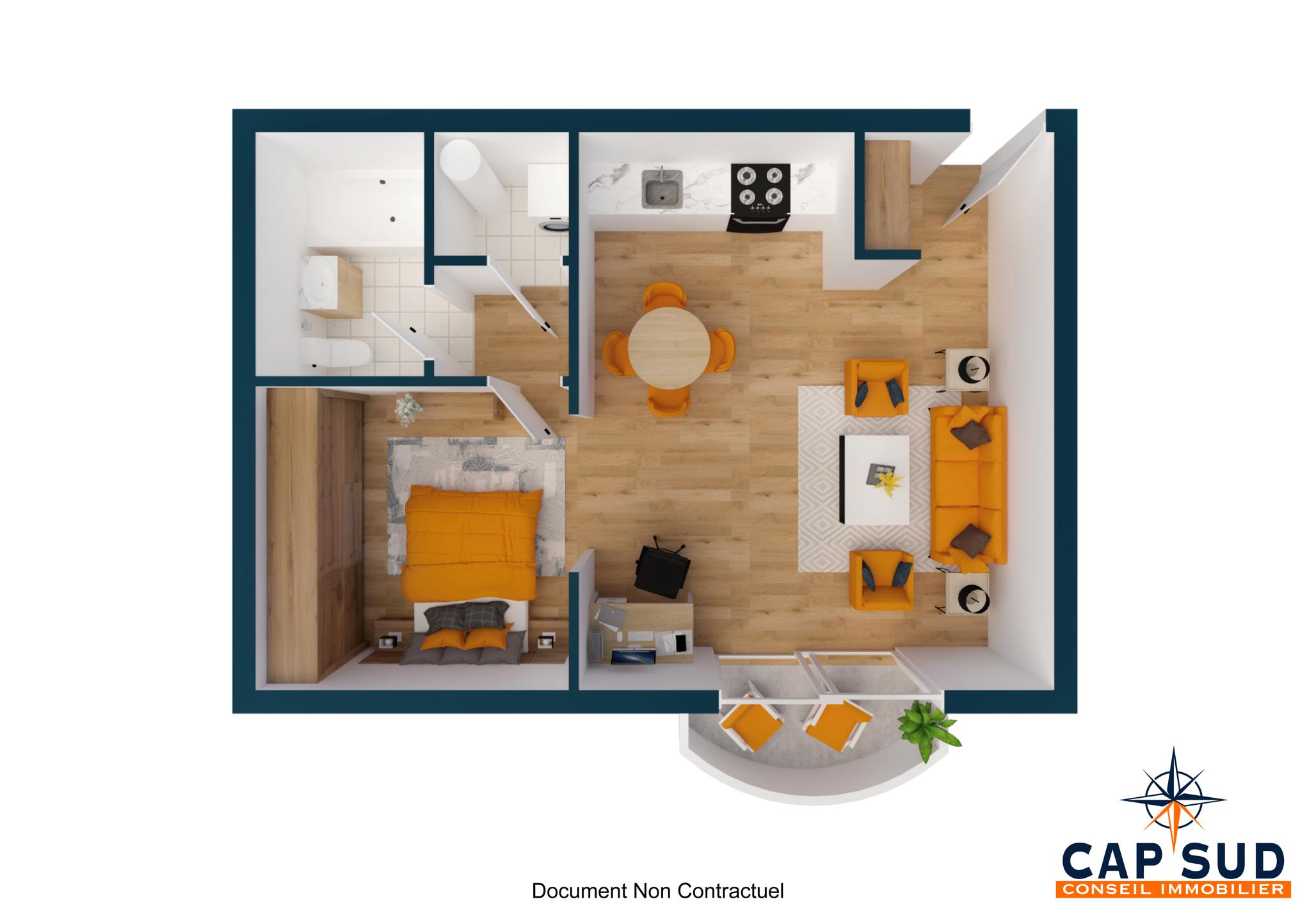 Au premier étage de celui-ci, Cap Sud a le plaisir de vous proposer ce confortable studio de 54 m² actuellement loué.