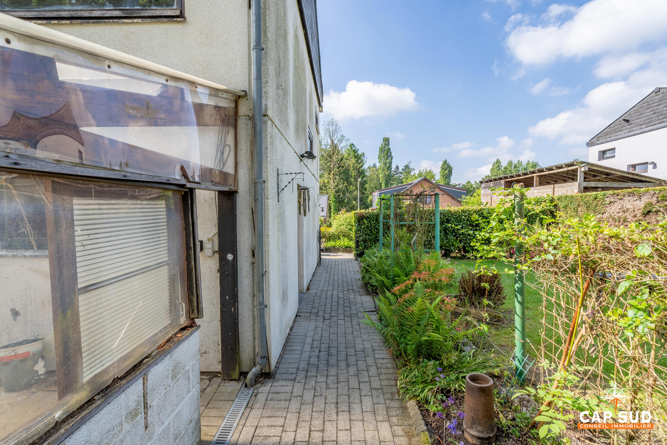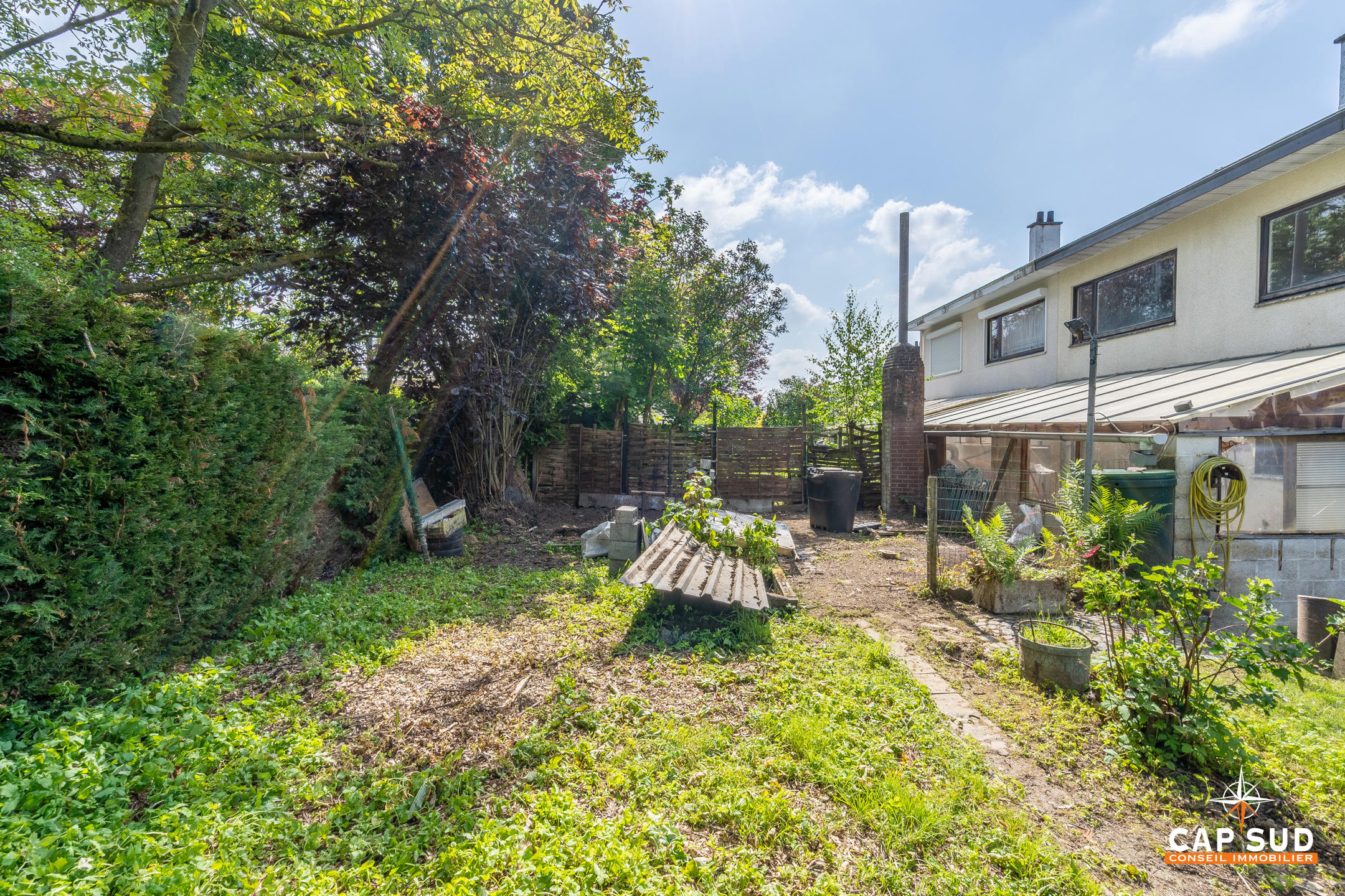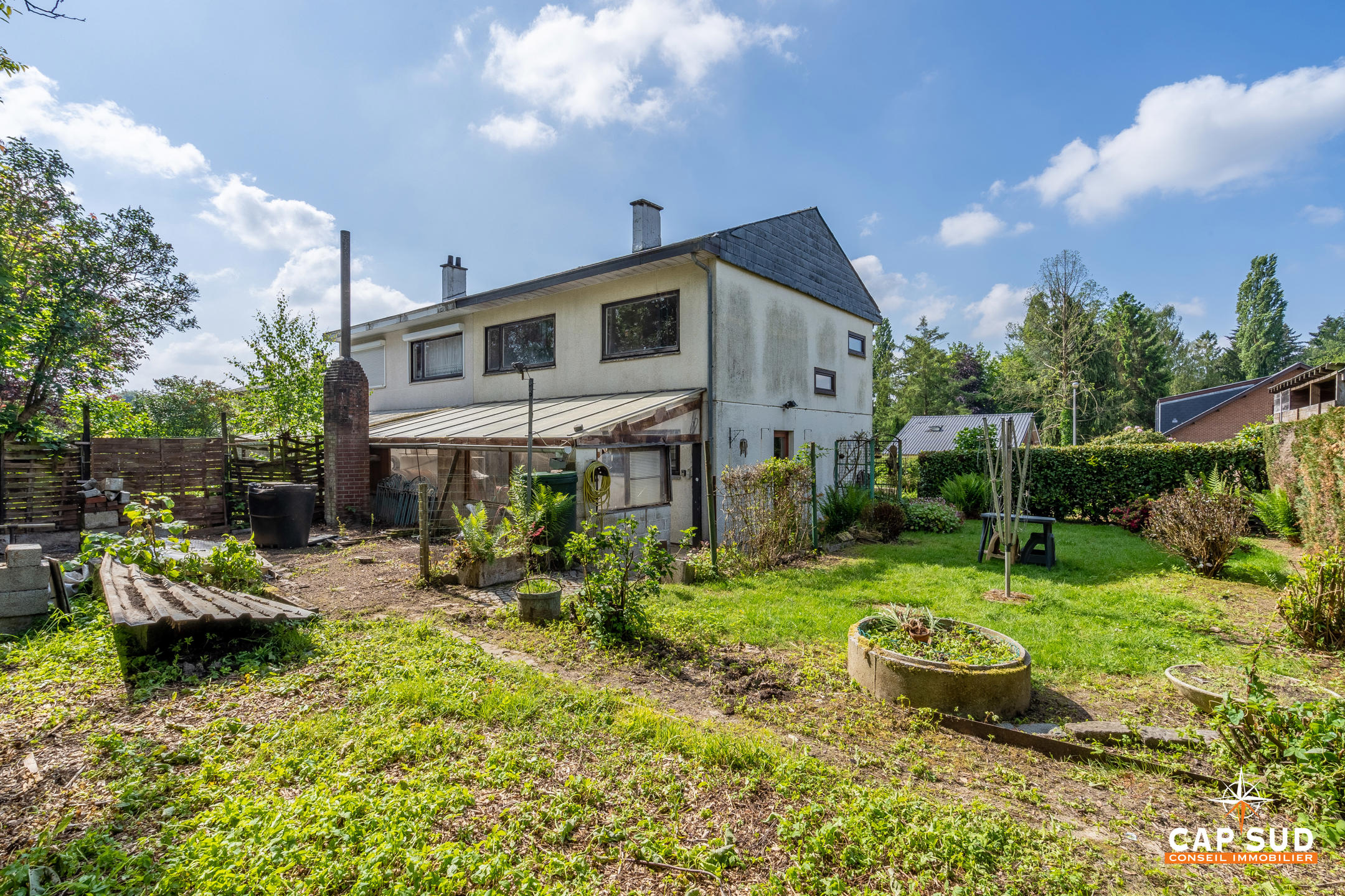 SOUS-OPTION…. Merci aux propriétaires pour leur confiance… Waterloo – Faubourg, dans un quartier prisé, calme et arboré, et à proximité de toutes facilités, Cap Sud vous propose cette maison 3 façades A RENOVER de 166m2 sise sur un terrain de 5,03ares. Vous trouverez au rez, un vaste hall d’entrée, un lumineux living de 26m2 et une cuisine donnant sur le jardin. Au 1er, le hall de nuit dessert 3 chambres de 10, 11 et 15m2 ainsi que qu’une salle de bains complète. Accès à un grenier de rangement. Au sous-sol, un local de chauffe, une cave et un garage 1 voiture. Atelier de 20m2 donnant sur le jardin et un parking 1 voiture. A vos projets !