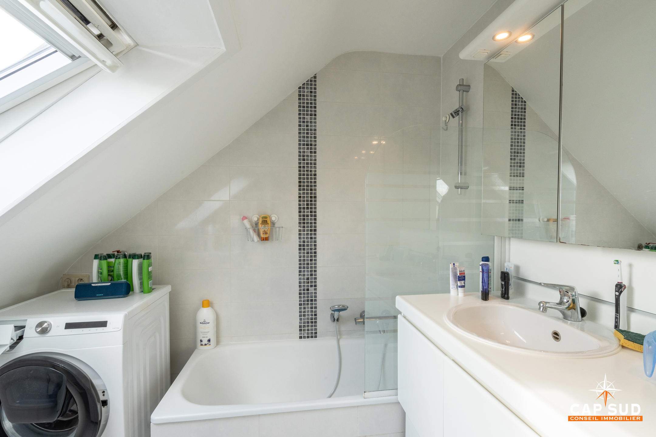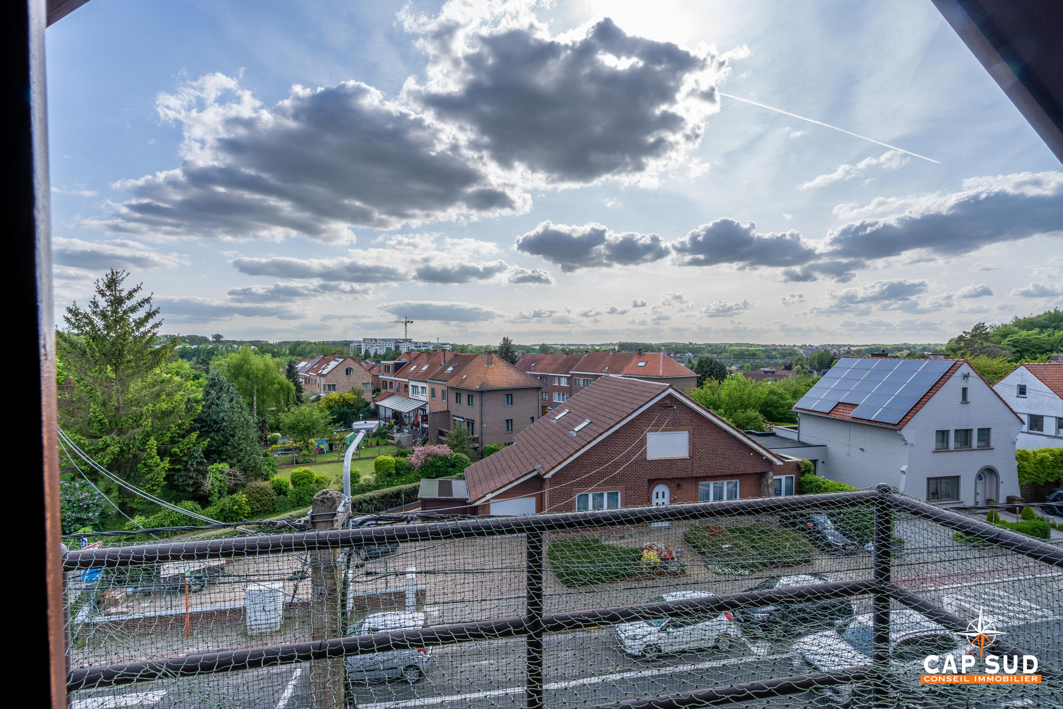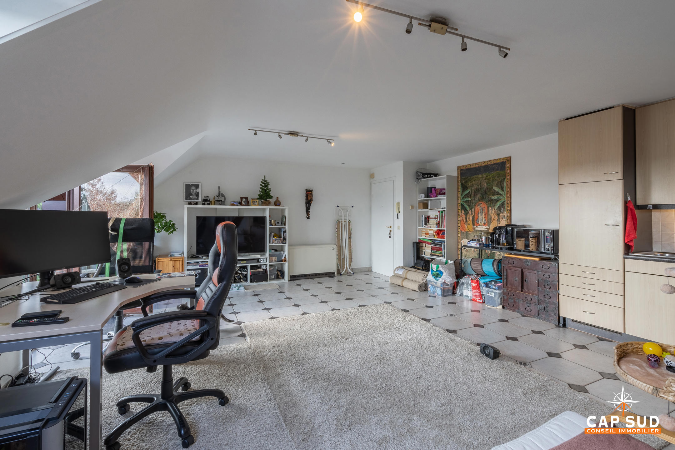 SOUS-OPTION…. Merci aux propriétaires pour leur confiance… Braine-l’Alleud – Dans une petite résidence bien entretenue et à proximité immédiate de toutes facilités (transports, commerces, écoles et grands axes), CAP SUD vous propose ce magnifique Duplex-Penthouse (3ème et 4ème étage) de 87m2 comprenant un vaste et lumineux living de plus de 40m2 avec cuisine équipée et terrasse Sud. A l’étage, vous trouverez en enfilade un bureau/dressing (ou chambre d’appoint) menant à la chambre principale et à une salle de bains complète. Nouveaux Velux avec volet électrique, porte blindée, électricité CONFORME, charges communes : +-150€/mois. PARKING intérieur privé (1 voiture) compris dans le prix. Vue panoramique IMPRENABLE…A découvrir sans tarder !