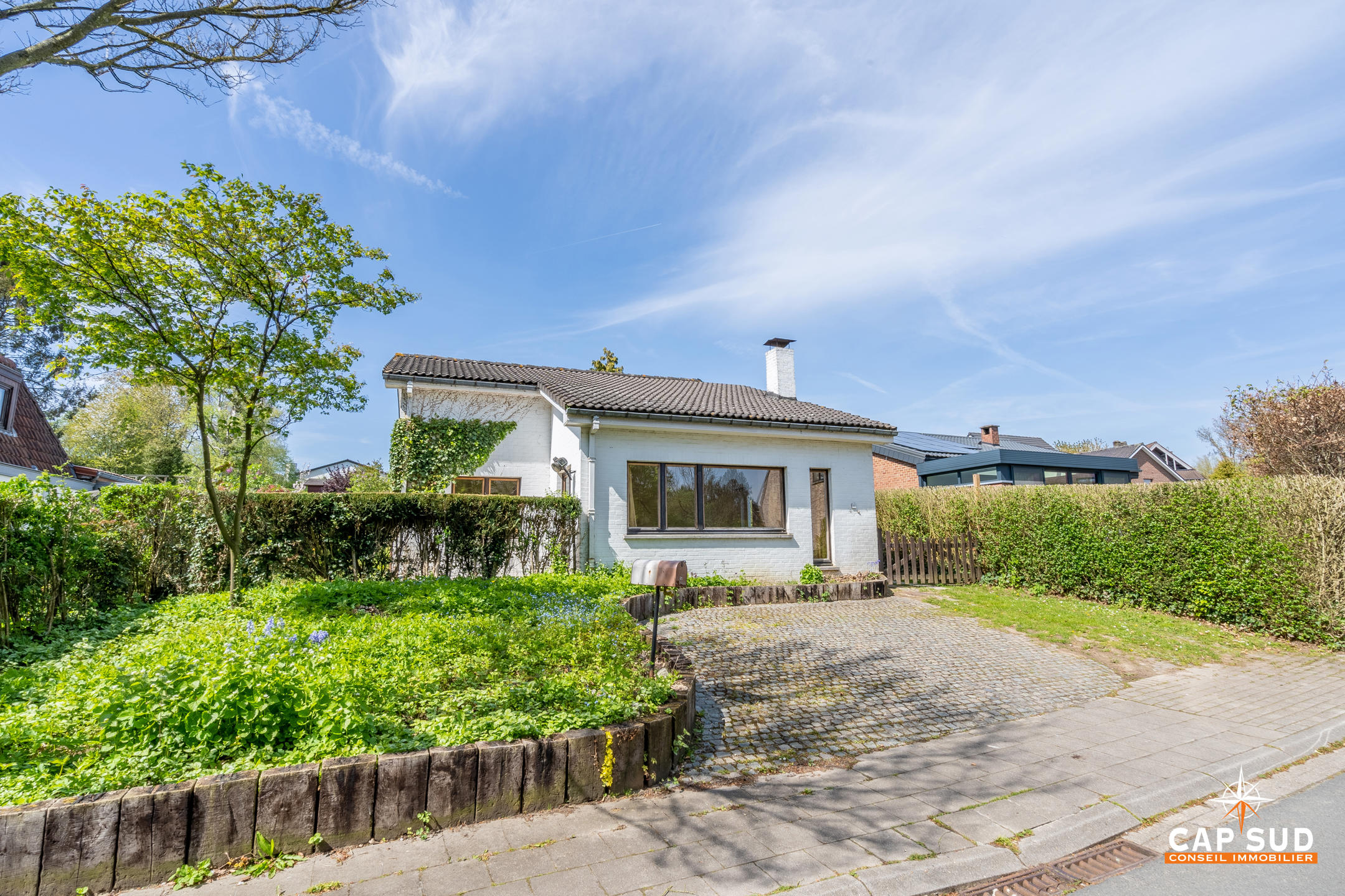 SOUS-OPTION…Merci aux propriétaires pour leur confiance… Waterloo – Chenois, dans un quartier calme, arboré et à proximité de toutes facilités, CAP SUD vous présente cette jolie villa de 160m2 A RENOVER sise sur un terrain de 4,37ares. HABITABLE DE PLAIN PIED, elle se compose au rez d’un hall d’entrée menant à un lumineux living de 32m2 avec feu ouvert, une cuisine équipée de 10m2, une chambre de 13m2, une salle de bains (comprenant lavabo et baignoire), un espace bureau de 7m2, un atelier ou pièce polyvalente de 19m2 avec son espace buanderie et chaufferie. Au 1er, vous trouverez 2 chambres de 13 et 16m2 avec placards et 2 greniers de rangement. Terrasse Sud, 2 parkings ext, jardin arrière sans vis-à-vis. PEB F. FAIRE OFFRE A PARTIR DE 350.000€… Venez la découvrir rapidement..