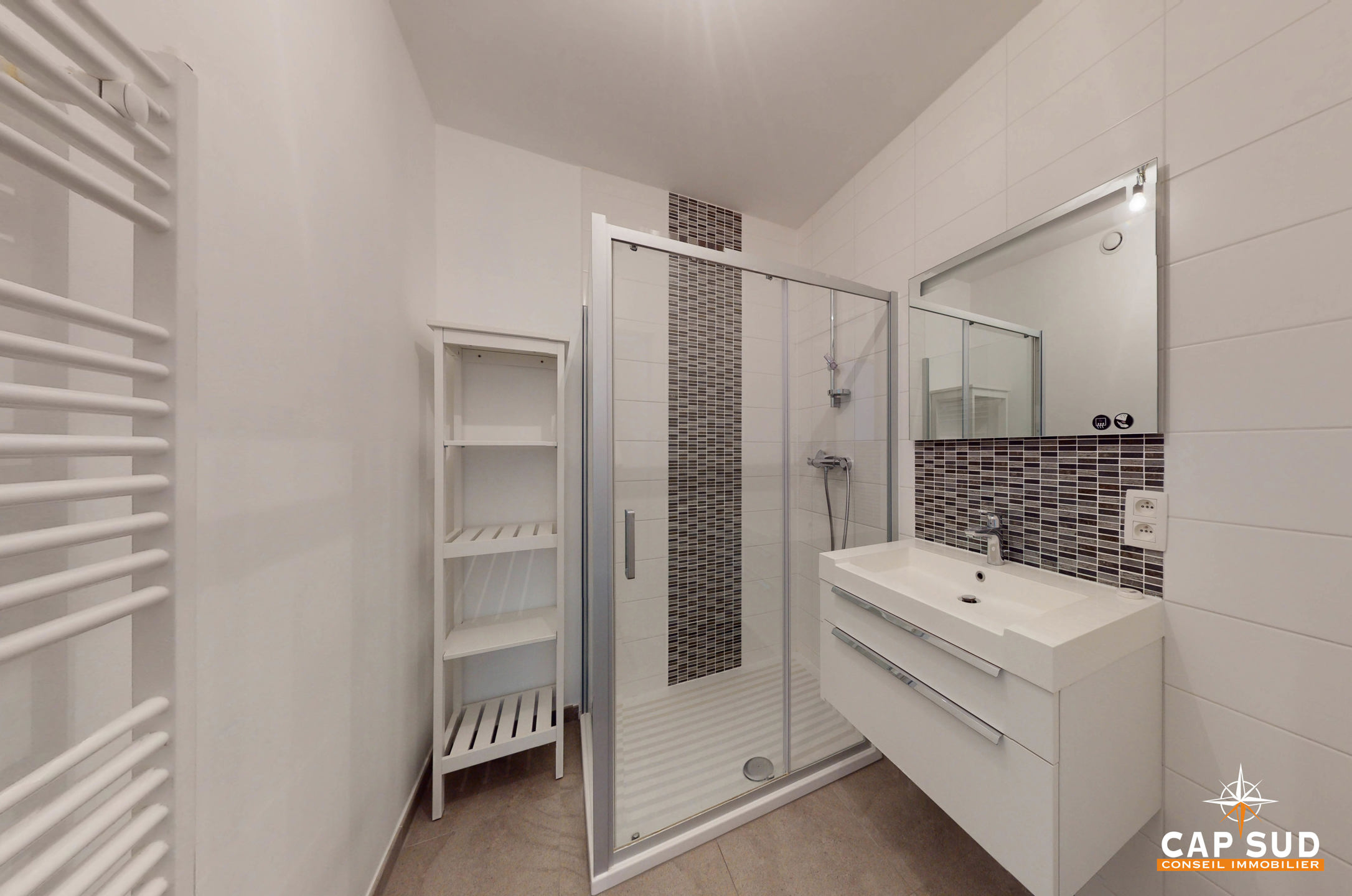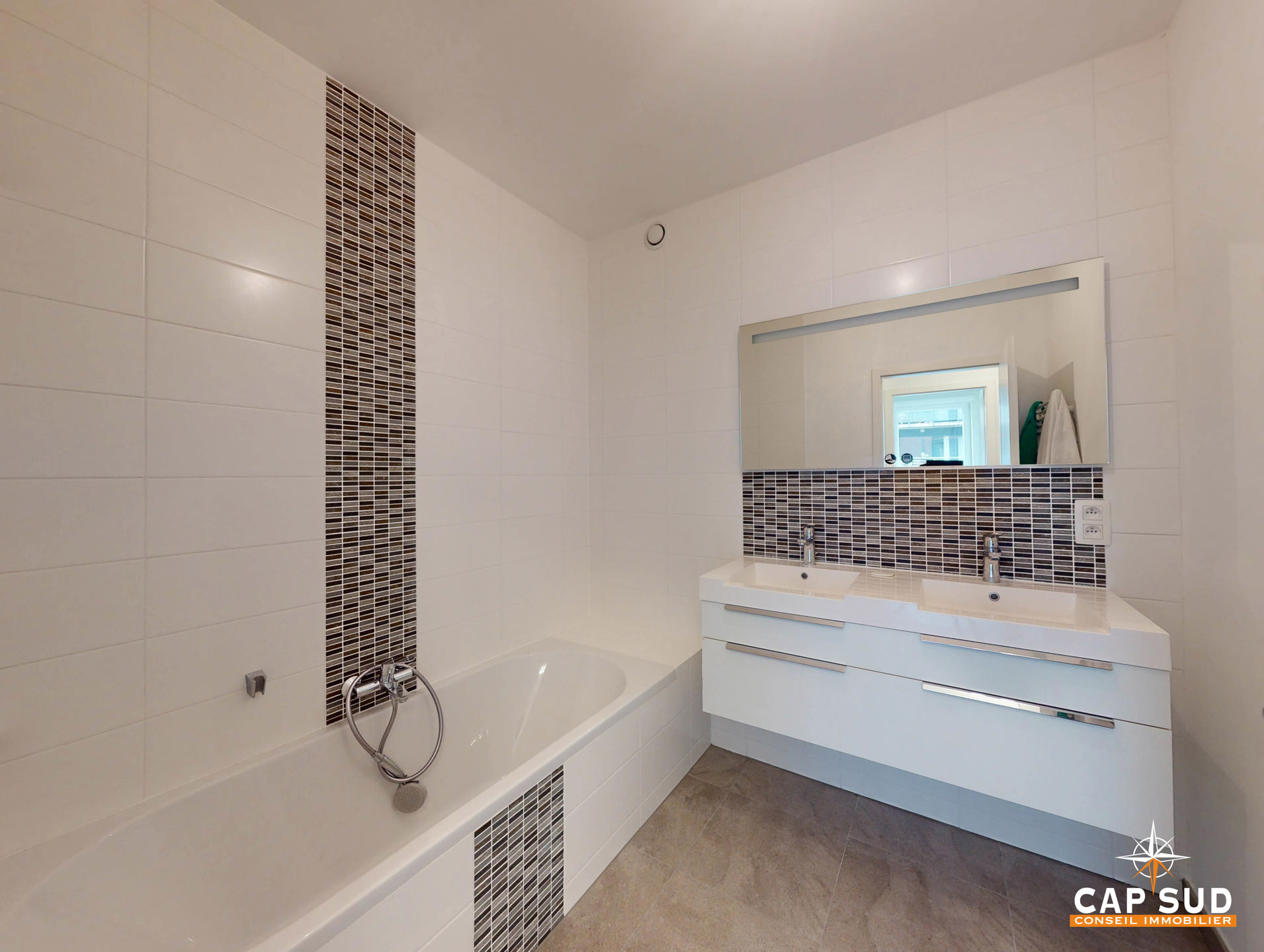 La porte d’entrée blindée assure votre sécurité. L’espace-nuit est constitué d’un hall, de trois chambres dont une suite parentale avec salle de douche et dressing, d’un WC et d’une salle de bains assurant confort et intimité à tous les occupants. Profitez de la commodité d’une cuisine entièrement équipée, d’une arrière-cuisine dotée d’un congélateur et de rayonnages ainsi que d’une buanderie.