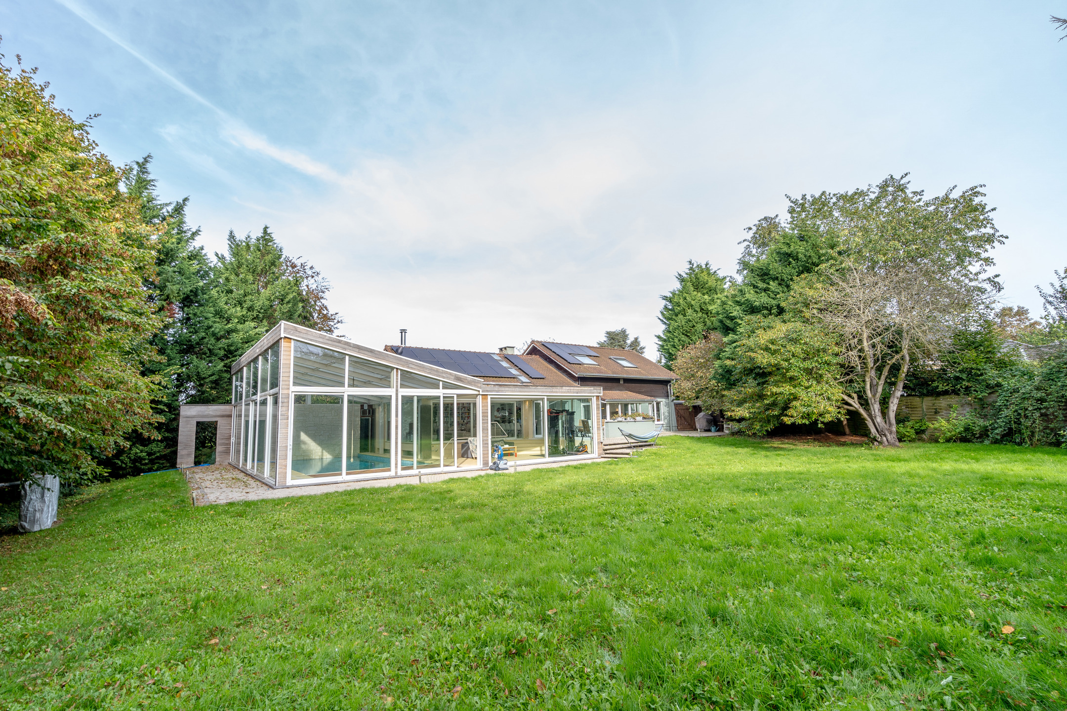 SOUS-OPTION…Merci aux propriétaires pour leur confiance… Waterloo – Quartier Faubourg (limite Rhode-St-Genèse), dans un clos calme et arboré, à l’abri des regards, CAP SUD vous présente cette jolie villa atypique de 380m2 sise sur un terrain de 15,97ares orienté Sud. HABITABLE DE PLAIN-PIED, elle se compose au rez-de-chaussée d’un hall d’entrée avec ses commodités, un lumineux living de plus de 60m2 donnant sur le jardin et une piscine intérieure, une cuisine équipée très fonctionnelle de 20m2, une Master Bedroom de 21m2 avec dressing et salle de bains complète (double lavabo, wc, baignoire et douche XL). A l’étage, le hall de nuit dessert 2 chambres de 16m2, une salle de bains (douche, lavabo et baignoire) ainsi qu’un local wc privatif. En demi sous-sol, vous trouverez également une grande chambre de 33m2 avec sa salle de douche et dressing. Au sous-sol, côté rue, se trouve une cave/buanderie de 19m2 et, côté piscine, un espace sauna qui viendra compléter ce bien ainsi qu’un tout nouveau local technique. Airco, pompe à chaleur, adoucisseur, boiler 200l, vidéophone, nouvelle chaudière, grande piscine intérieure chauffée, portail automatique, ELECTRICITE CONFORME, PEB C : 237kWh/an. Venez la découvrir rapidement !