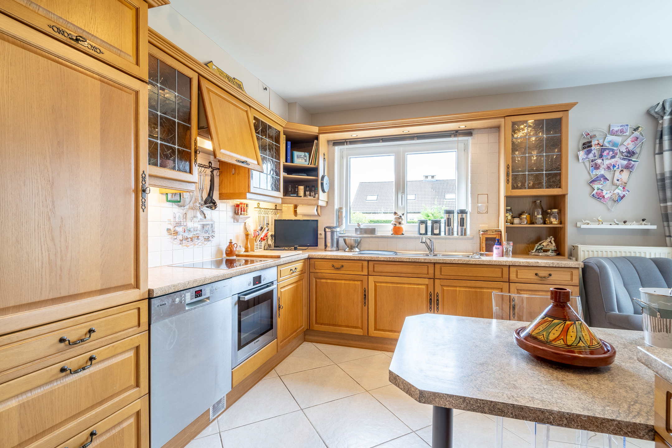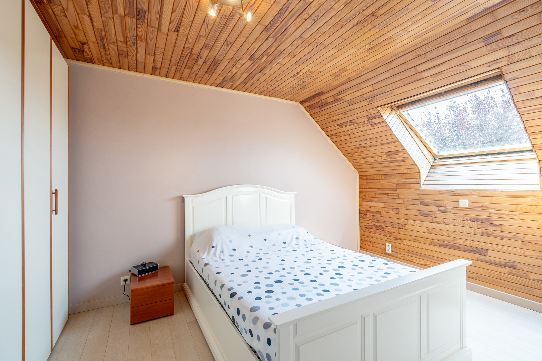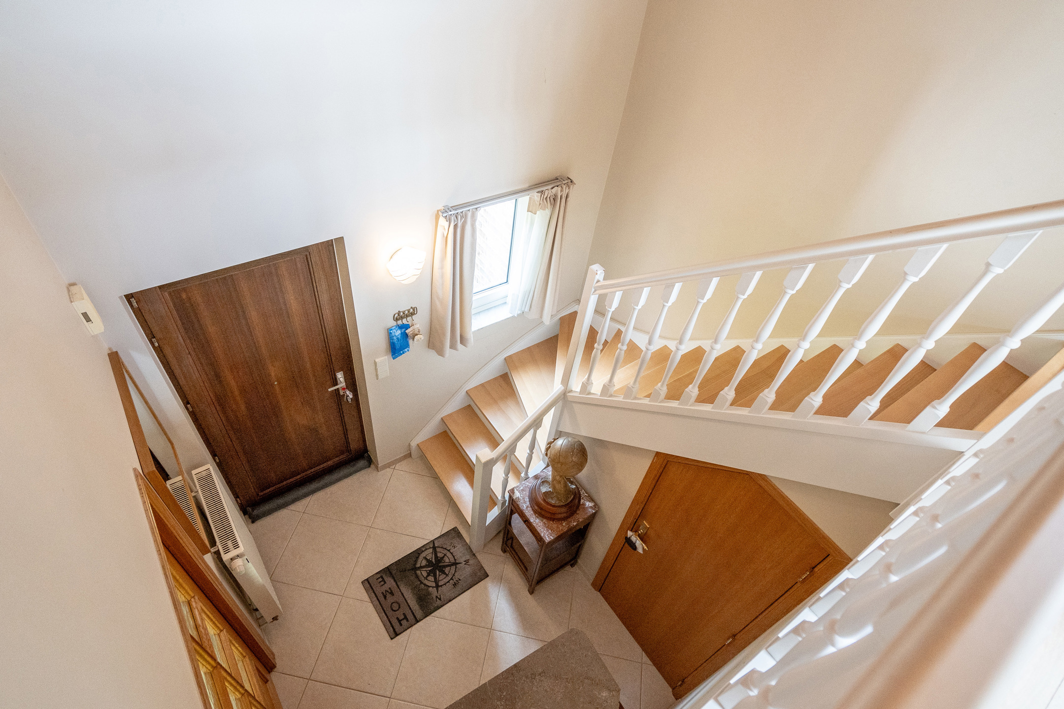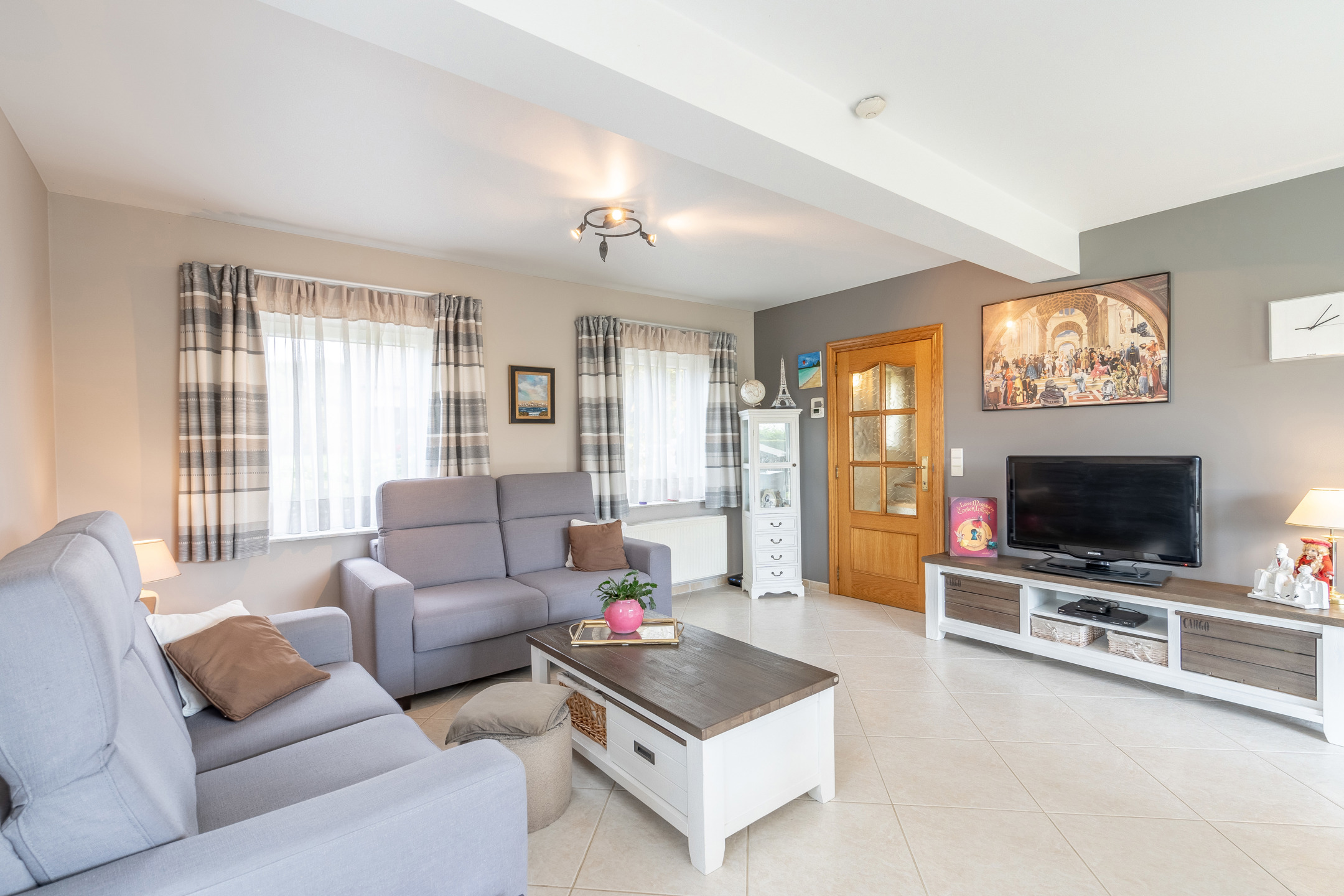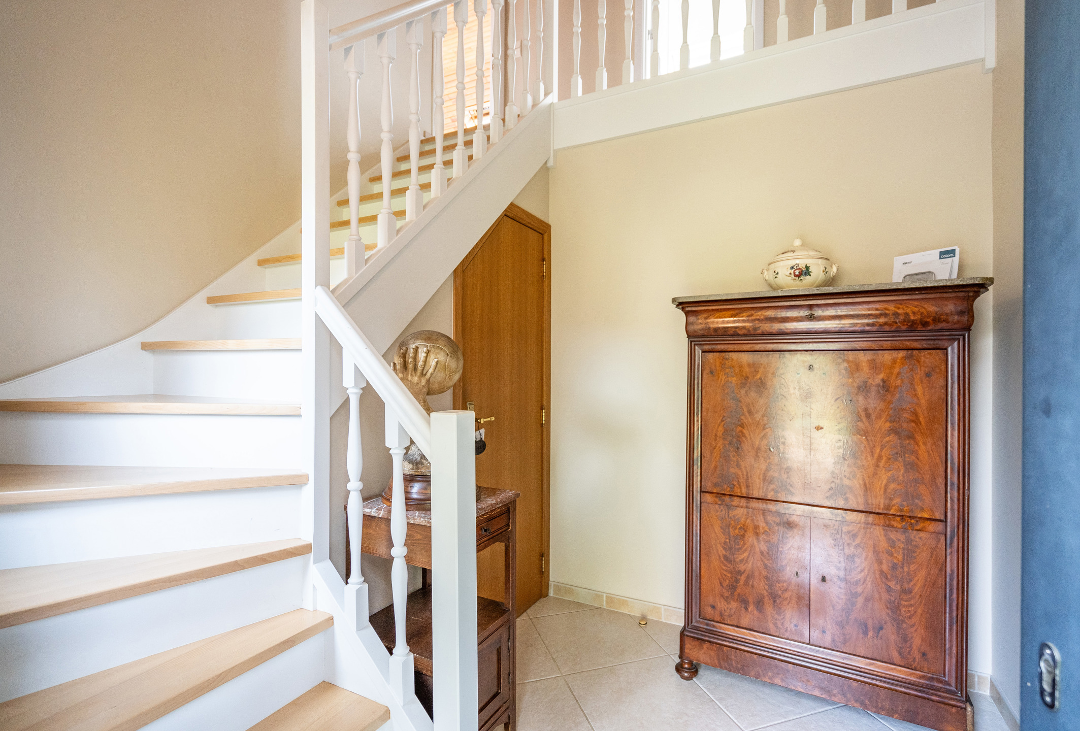 Au rez-de-chaussée, vous trouverez un hall d’entrée, un WC séparé, un living de 32m², une cuisine américaine de 12m², donnant sur la terrasse/jardin. Un garage et une buanderie/chaufferie.