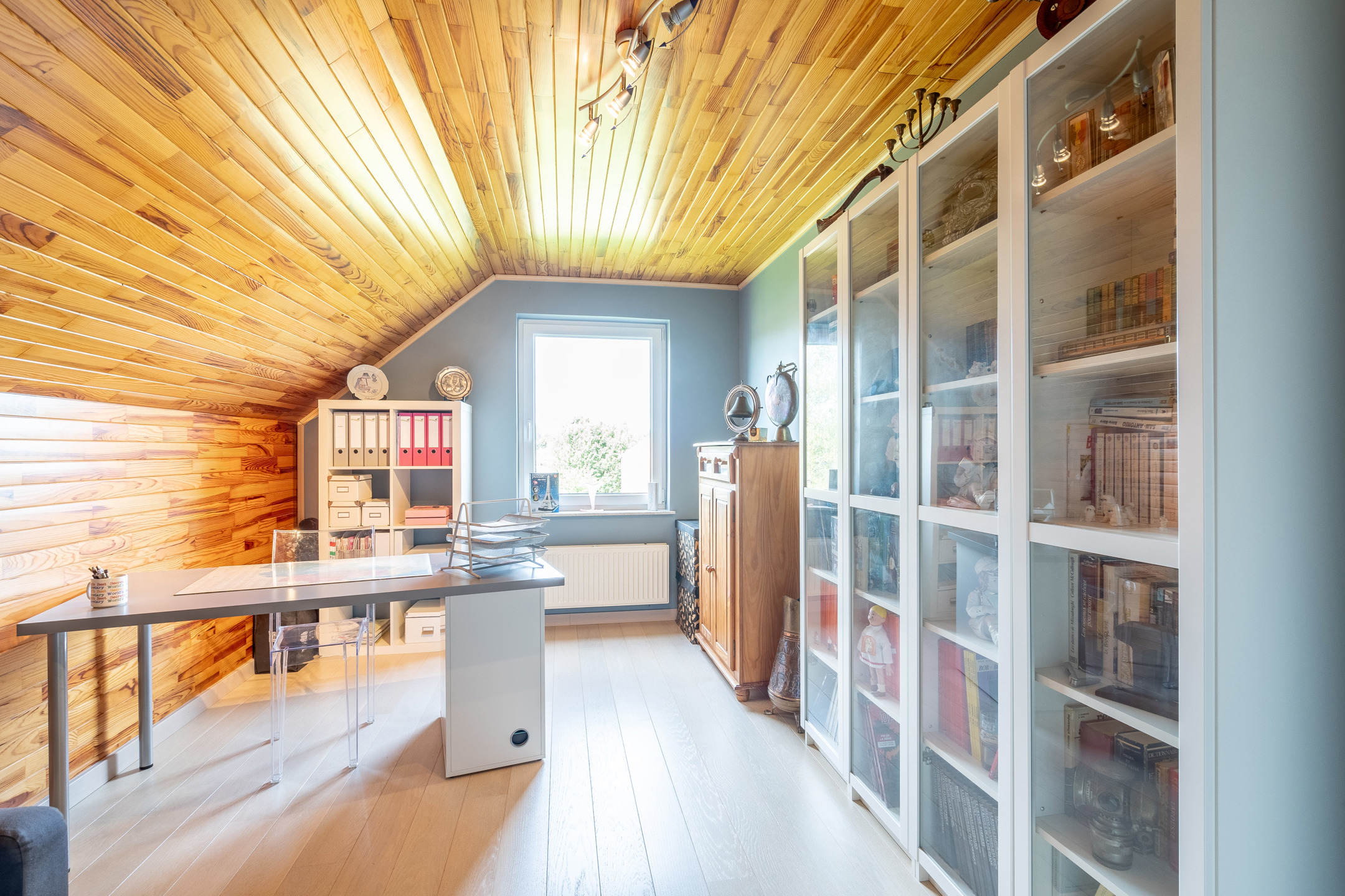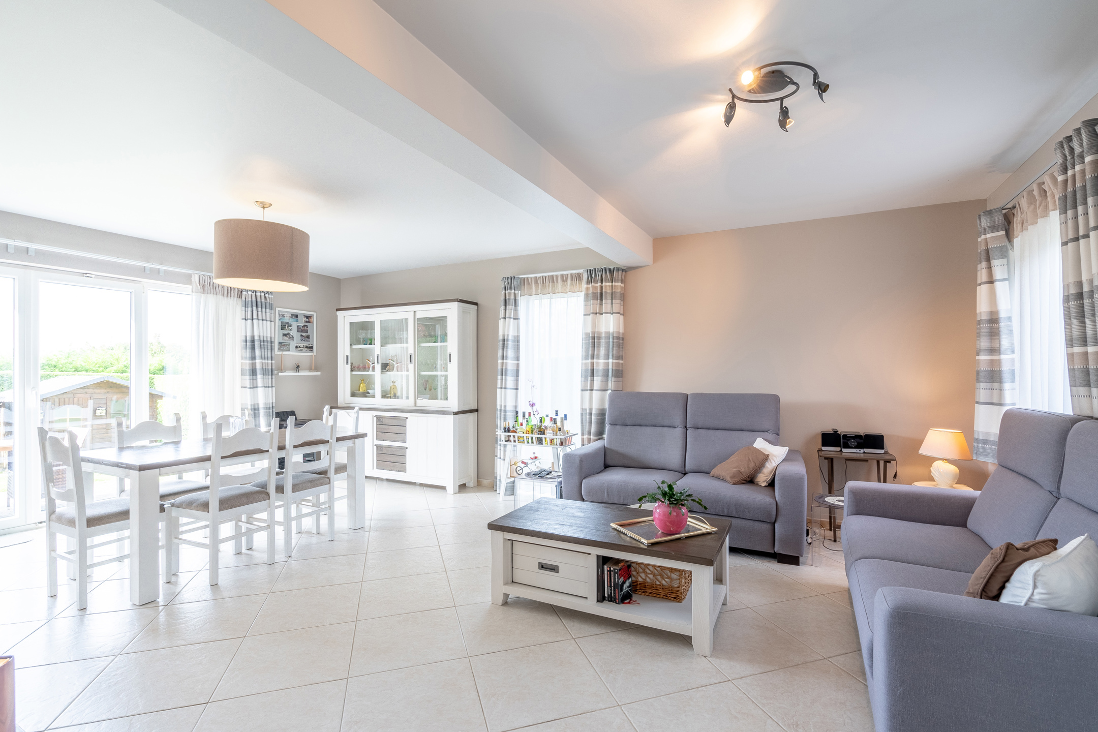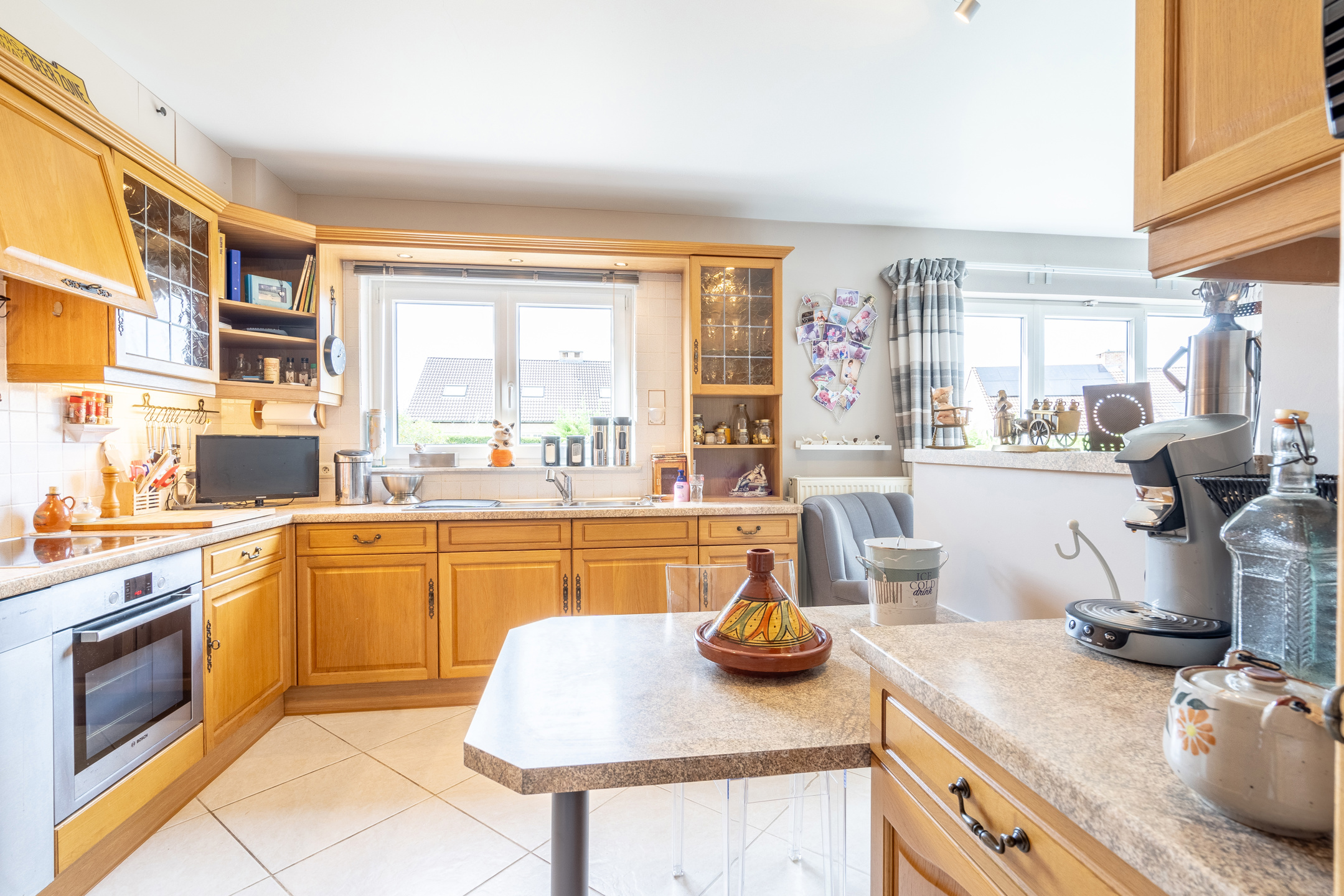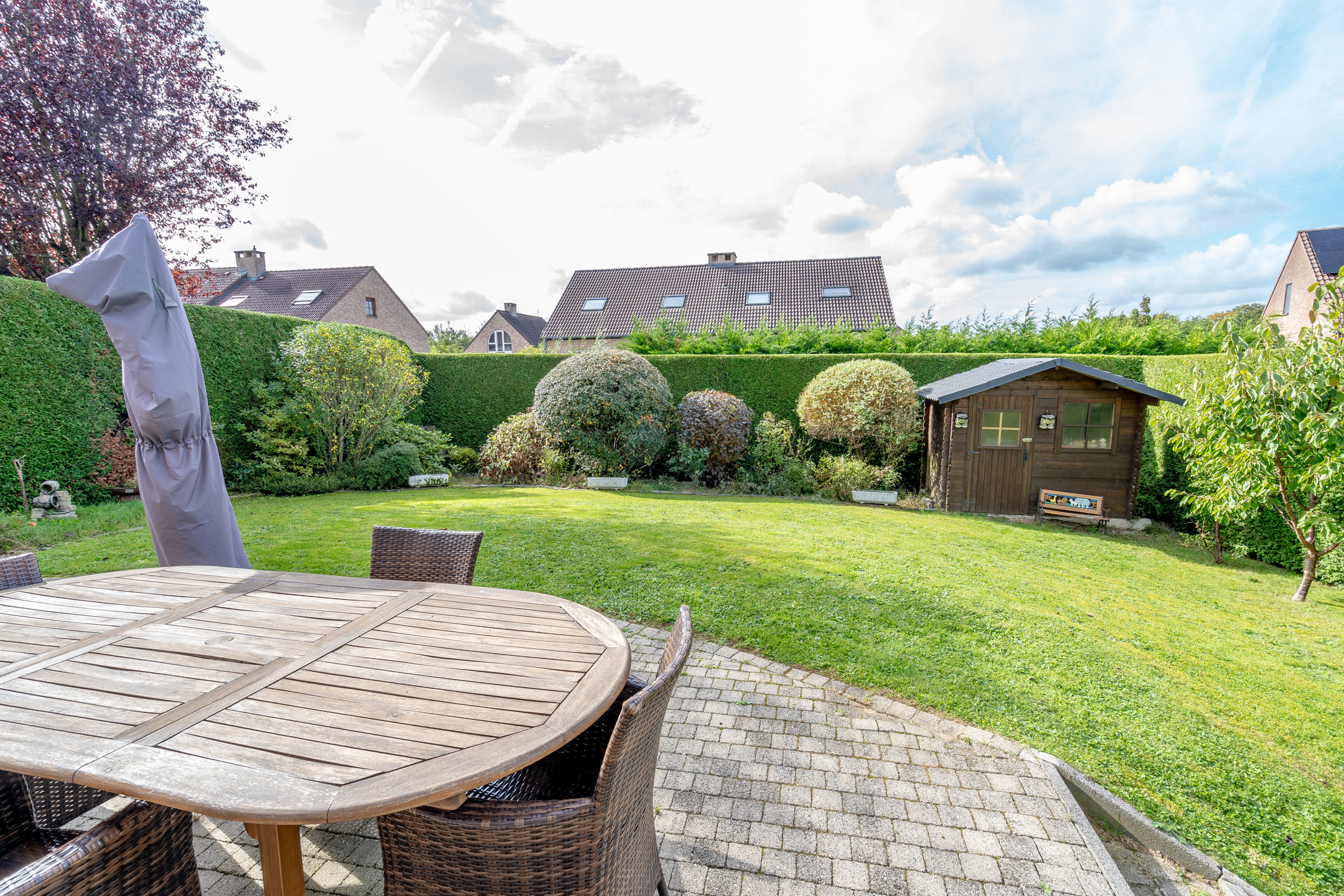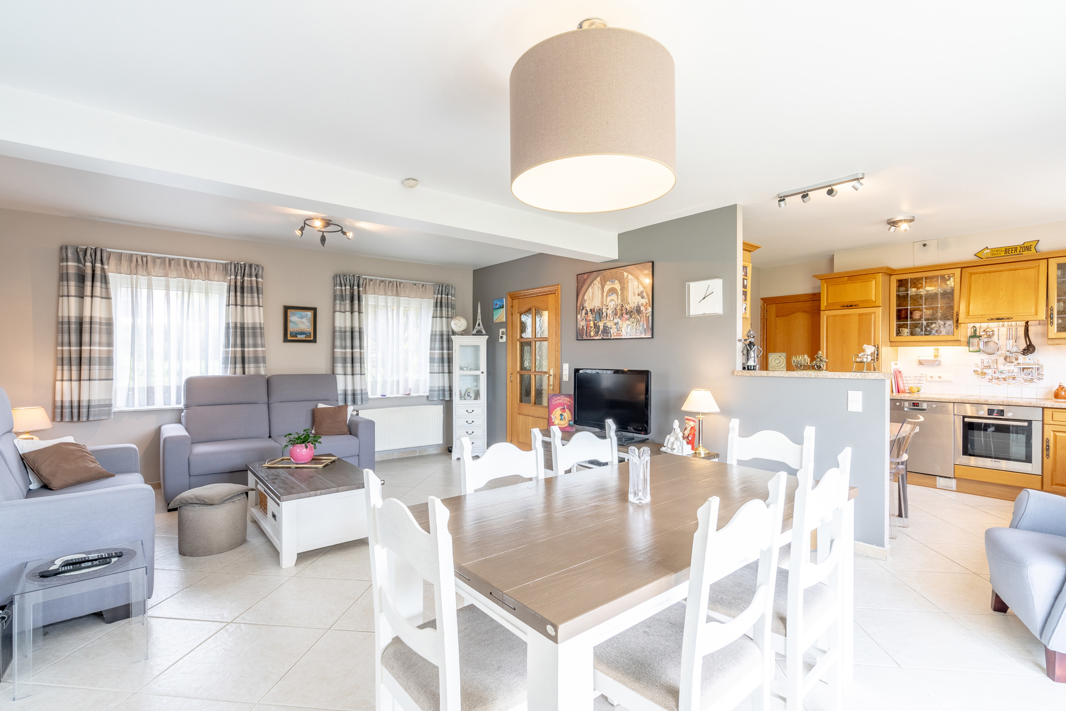Au rez-de-chaussée, vous trouverez un hall d’entrée, un WC séparé, un living de 32m², une cuisine américaine de 12m², donnant sur la terrasse/jardin. Un garage et une buanderie/chaufferie.