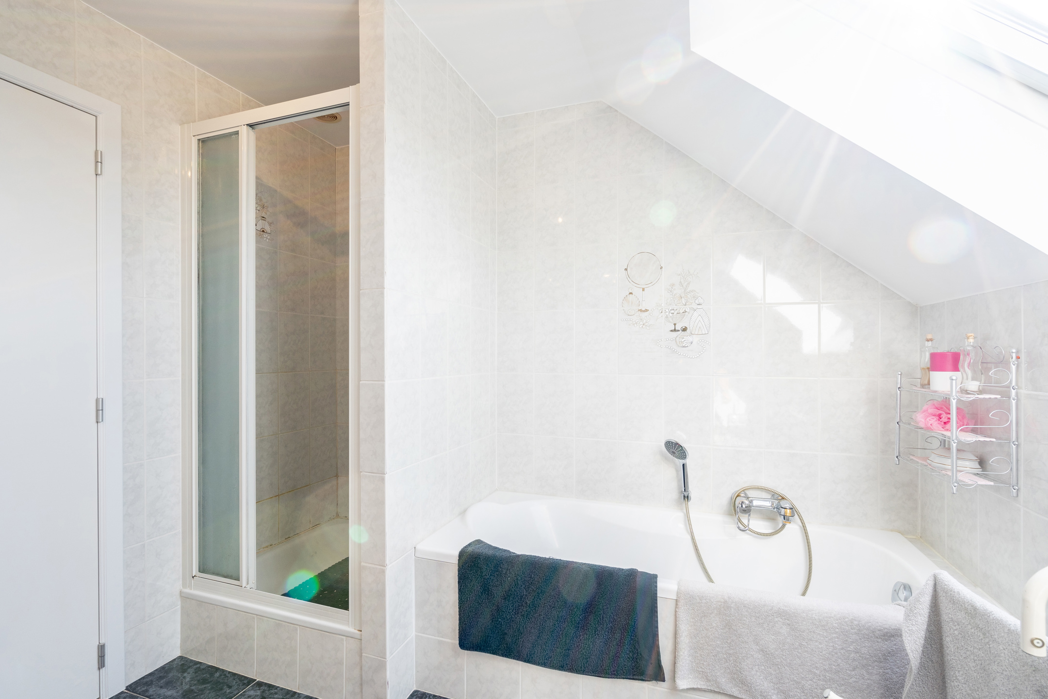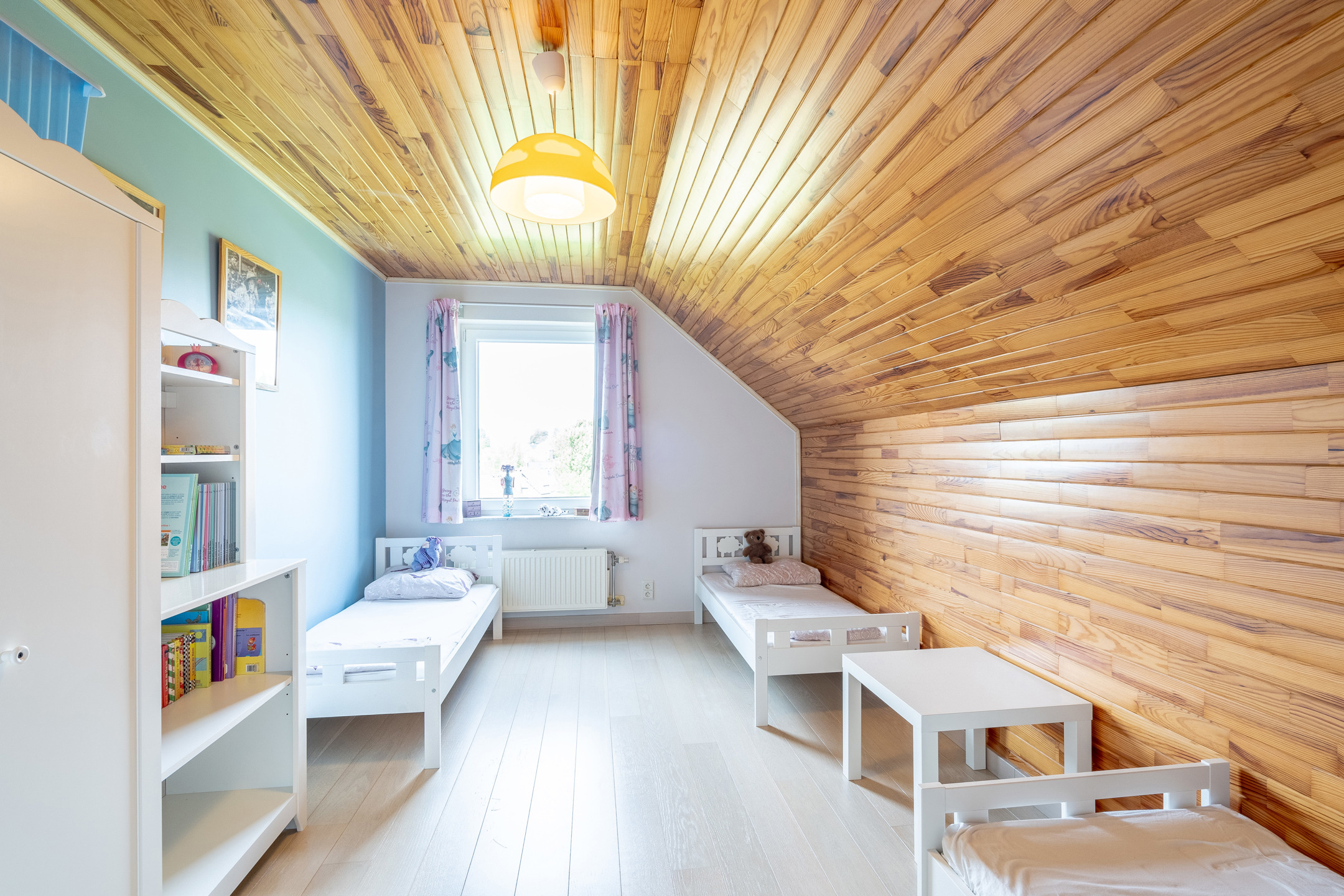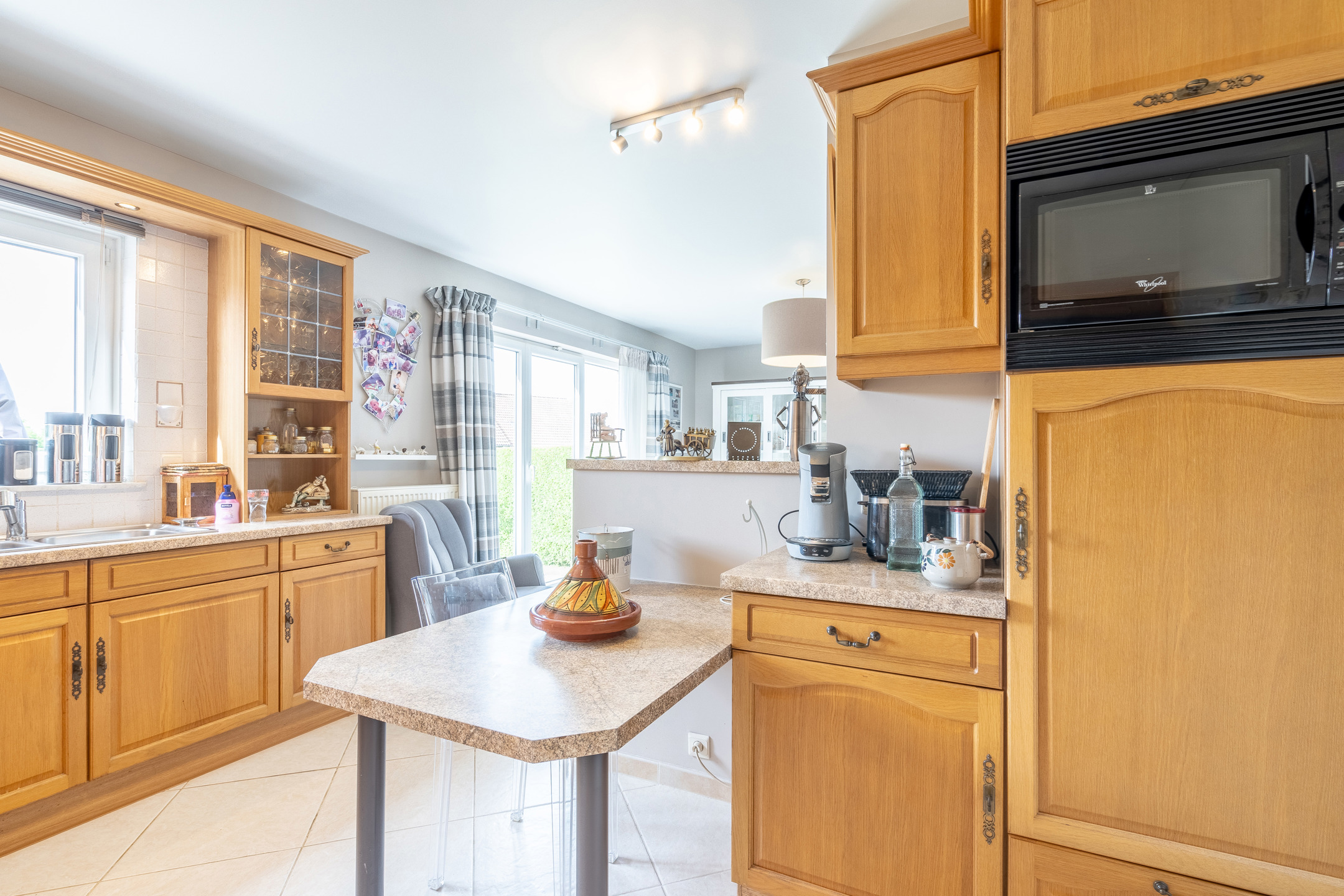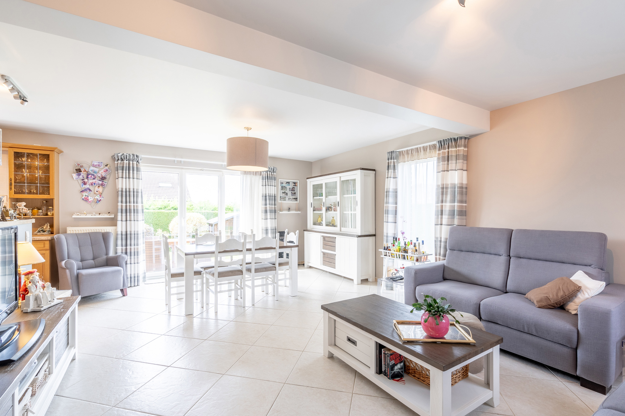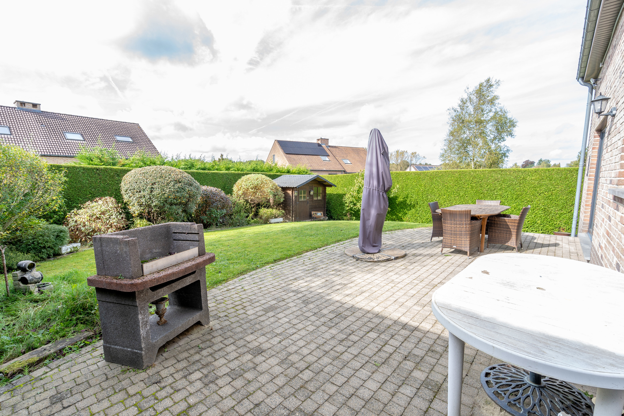 Au rez-de-chaussée, vous trouverez un hall d’entrée, un WC séparé, un living de 32m², une cuisine américaine de 12m², donnant sur la terrasse/jardin. Un garage et une buanderie/chaufferie.