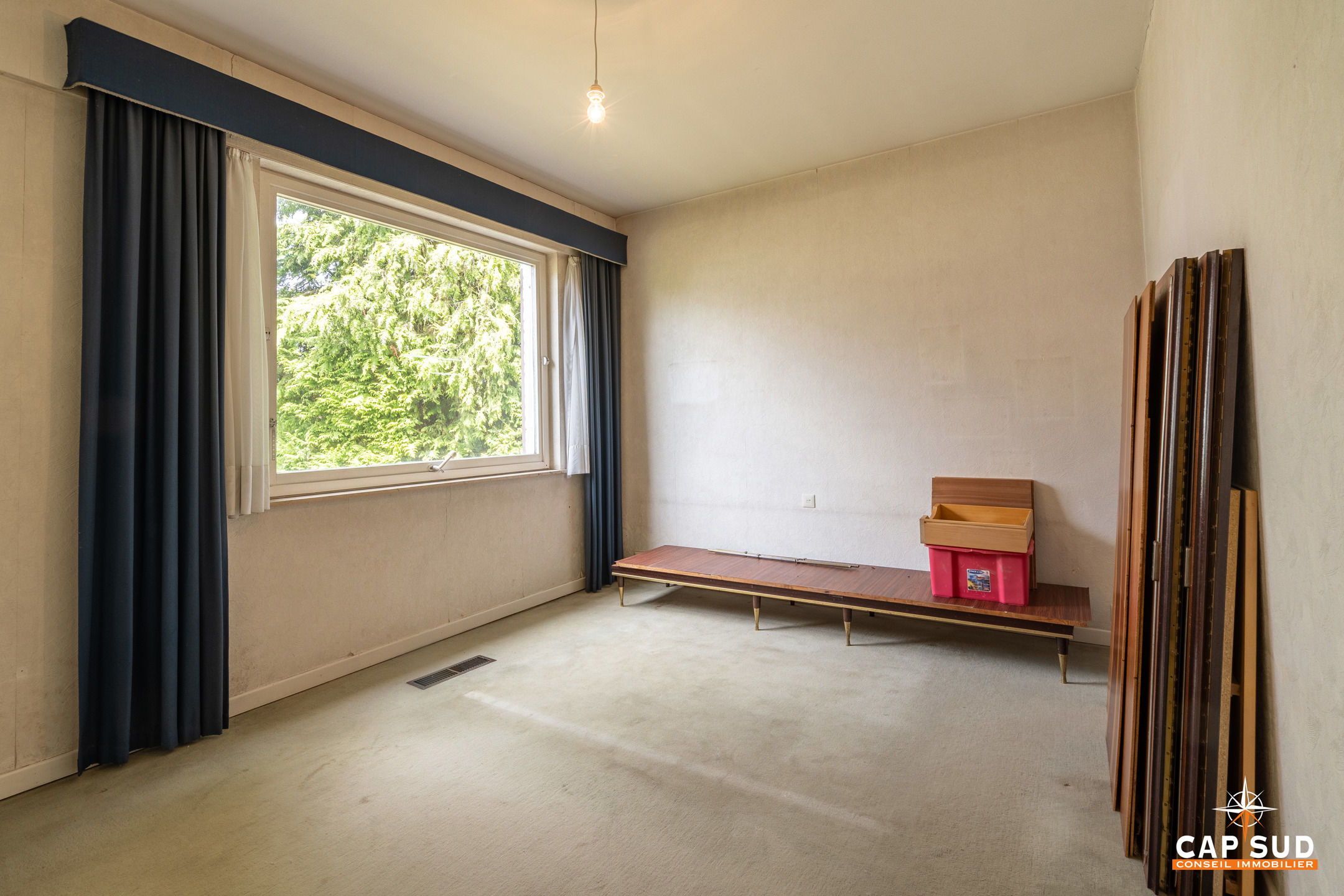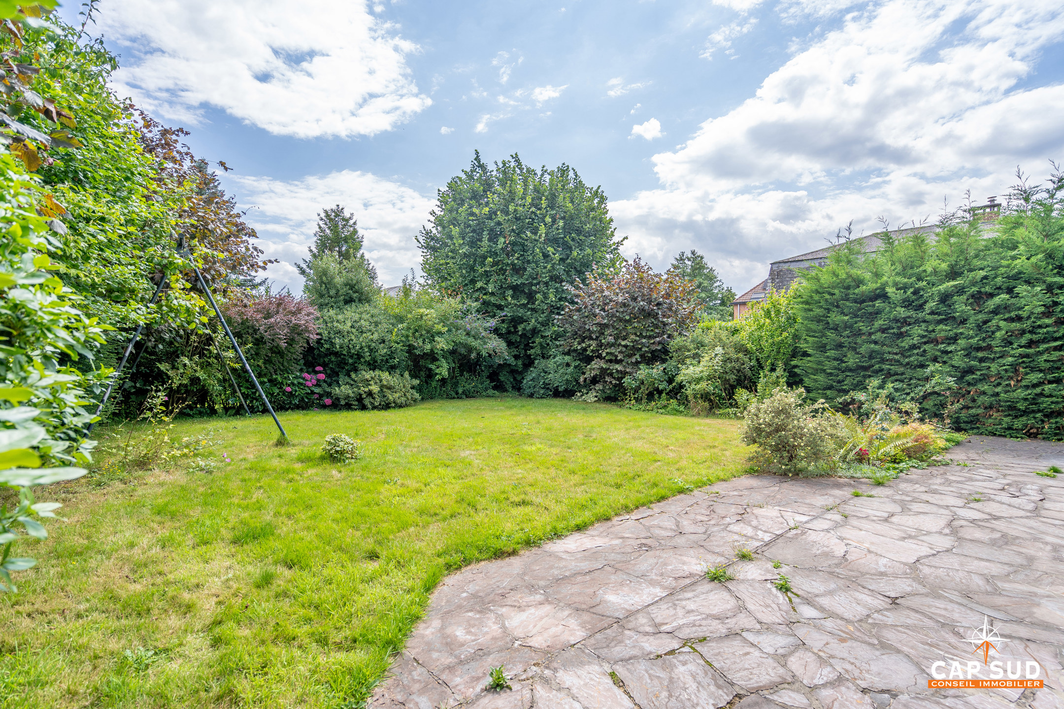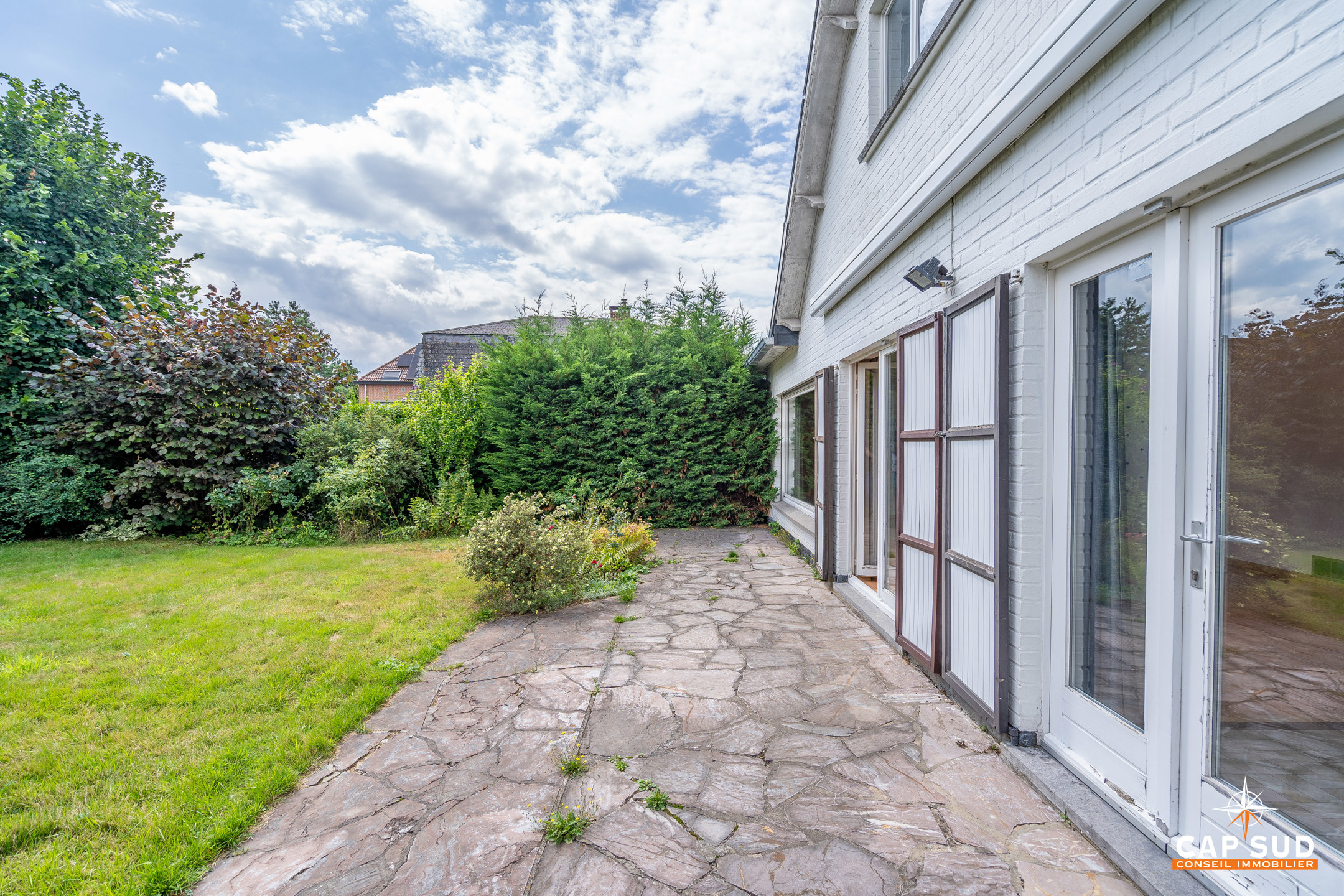 Waterloo – Mont-Saint-Jean (limite Saint-Anne), dans un quartier calme et arboré à proximité de toutes facilités, CAP SUD vous propose cette villa HABITABLE DE PLAIN-PIED de 200m2 sise sur un terrain de 5,79ares orienté Sud. Vous trouverez au rez; un vaste hall d’entrée avec ses commodités, un lumineux living de 34m2 avec FO donnant sur le jardin, une cuisine de 11m2, une buanderie, un hall de nuit desservant 3 chambres de 9, 13 et 13m2 et une salle de bains. Au 1er; un salon TV (ou salle de jeux) dessert 2 chambres de 14 et 15m2, local WC et grenier de rangement. Garage 1voiture avec espace de rangement. Belle terrasse de 25m2 donnant sur un jardin arboré orienté Sud. Volets au rez, tente solaire, système d’alarme…Ce bien est À RENOVER mais est habitable de plain pied, elle dispose non seulement de beaux volumes mais sa situation est idéale par rapport aux commerces, écoles et transports. A découvrir rapidement !
