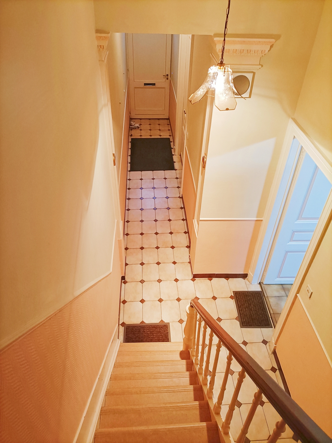 À proximité de Trône/Malibran/Flagey, bonne maison construite en 1869 offrant une superficie totale de +/-249m². Composition : sous-sols : Chaufferie, buanderie, cave, cave à charbon et pièce d’eau. Au rez-de-chaussée : hall d’entrée, cuisine équipée de +/-12,3 m², une salle à manger de +/-17m², hall et cage d’escalier, cour de +/-12m² avec barbecue. À l’entresol : une toilette séparée et une grande salle de bains de +/-10m². Au 1ᵉʳ étage ; un beau salon mouluré avec cheminée de +/-23,38 m², une chambre de +/-12,35 m². 2ᵉ entresol avec salle de douche. Au 2ᵉ étage : Une grande chambre de 23m² et une chambre (actuellement kitchenette) de +/-12,3 m². Au 3ᵉ étage : Deux chambres de 23 et 12m² + mezzanine aménagée de +/-12m². Façade arrière isolée, toiture de 2010, électricité à vérifier, double vitrage en bois, chauffage central au gaz. PEB : E : 266KwH/m²/an – CO²: 53Kg/m²/an – Code unique : 20240118-0000667664-01-3 – Infos & visites : CAP SUD Etterbeek : 02/733.48.00 – www.cap-sud.com