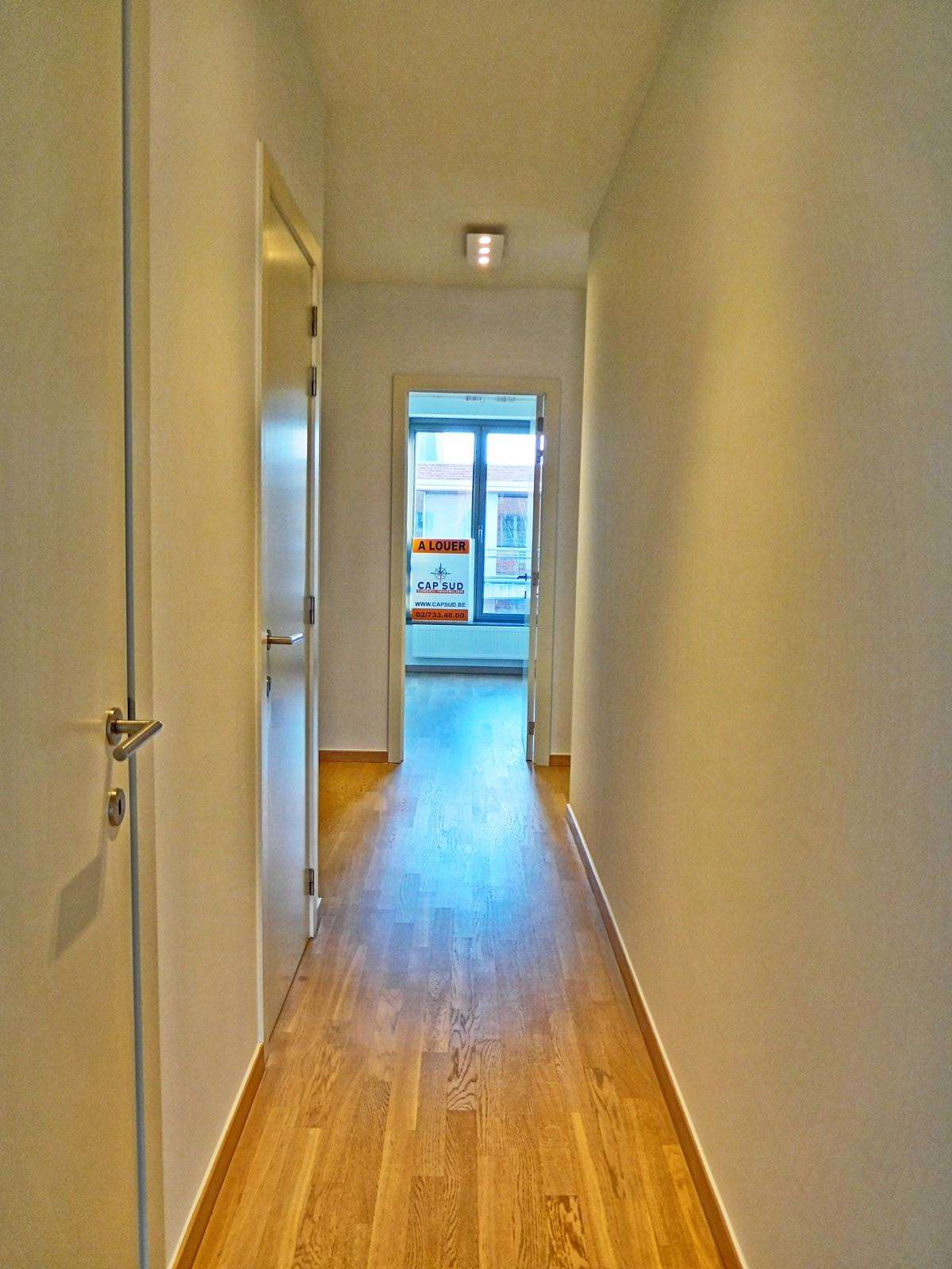 A proximité du métro Pétillon, dans un clos privatif et sécurisé, bel appartement de standing offrant une superficie de +/-115m², situé au 3ième et dernier étage d’un immeuble calme construit en 2007. Il se compose d’un séjour en parquet massif de +/-34m² donnant sur une terrasse bien orientée (SUD-OUEST) de +/-11m², cuisine hyper équipée de 8m², 3 chambres en parquet (15, 9 & 9m²), salle de bains, salle de douche, WC séparé, hall de nuit avec placard, hall d’entrée avec porte blindée, vidéophone, cave, tente solaire, thermostat Nest. Emplacement de parking 110€ par mois. Provision de charges communes: 170€ par mois. Chaudière individuelle au gaz, double vitrage. PEB C. Libre courant février, à convenir avec les locataires actuels. Infos & visites: CAP SUD Etterbeek: 02/733.48.00 – www.cap-sud.com