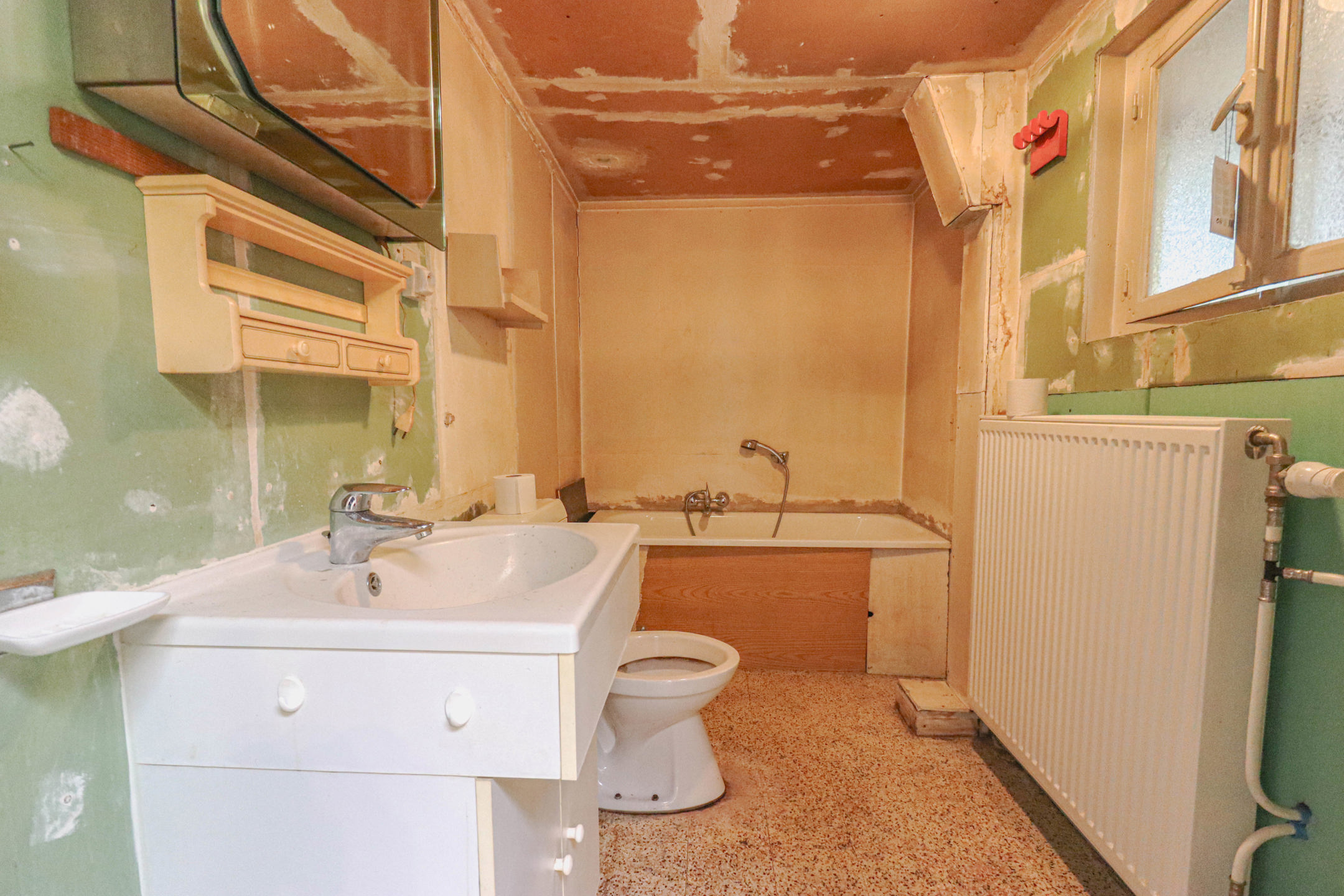 Divers : chauffage central au gaz (nouvelle chaudière), châssis DV PVC (moins de 10 ans), toiture isolée (moins de 10 ans), installation électrique non conforme, raccordement à l’égout.