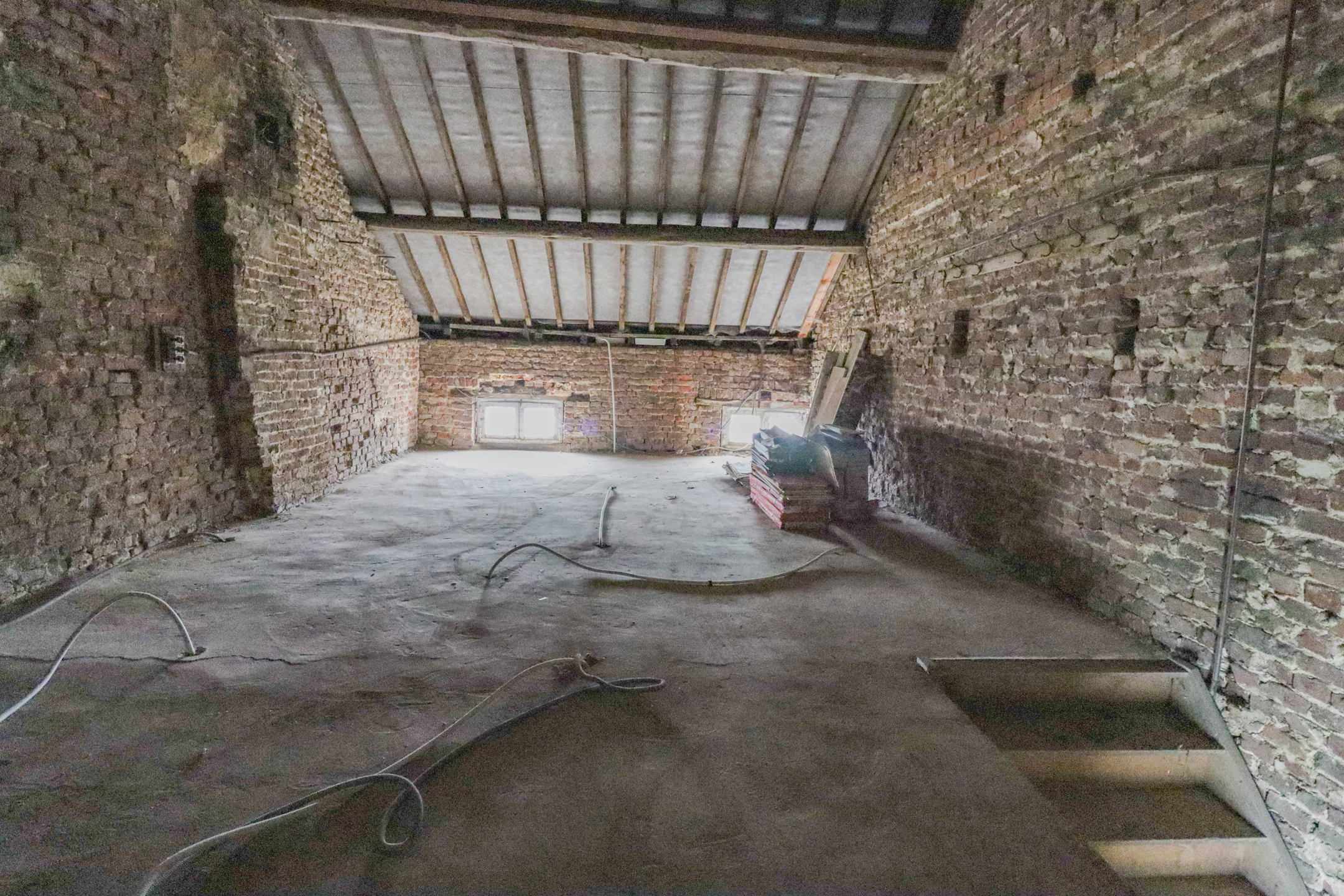 A l’étage se trouve deux espaces toilettes (H/F), deux pièces de 14,5m² et 22m², ainsi qu’un grenier aménageable de plus de 50m².