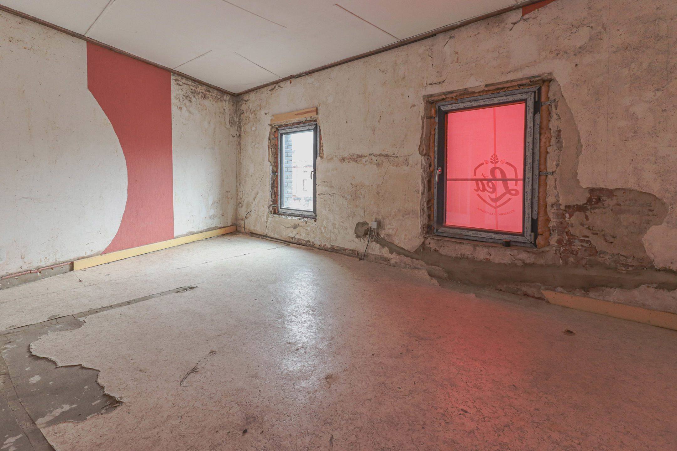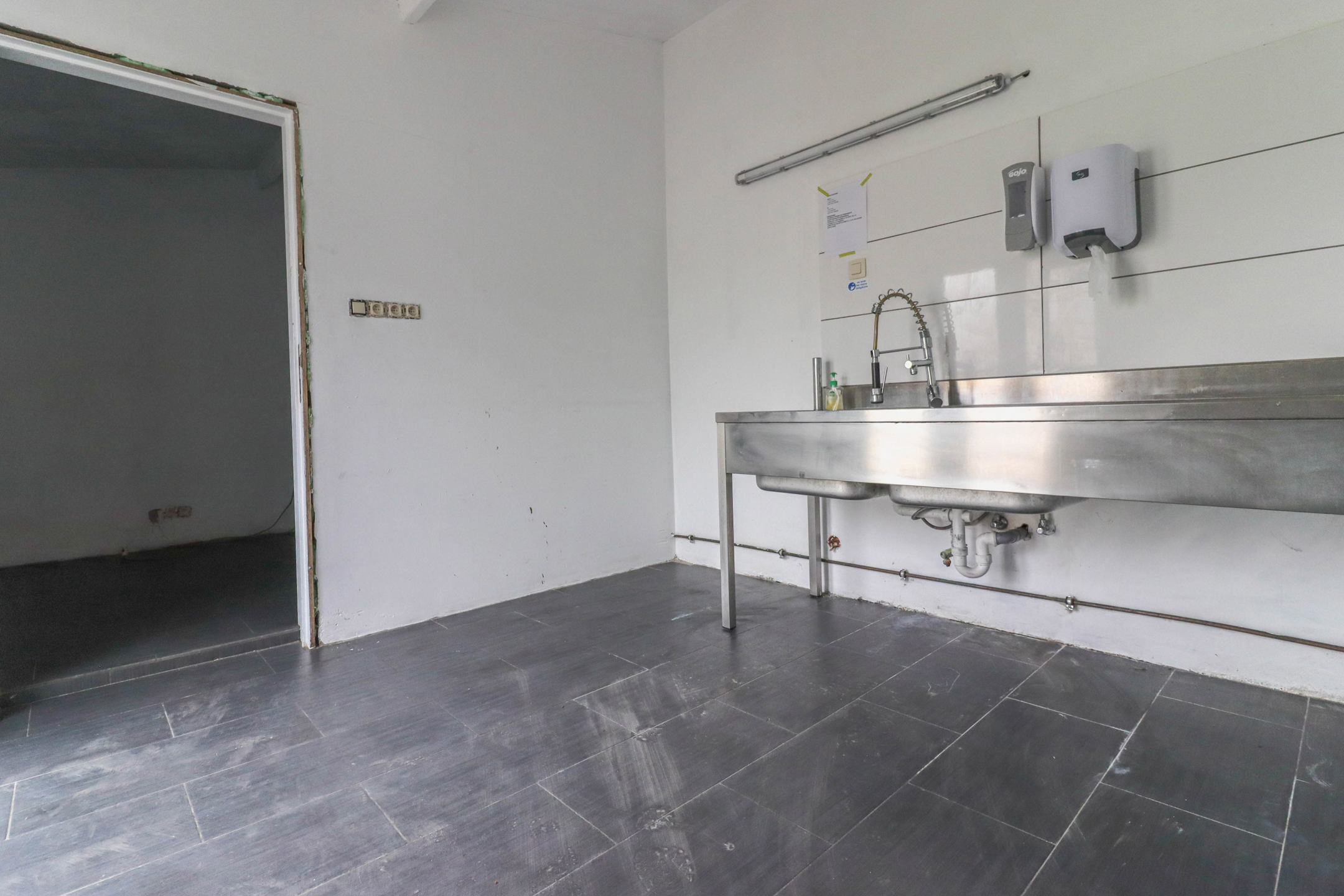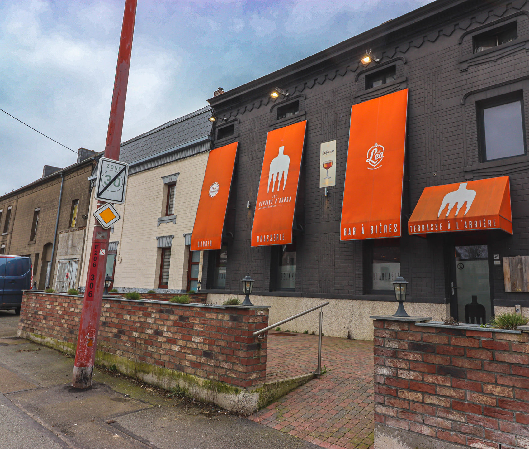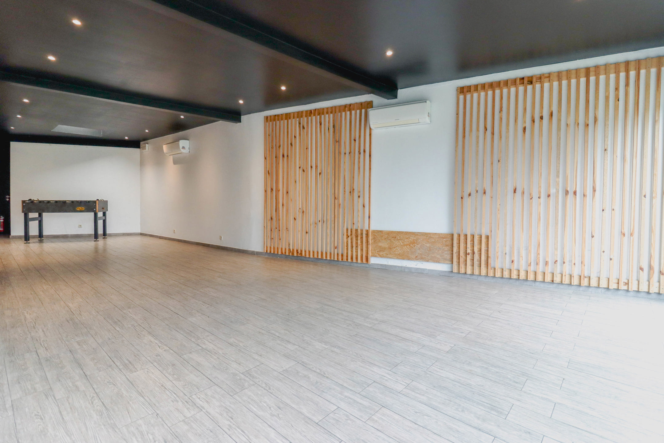 Au rez-de-chaussée se trouve un hall d’entrée desservant une partie bar de +/- 31m², une surface de salle d’environ 75m², un espace cuisine + réserve de +/- 32m², ainsi qu’un WC PMR.