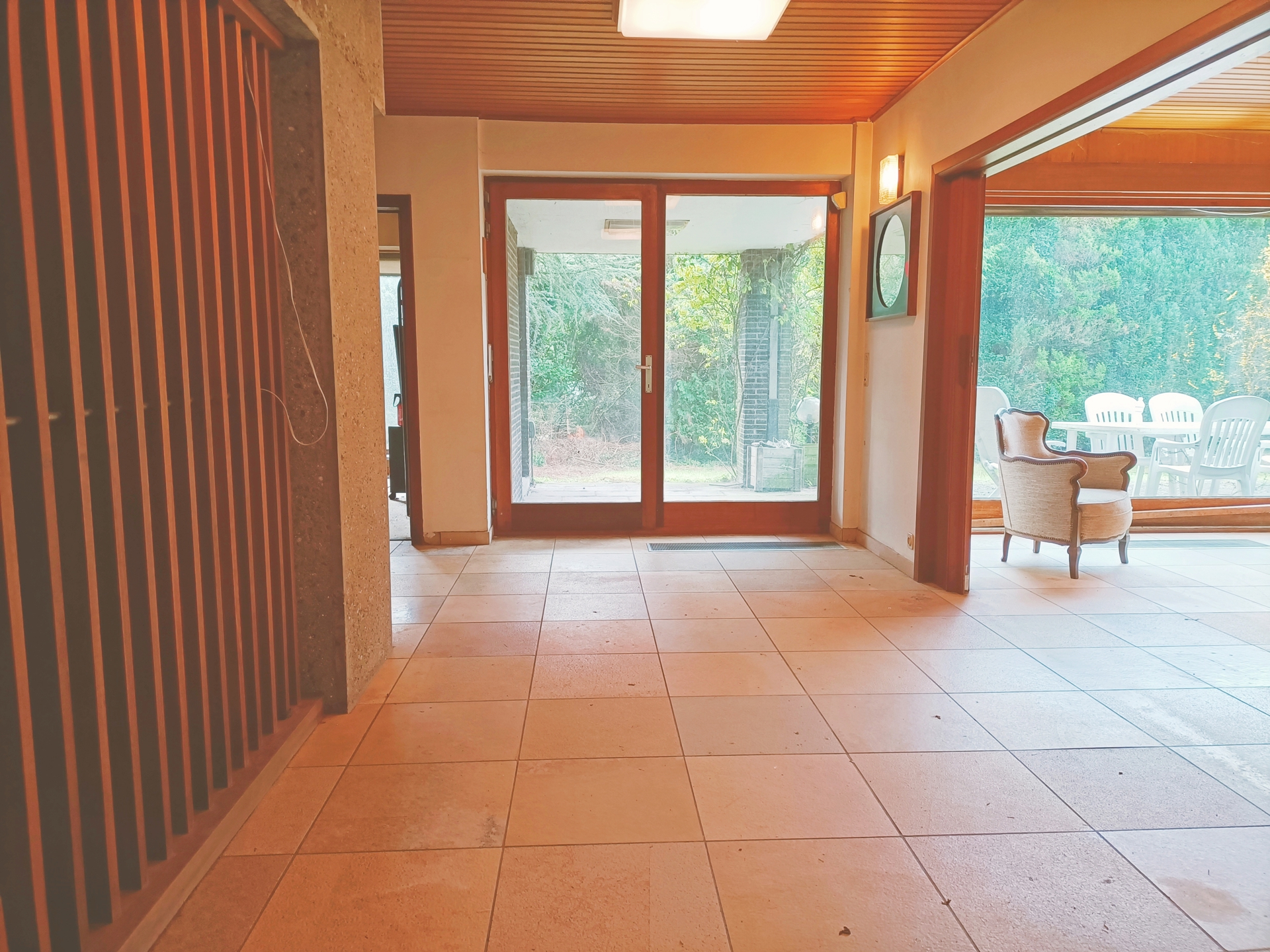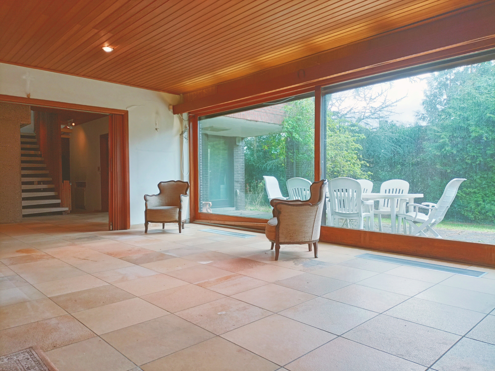 SOUS-OPTION – Sterrebeek – Dans un quartier privilégié et recherché (proximité golf), dans un quartier calme et résidentiel, belle villa d’architecte construite en 1965 (Architecte et designer belge Louis-Herman De Koninck). La villa offre une superficie totale de 324m², construite sur un terrain de 13a 47ca. Le villa se compose d’un vaste séjour de +/-49m² avec feu ouvert donnant sur la terrasse et le jardin, d’une cuisine (ouvrable sur le séjour de +/-11m²), un vaste hall d’entrée/réception traversant avec vestiaire et toilette visiteur de +/-35m², une chambre ou bureau de +/-23,5m² et un garage de +/-31m². Au premier étage : une suite parentale composée d’une chambre de +/-21m², d’une salle de bains de +/-7m² et d’un hall dressing de +/-6m². Ensuite 4 chambres de 22m²- 19m² – 18m² et 11,5m² et une salle de douche/WC séparé. Caves de +/-38m². Grenier de rangement Double vitrage en bois. PEB E – 484KWh/m²/an – 20240202-0003130945 – RES-1 – 02/02/2024 – Electricité non conforme – Etat : à remettre au goût du jour – Système d’alarme – Toiture tuile – Infos & visites : CAP SUD Etterbeek-Woluwé : 02/733.48.00 – www.cap-sud.com