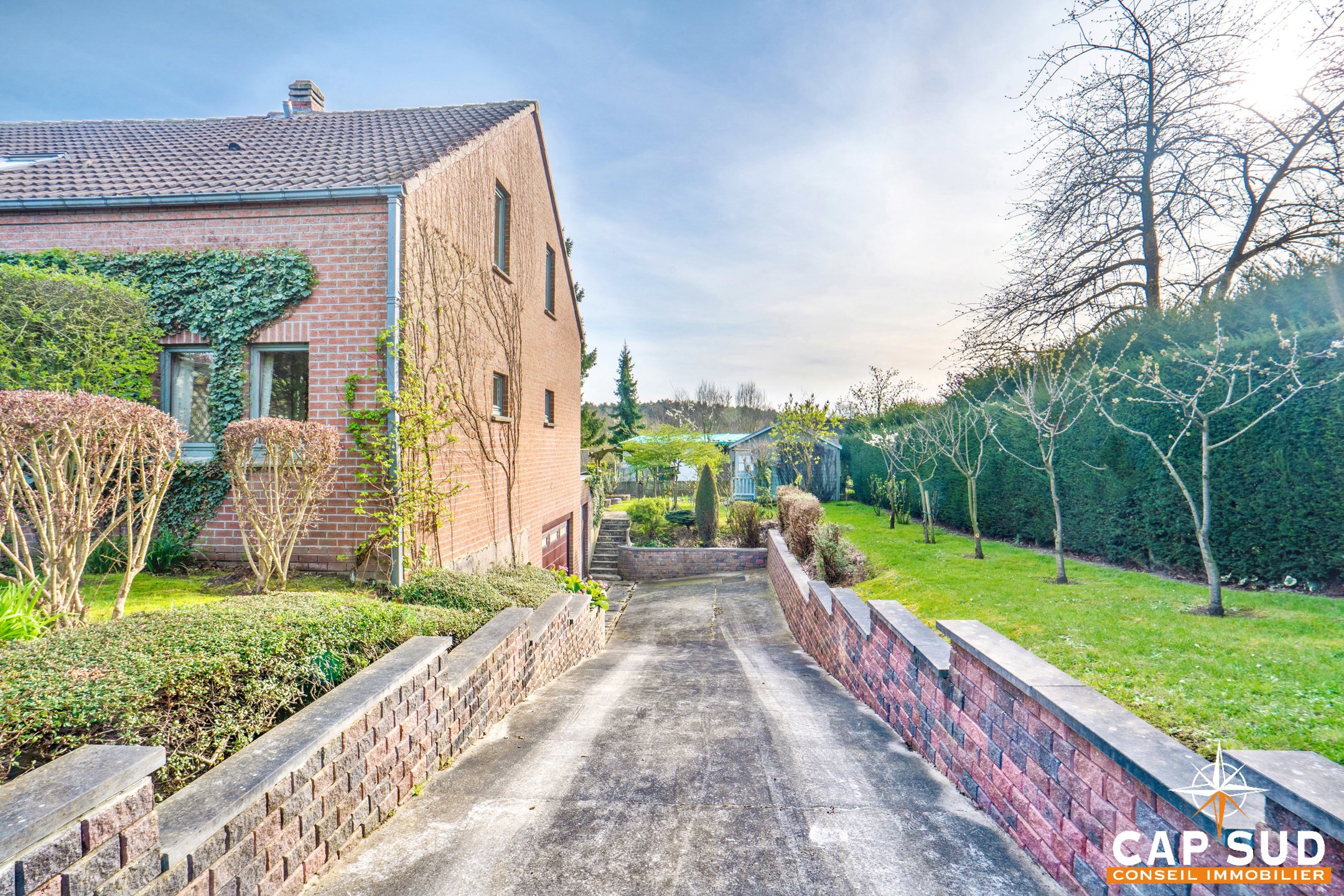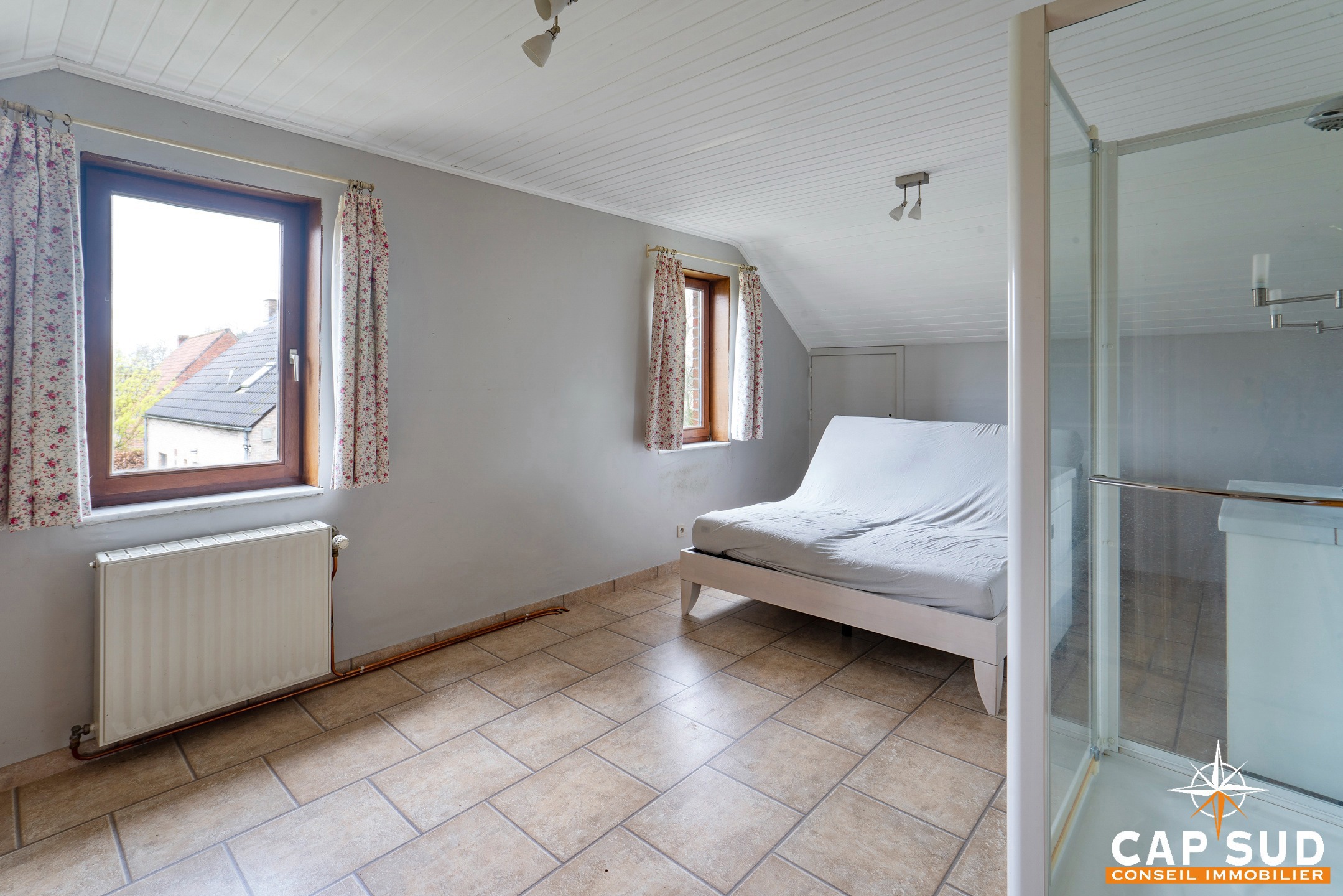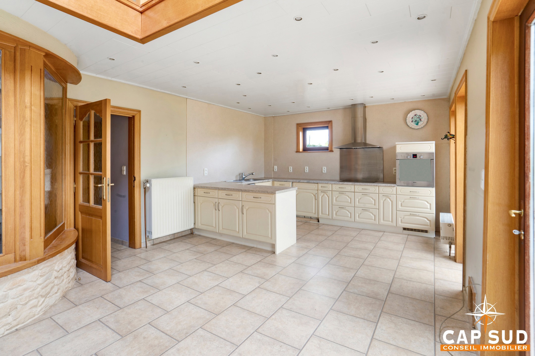 Cap Sud vous présente cette belle villa à rafraîchir d’une superficie totale de 290 m², sise sur un terrain de 7,75 ares orienté sud-ouest et situé dans un quartier résidentiel de Grez-Doiceau. Au rez-de-chaussée, vous trouverez un hall d’entrée desservant un lumineux living ouvert sur la cuisine équipée et sur la véranda (44 m² hors véranda), une buanderie, un WC, une chambre ainsi qu’une salle de bain. Le hall de nuit du premier étage vous mènera aux deux chambres supplémentaires ainsi qu’au second WC. Le sous-sol vous propose un vaste garage, ainsi que deux grandes caves. Au niveau des extérieurs, vous profiterez d’une terrasse avec pergola, ainsi que d’un jardin parfaitement orienté disposant d’un abris de jardin. La maison est notamment équipée d’une chaudière au mazout, de panneaux solaires et d’un adoucisseur d’eau. PEB : E Numéro 20240403004867 – 371 kWh/m²/an – 77 717 kWh/an. Électricité non-conforme. Plus d’infos : Cap Sud 010/24.30.14 ou par e-mail. À visiter sans tarder !