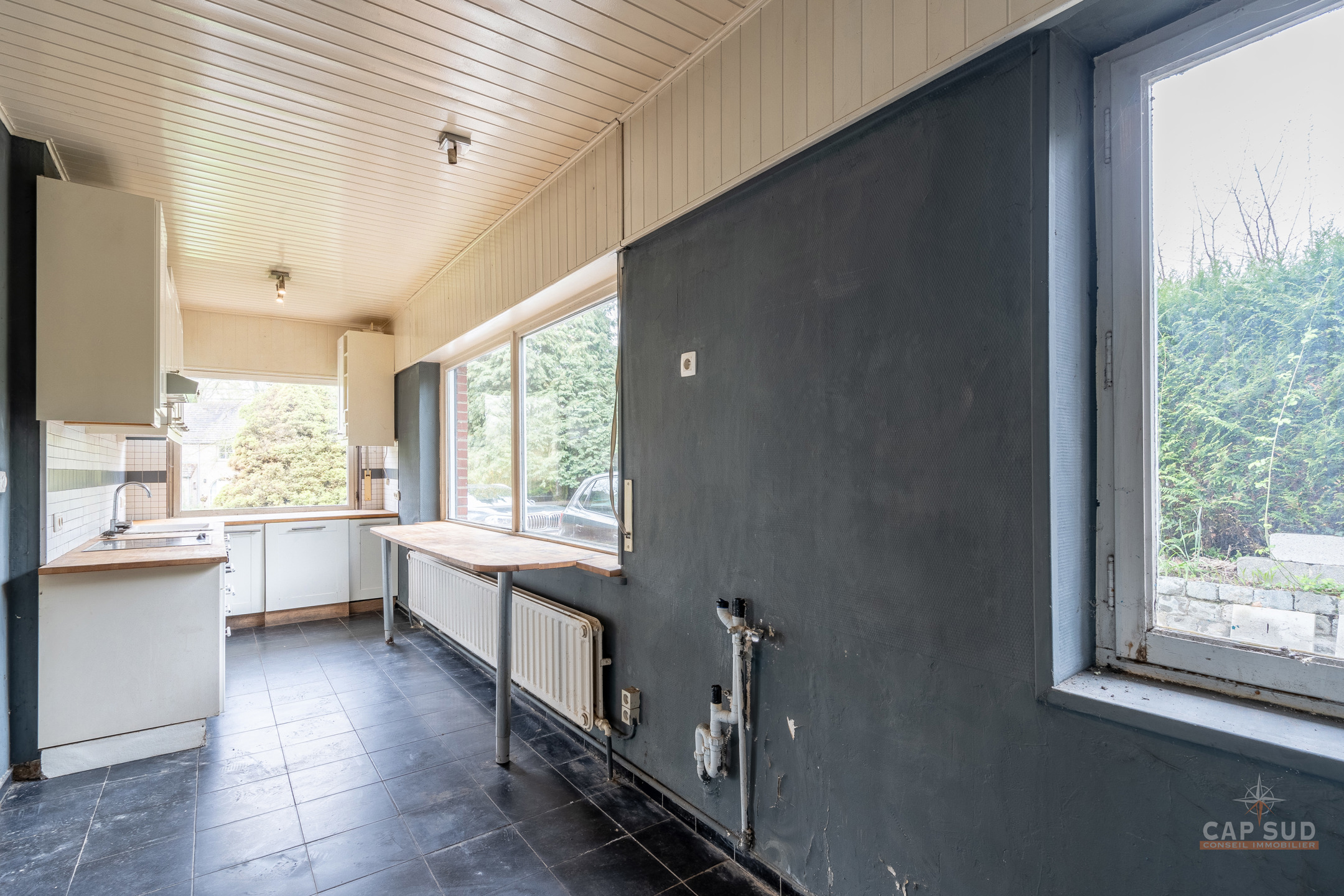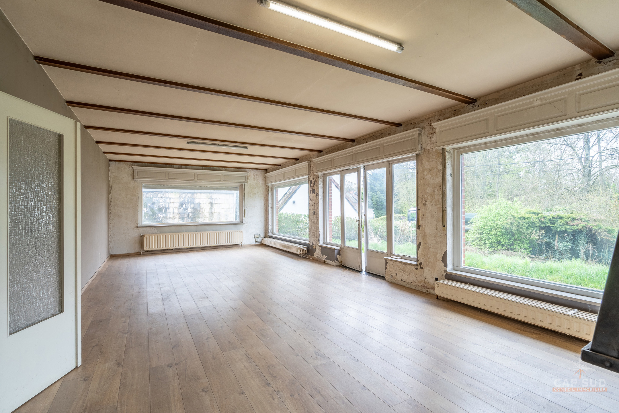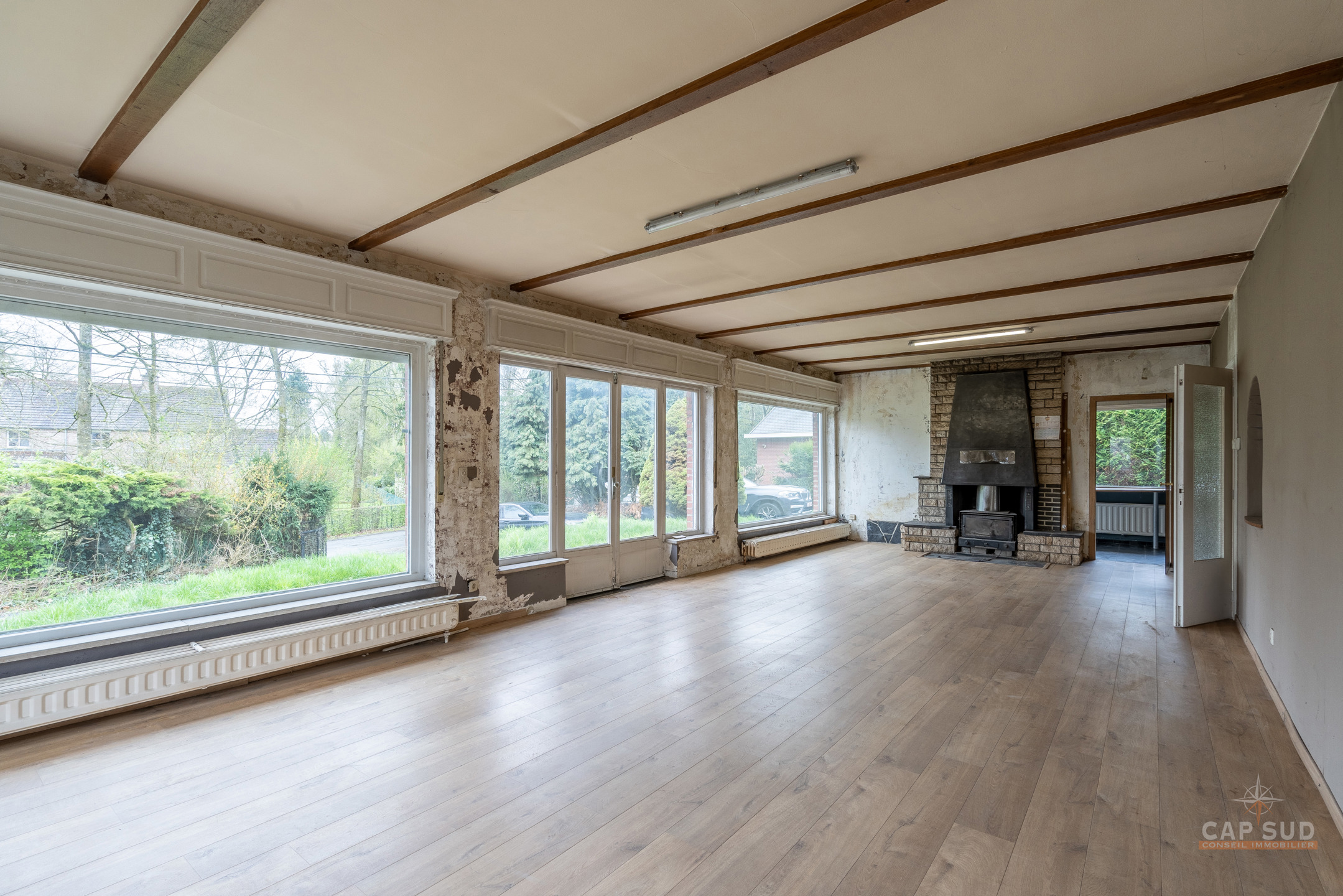 Lillois – Dans un quartier calme et arboré, CAP SUD vous propose cette villa de plain pied A RENOVER ENTIEREMENT comprenant 115m2 sur un terrain de 8,66ares SUD (avant). Vous trouverez un vaste hall d’entrée, un lumineux living de 46m2 avec feu ouvert, une grande cuisine de 13m2, un hall de nuit, 2 chambres de 10 et 13m2 et une salle de bains. Grenier de rangement accessible via une trappe. Grand garage/atelier de 63m2. A vos projets ! Venez la découvrir rapidement…