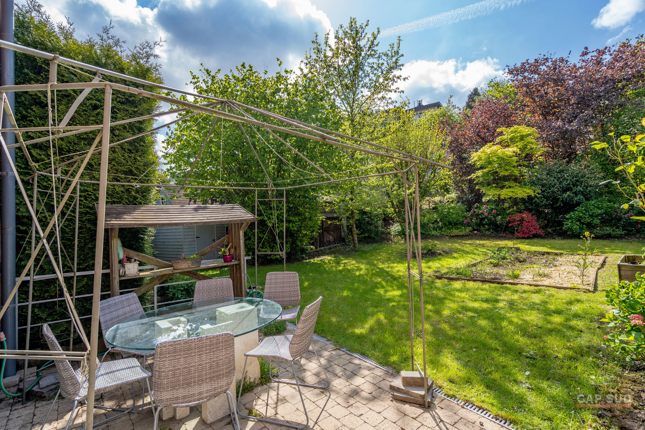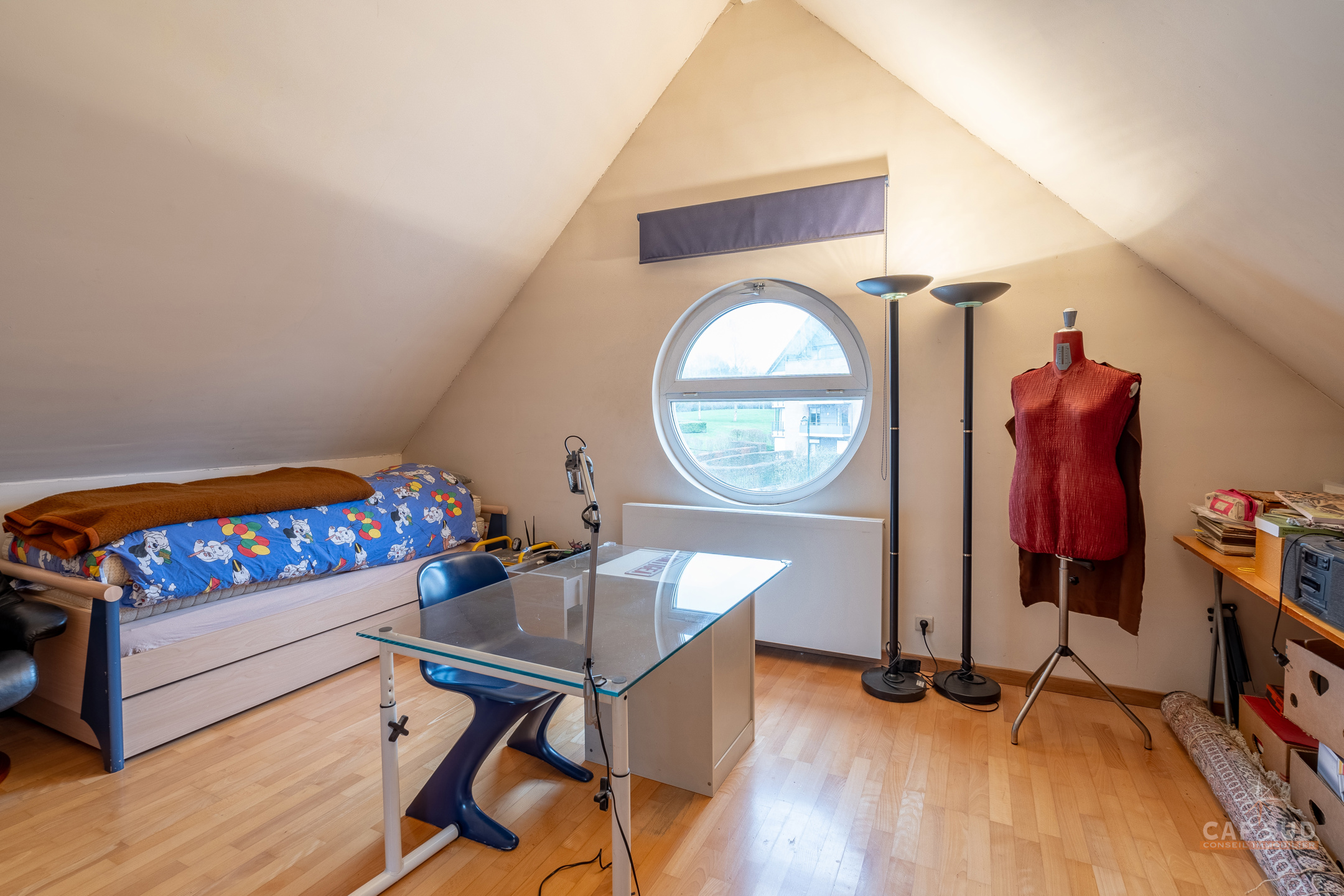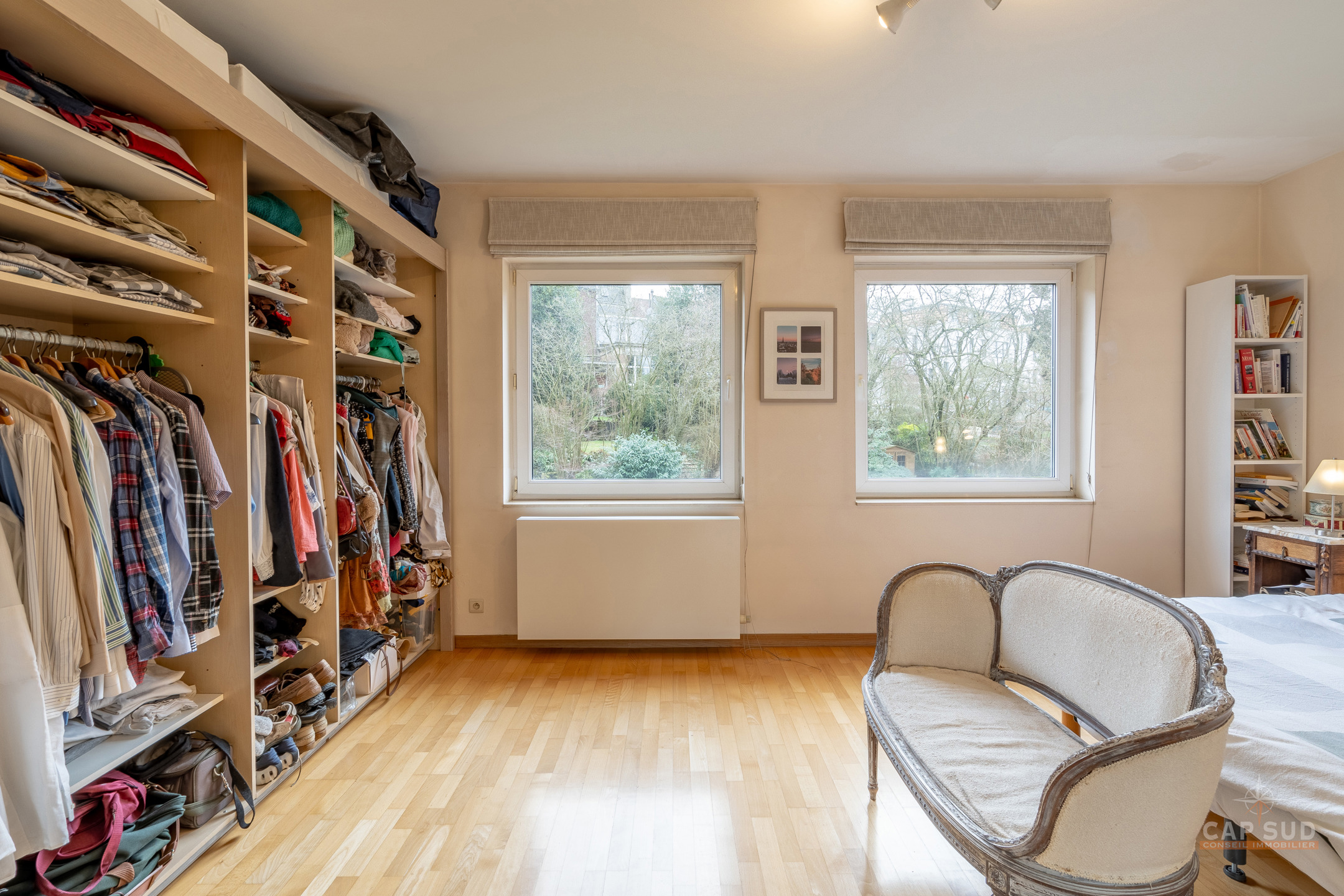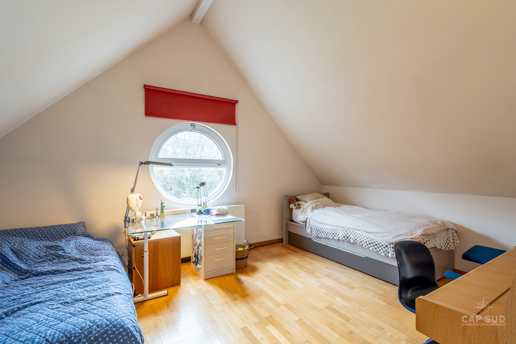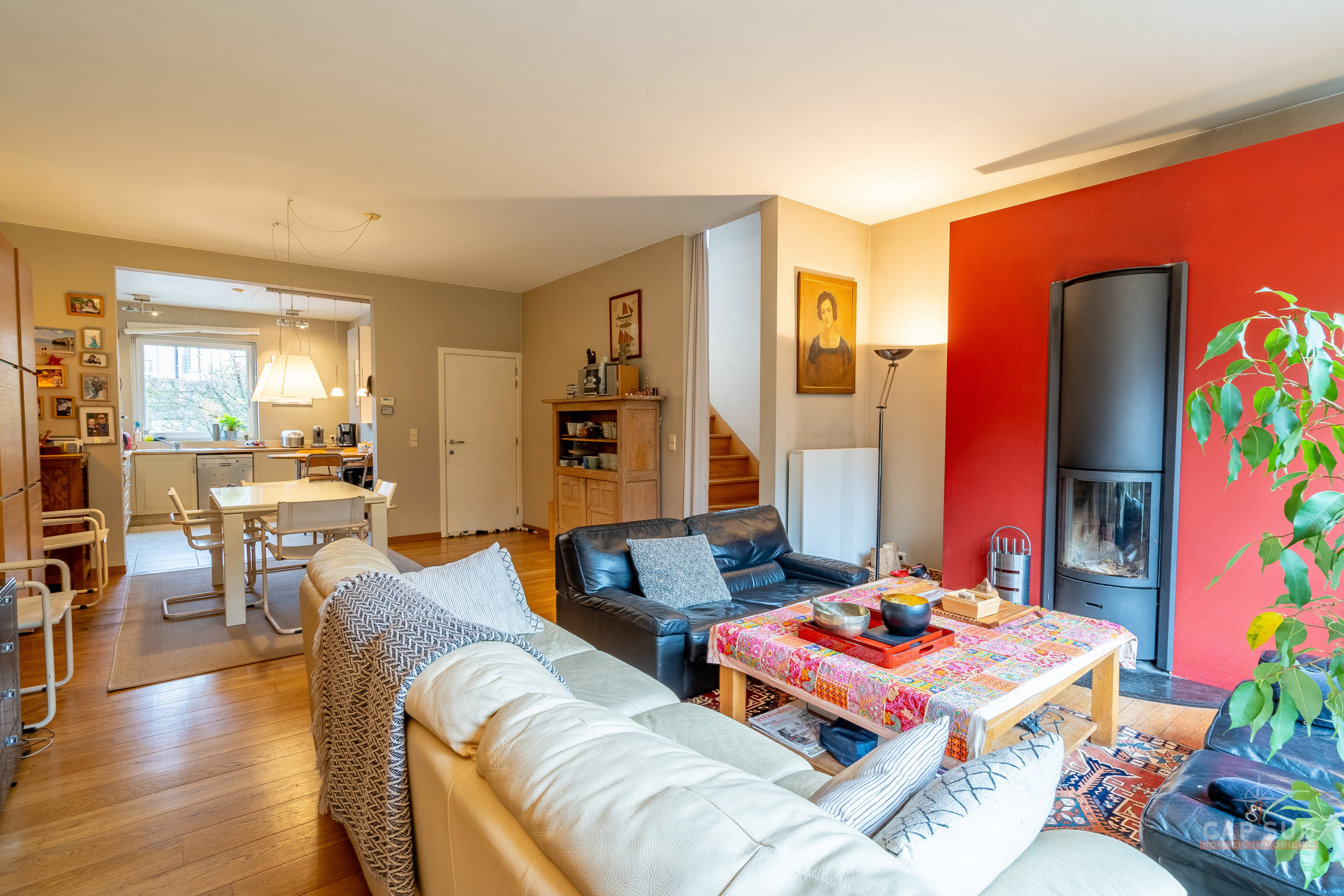 WATERLOO CENTRE – Dans un quartier résidentiel calme et arboré, à proximité immédiate du centre ville (à moins de 100m de Ducobu pour les connaisseurs! ), située à l’extrémité d’une rue sans issue, CAP SUD vous propose cette maison d’architecte (Damien CAUWE) de 2004 de 200m2 sise sur un terrain de 3,98ares orienté Sud. Très originale par sa façade, cette maison révèle ses incroyables atouts dès que vous franchissez les quatres marches qui vous ouvrent à un séjour et un jardin étonnants. Vous trouverez donc au rez, un hall d’entrée menant à un lumineux living de 40m2 avec FO donnant d’une part sur la terrasse et un jardin joliment sans vis-à-vis et arboré, et d’autre part sur la cuisine ouverte équipée de 12m2. Au 1er étage, le hall de nuit dessert 2 belles chambres de 18 et 19m2, une salle de bains et une salle de douche. Au 2ème étage se trouvent 2 grandes chambres mansardées de 19m2 chacune, une salle de douche et un espace buanderie (avec WC). Au sous-sol : un garage privé et un espace en copropriété. 2 parkings extérieurs, FO STUV (3 positions), système d’alarme, VMC simple flux, plancher au sol, porte de garage automatique, châssis PVC DV bi-colore 2004. PEB: B – 163kWH/m2.An…Rare opportunité sur Waterloo ! Volumes parfaits, esthétique, rationalité et gaité sont les Maîtres Mots de ce bien ! A découvrir rapidement…