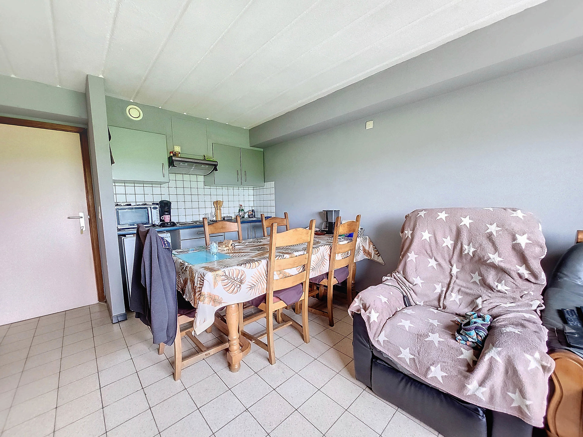 Composé comme suit : un séjour avec coin cuisine semi-équipée, une chambre et une salle de douche.