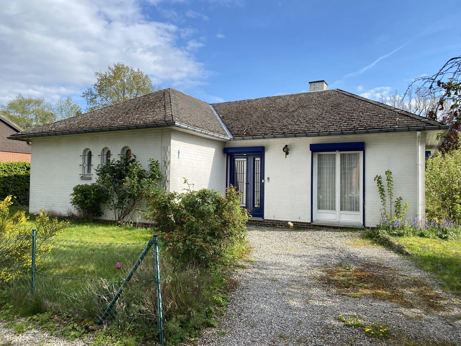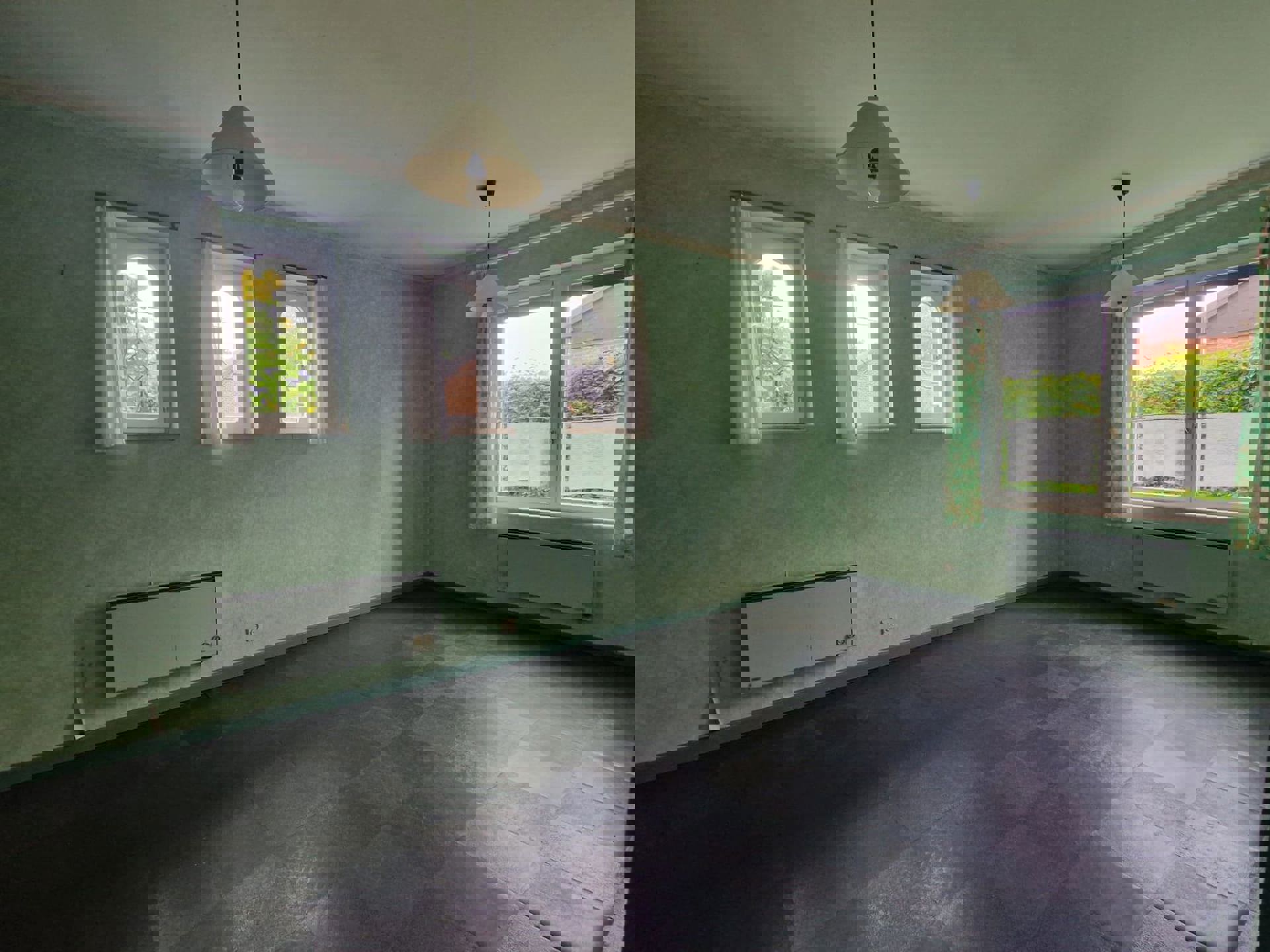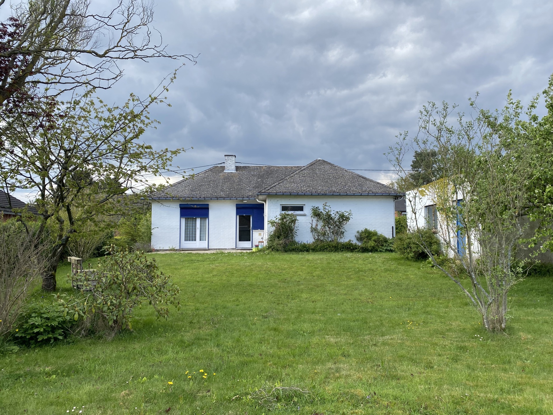 Composition: hall d’entrée, séjour, cuisine, 4 chambres, salle-de-bain avec wc, garage, cave et grenier de rangement.