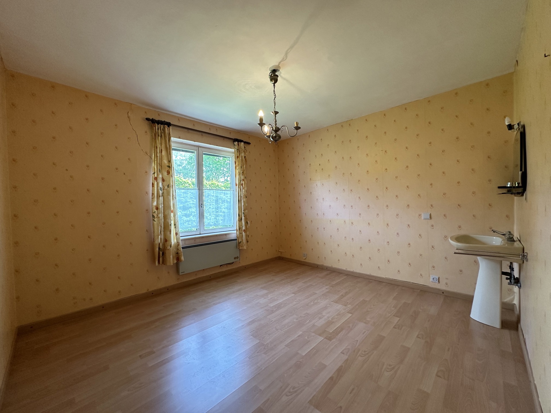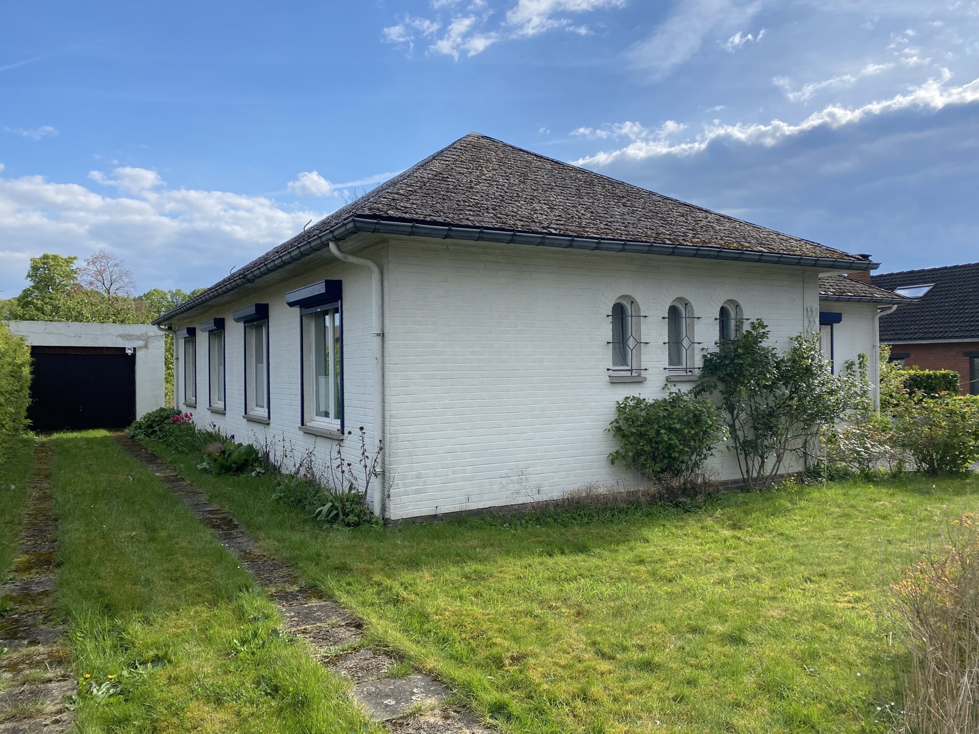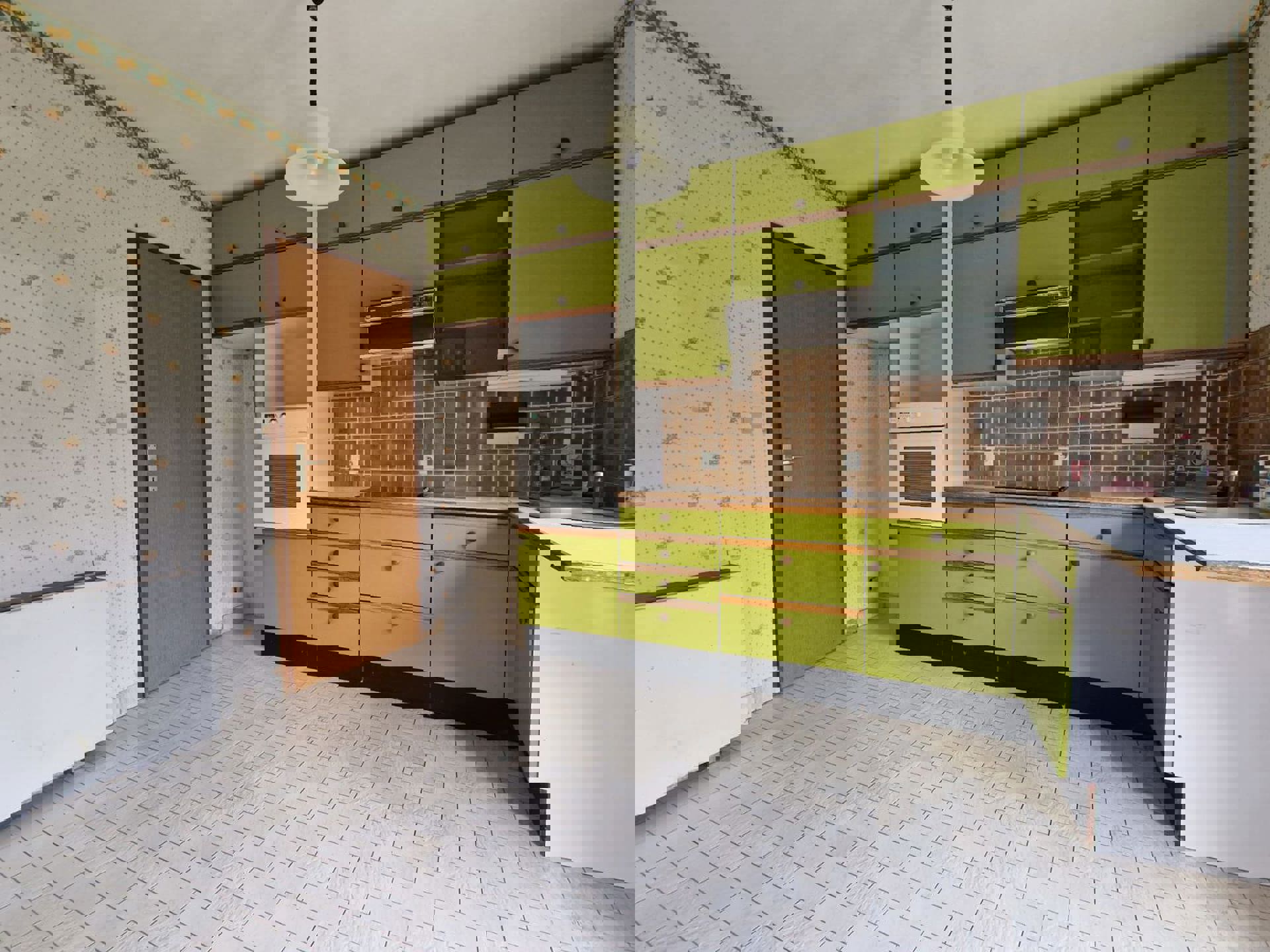Composition: hall d’entrée, séjour, cuisine, 4 chambres, salle-de-bain avec wc, garage, cave et grenier de rangement.