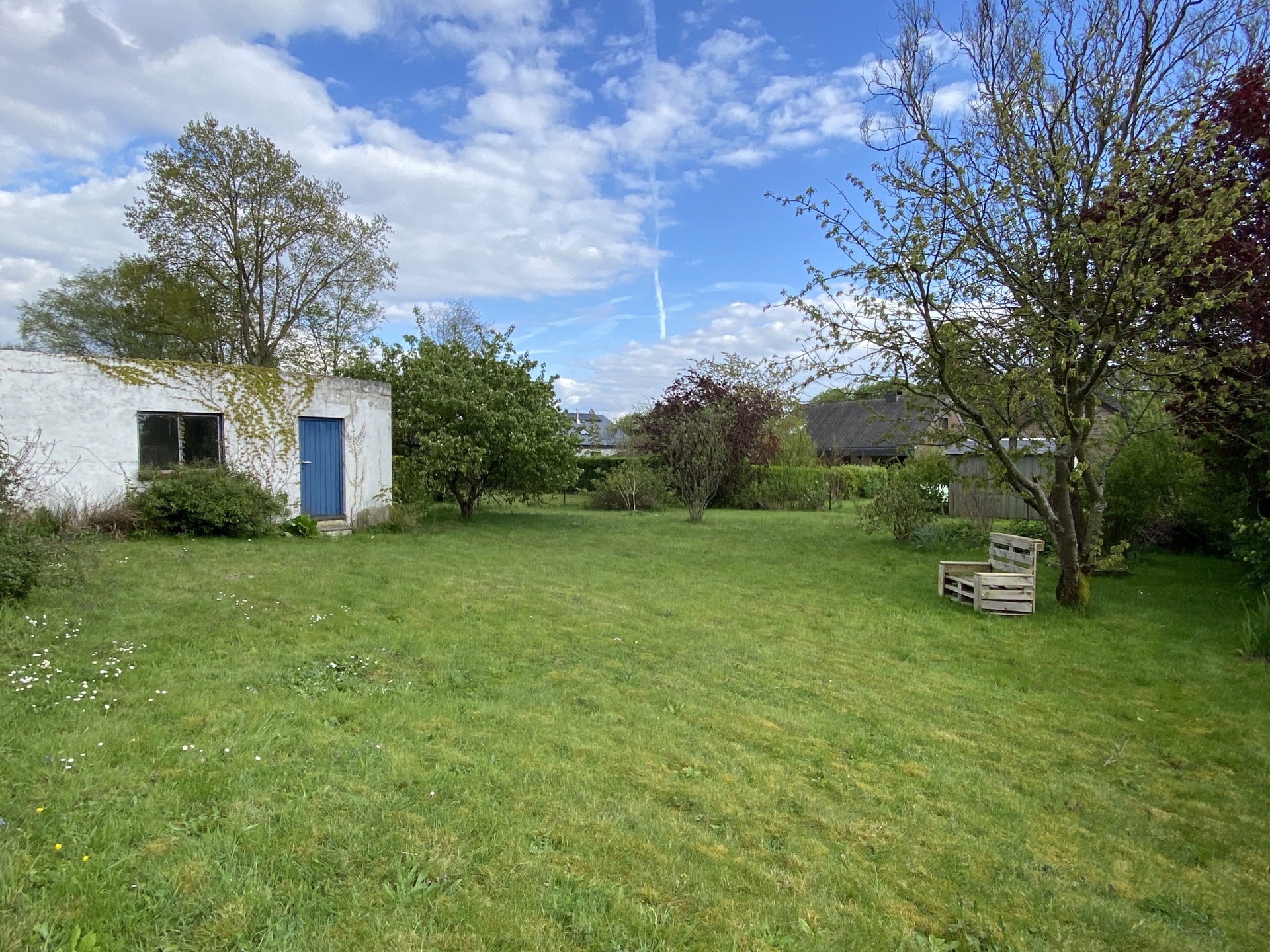 Jardin de 8 ares orienté sud, places de parking à l’avant, châssis en bois avec double vitrage, chauffage électrique, électricité non conforme.
