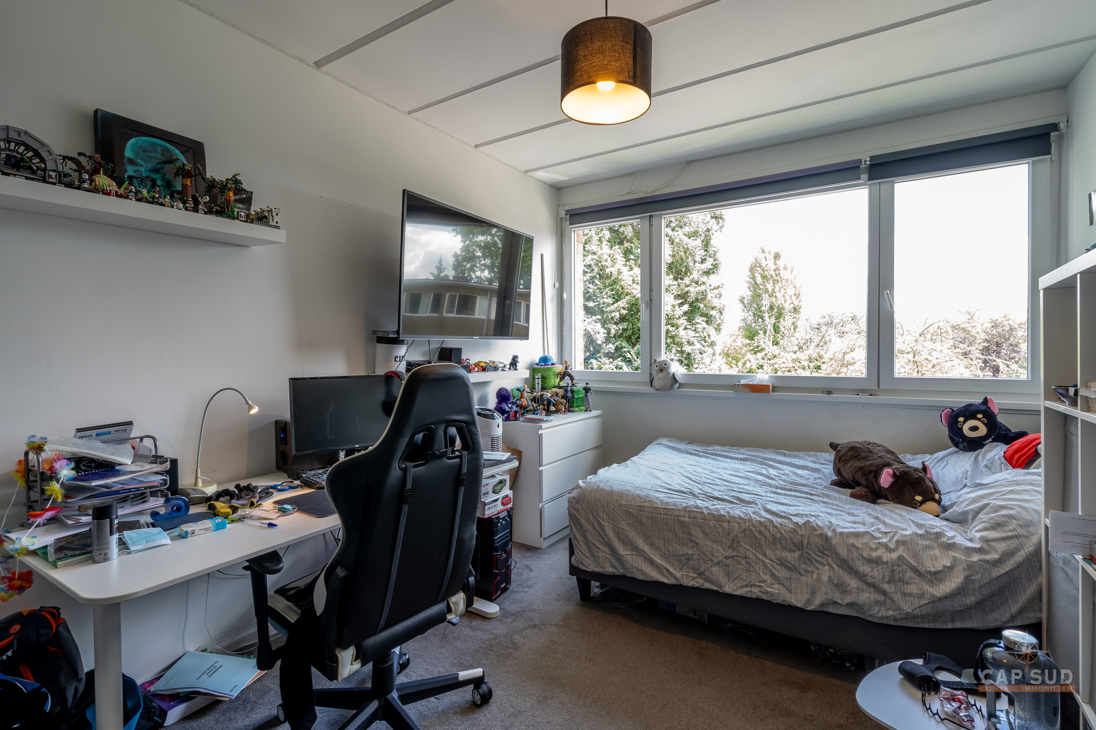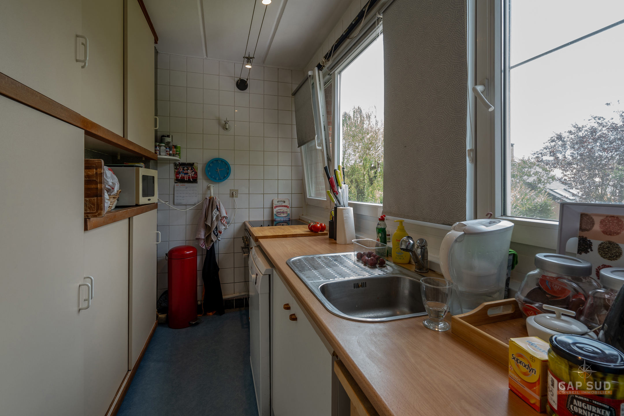 Kraainem – Dans un clos calme et verdoyant à deux pas de la Place Dumon de Stockel, CAP SUD vous propose cette maison de 135m2 sise sur un terrain de 1,67are orienté Ouest. Au rez, vous trouverez un vaste hall d’entrée, un garage 1 voiture, une buanderie/réserve et un local WC. Au 1er, un lumineux living de 38m2 et une cuisine donnant sur le jardin. Au 2ème, le hall de nuit dessert 3 chambres de 8, 14 et 14m2 ainsi qu’une salle de douche (comprenant douche, lavabo et WC). Petit jardin joliment arboré orienté Ouest. Châssis PVC double vitrage de 2006, boiler de 200l, chauffage au gaz à air pulsé, toiture plate neuve de 2022 + isolation. SITUATION IDEALE !!! – proximité des écoles, commerces, grands axes, gare, métro, centre sportif…..A découvrir rapidement !!!